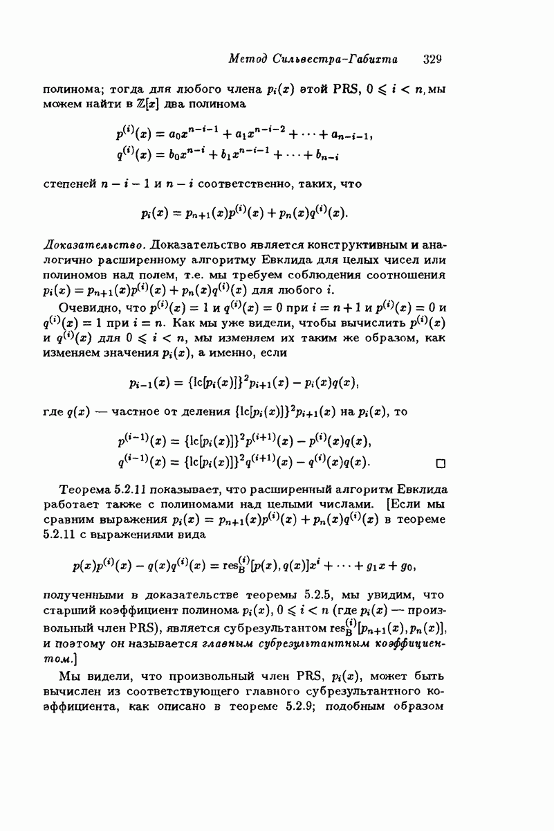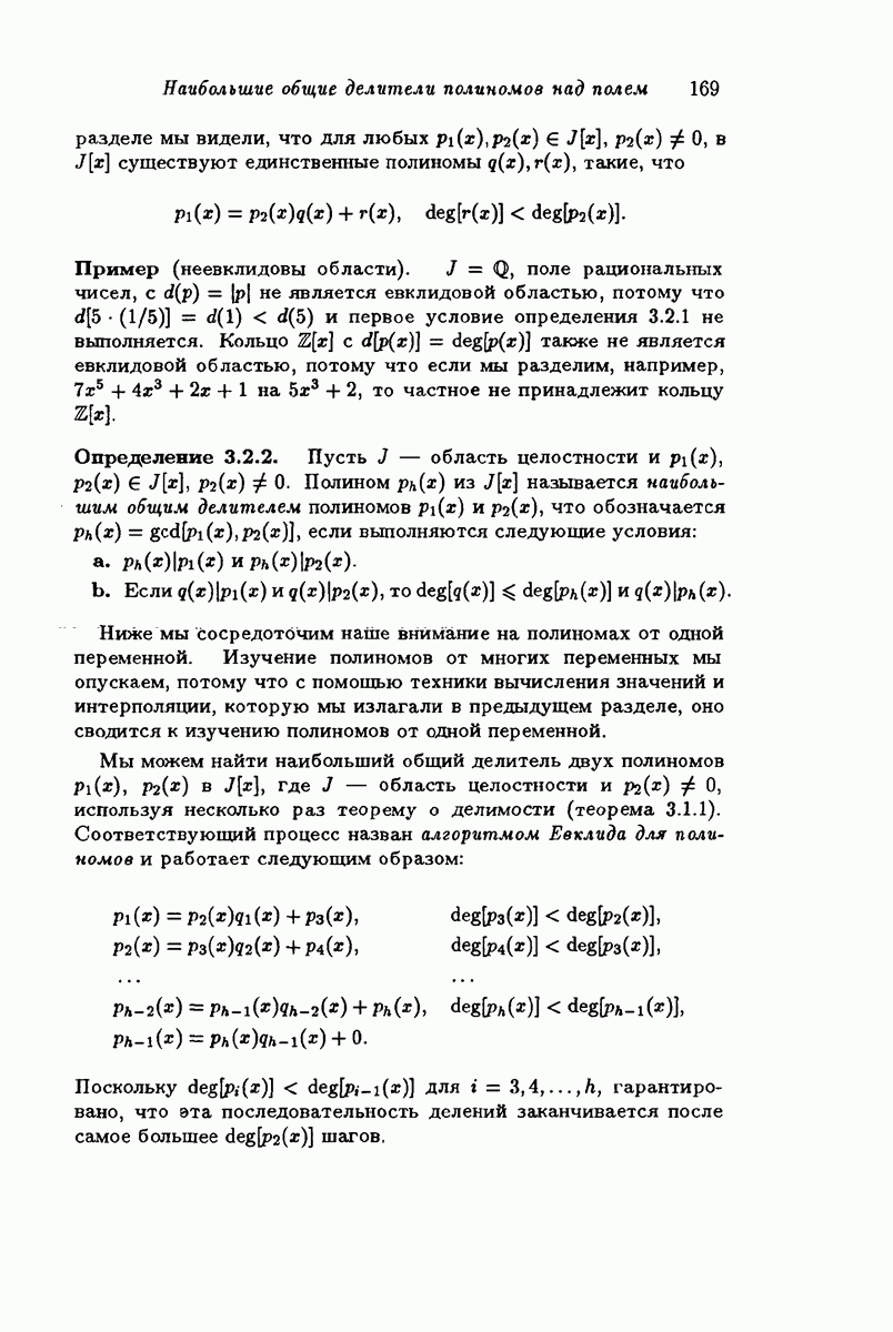 Ниже, основываясь на свойстве евклидовости, мы опишем алгоритм представления наибольшего общего делителя в форме из теоремы 2.2.3.