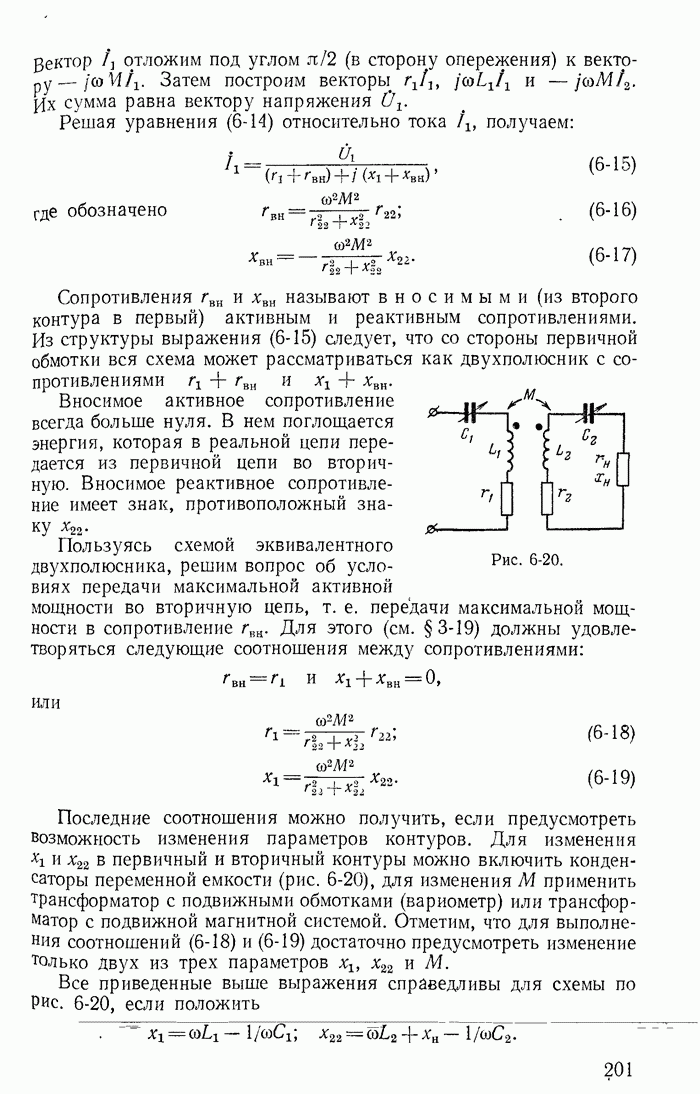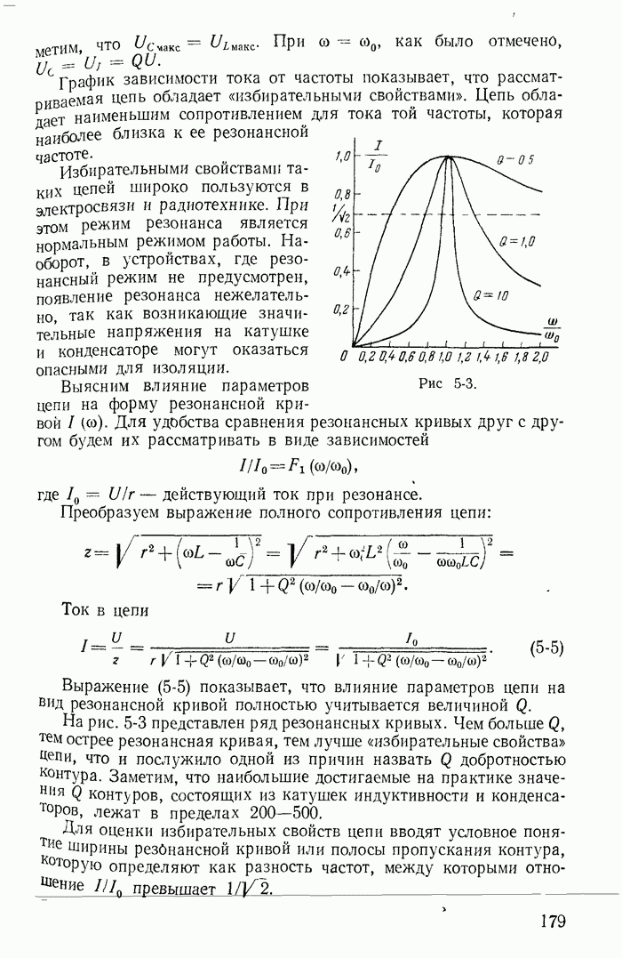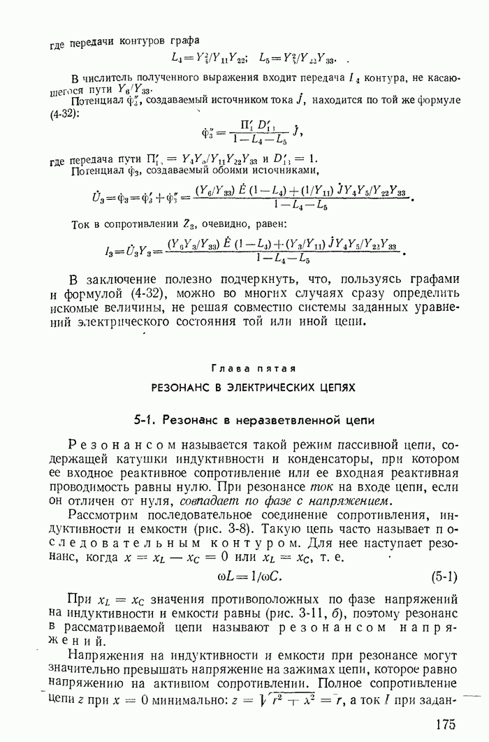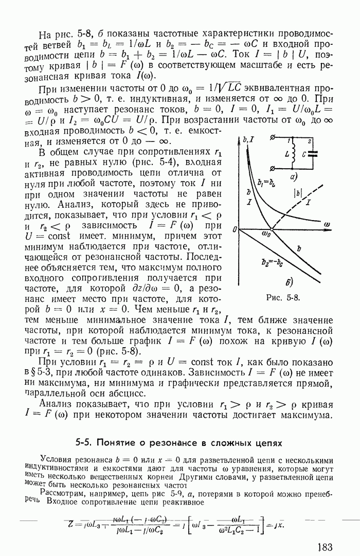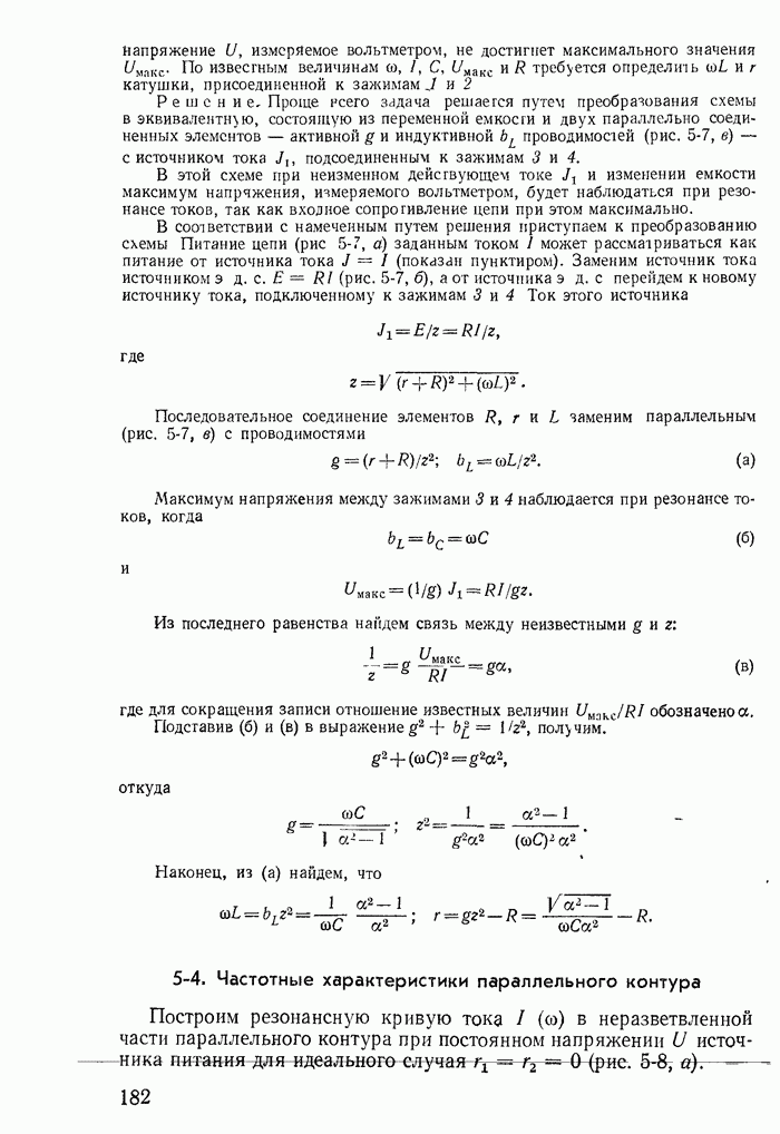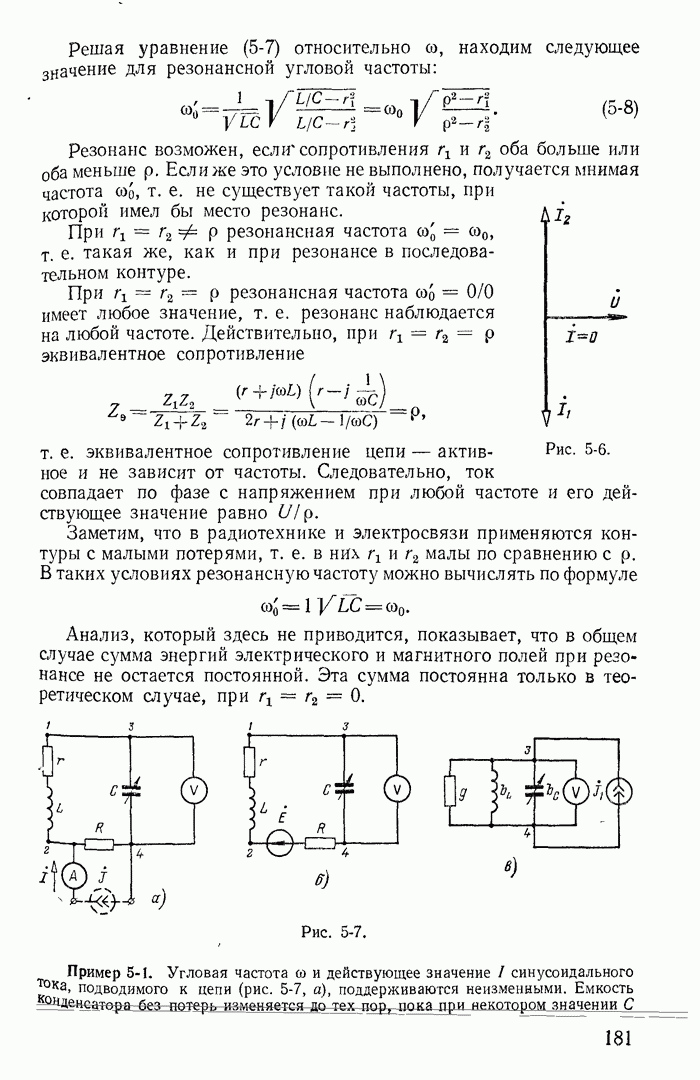 при остальных четырех постоянных не всегда может быть достигнут резонанс. Резонанс отсутствует, если значение изменяемой величины при ее определении из уравнения (5-7) получается мнимым или комплексным. Для L или С могут получаться и по два различных вещественных значения, удовлетворяющих уравнению (5-7). В таких случаях изменением L или С можно достичь двух различных резонансных режимов