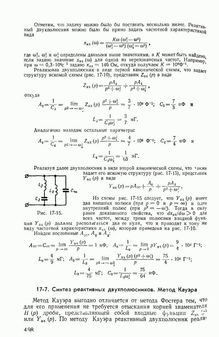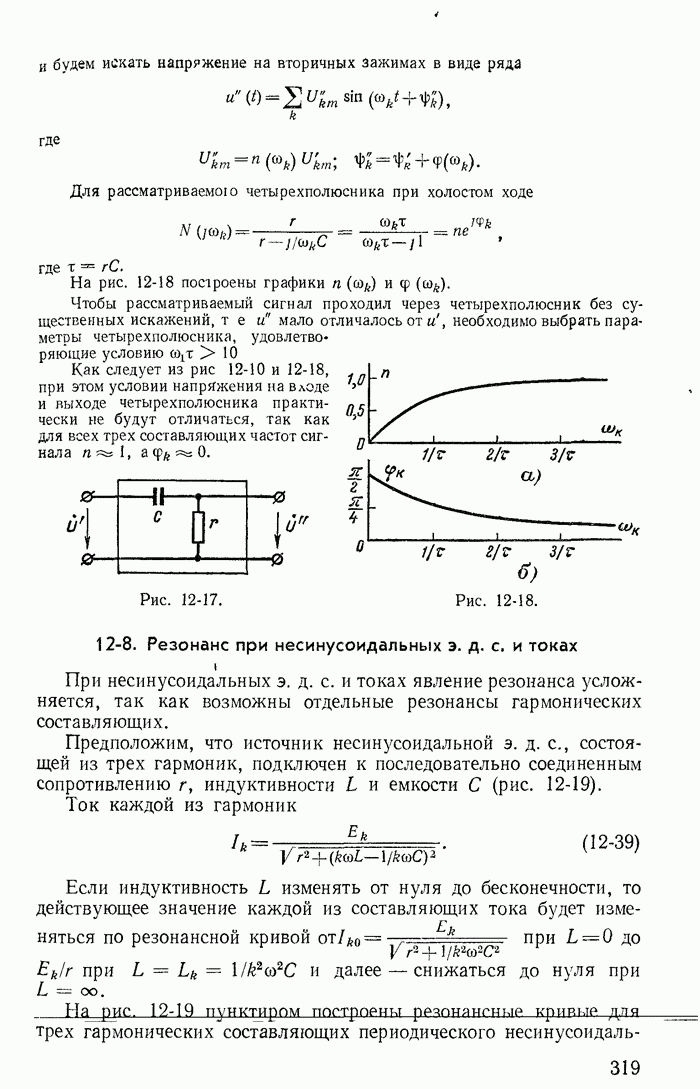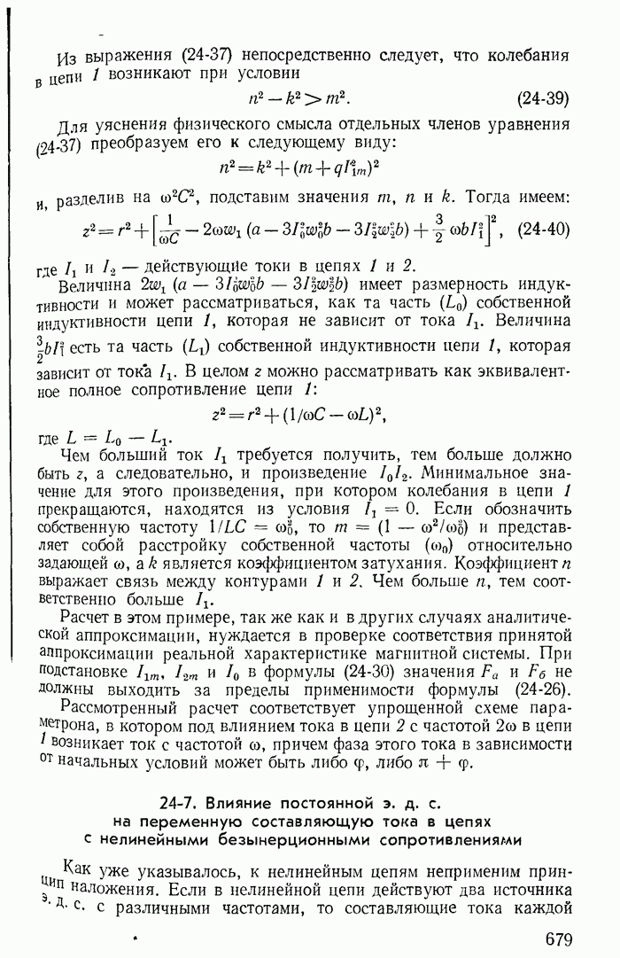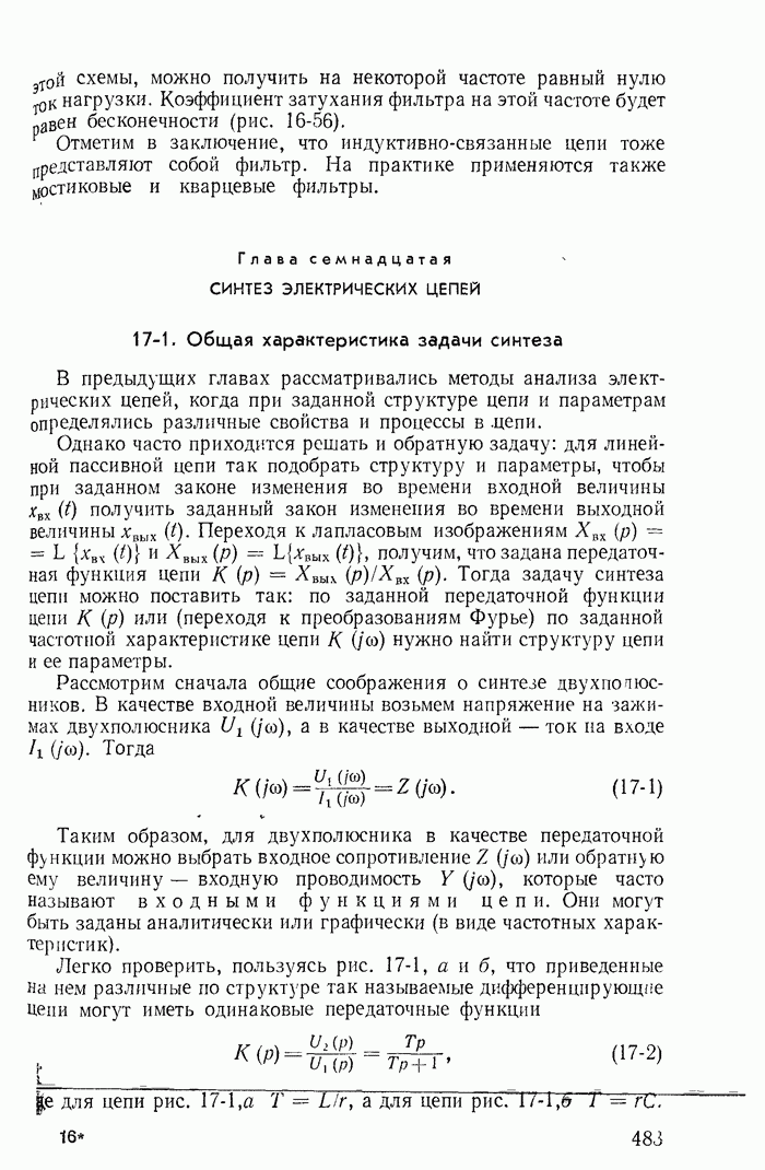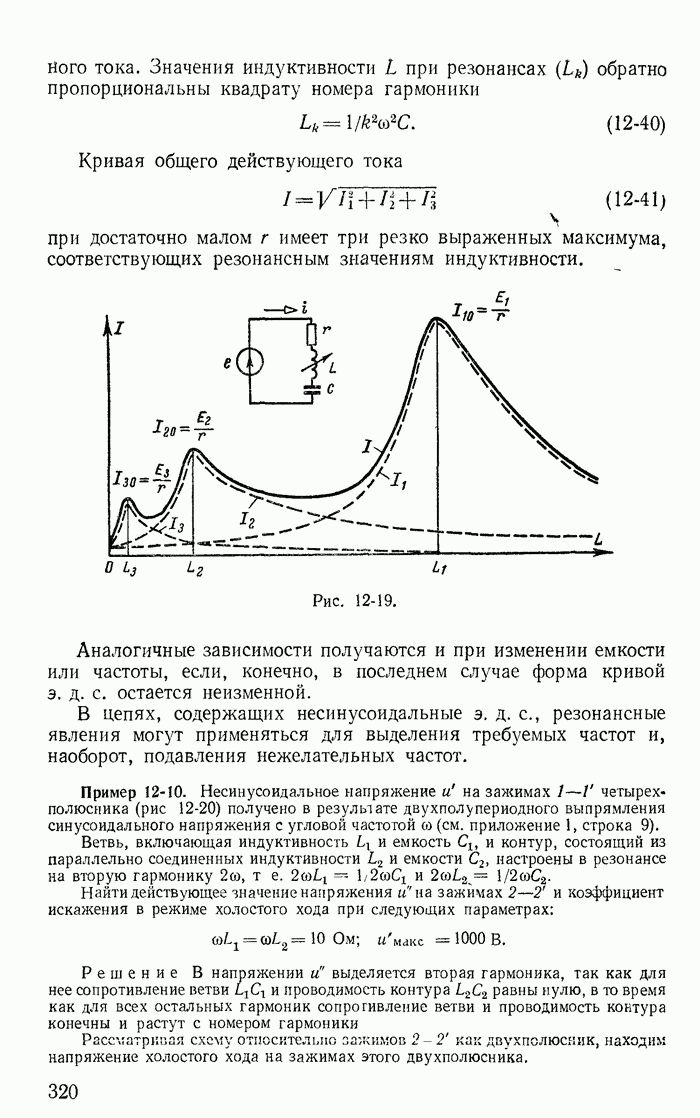 при остальных четырех постоянных не всегда может быть достигнут резонанс. Резонанс отсутствует, если значение изменяемой величины при ее определении из уравнения (5-7) получается мнимым или комплексным. Для L или С могут получаться и по два различных вещественных значения, удовлетворяющих уравнению (5-7). В таких случаях изменением L или С можно достичь двух различных резонансных режимов