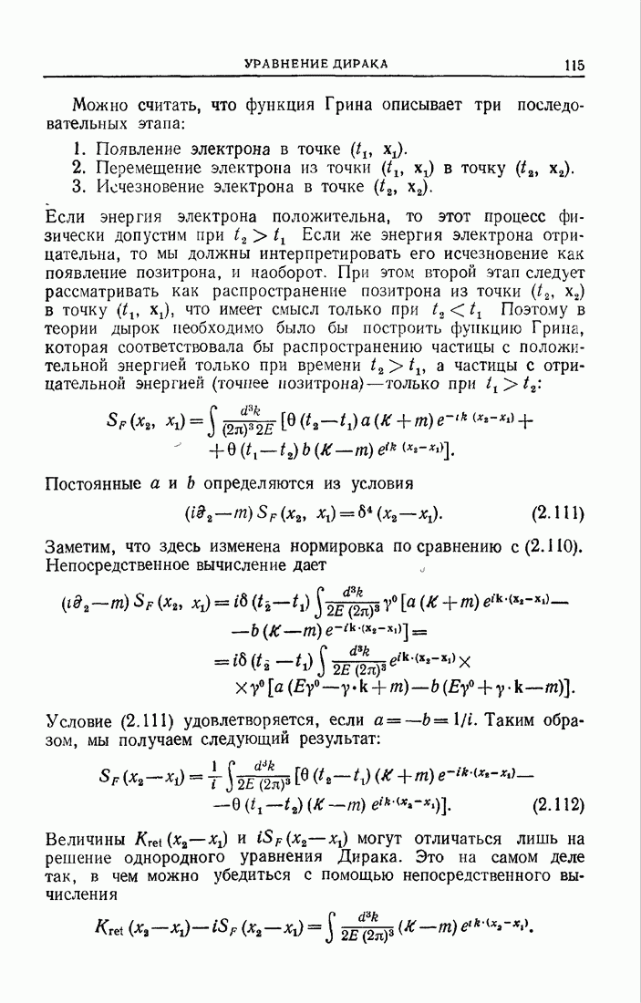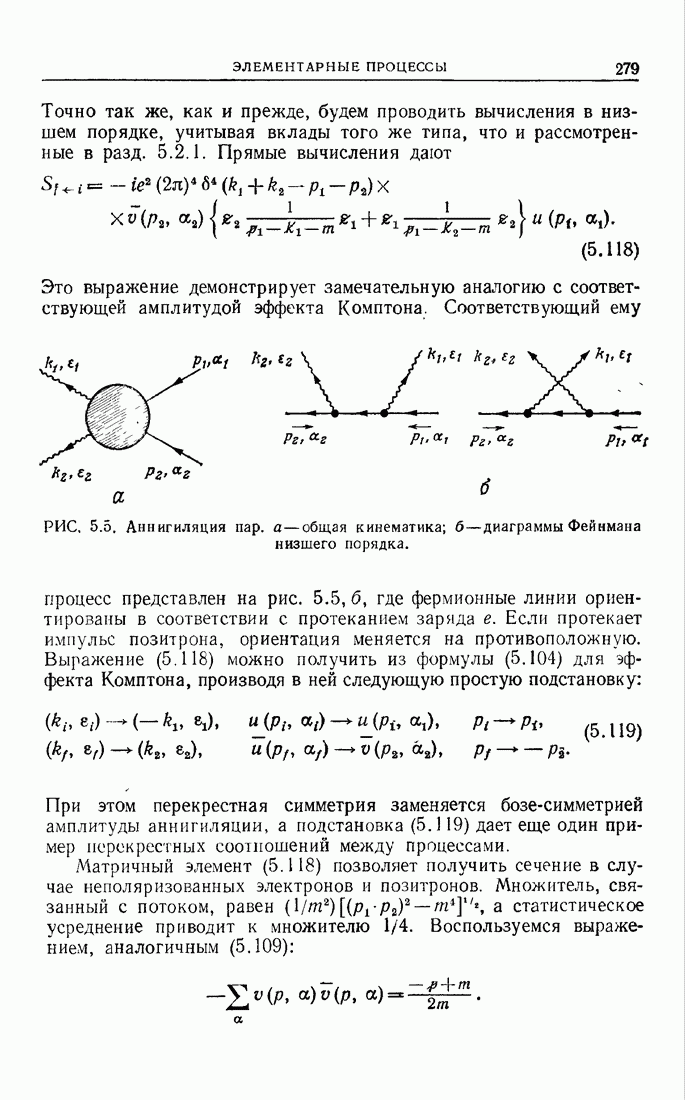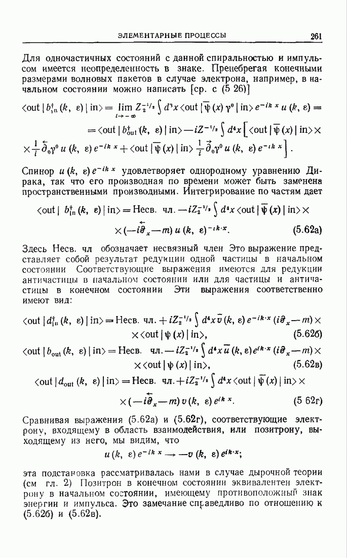 Сравнивая выражения (5.62a) и (5.62г), соответствующие электрону, входящему в область взаимодействия, или позитрону, выходящему из него, мы видим, что
