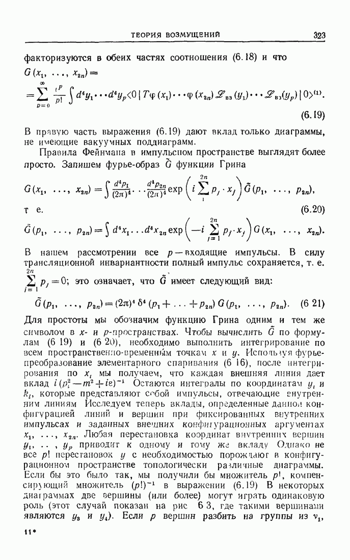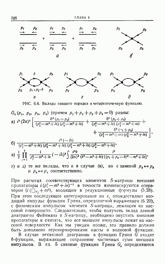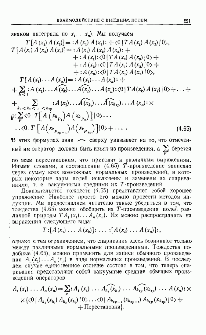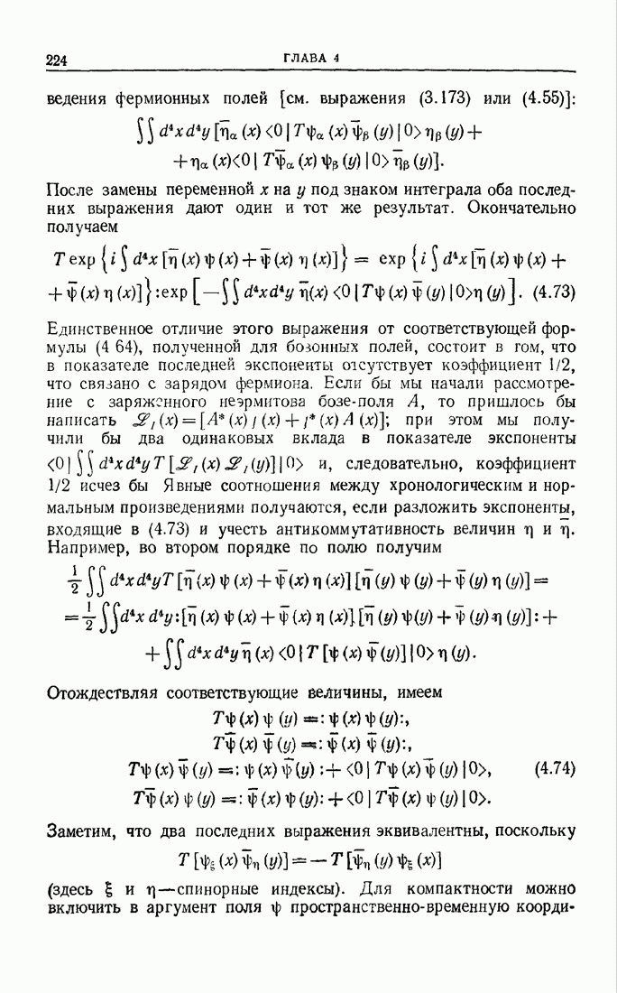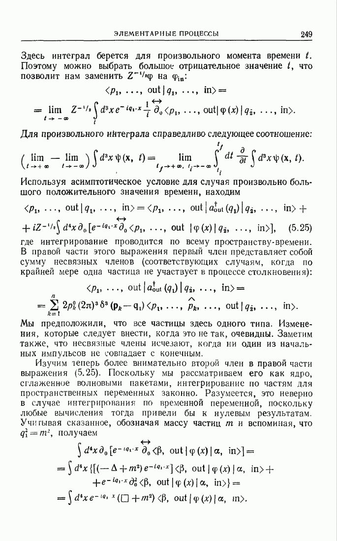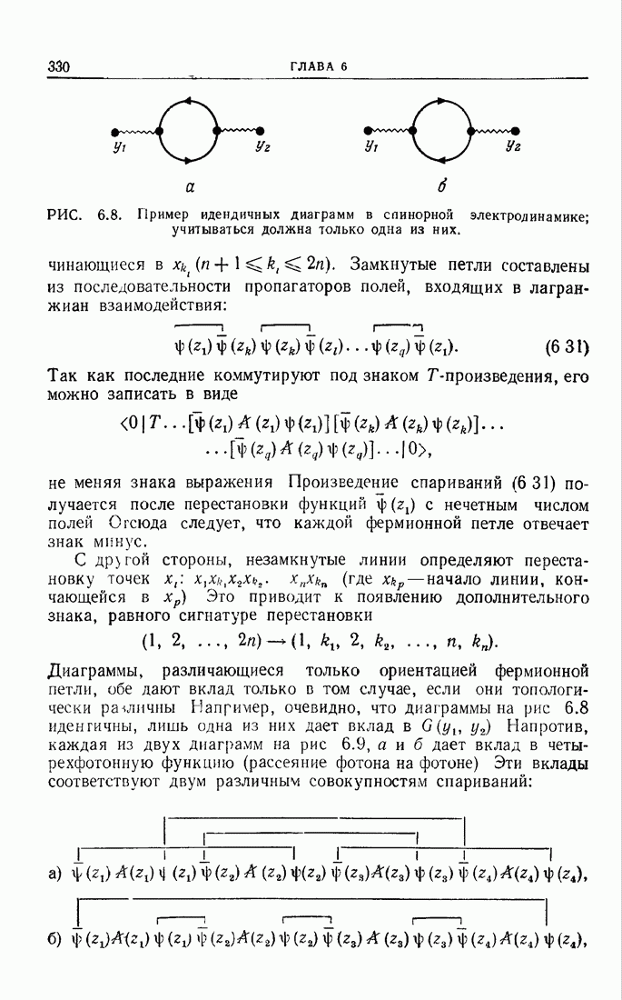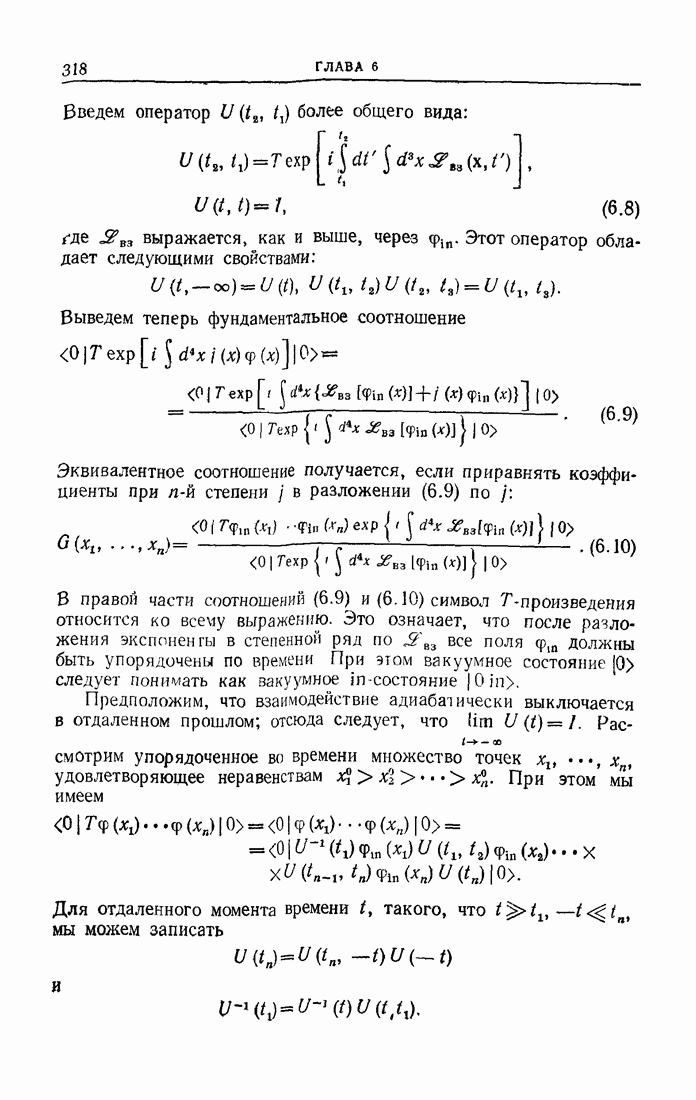 эта подстановка рассматривалась нами в случае дырочной теории (см гл. 2) Позитрон в конечном состоянии эквивалентен электрону в начальном состоянии, имеющему противоположный знак энергии и импульса. Это замечание справедливо по отношению к (5.62б) и (5.62в). Теперь легко продолжить процесс редукции, используя тот же прием, что и прежде, т. е. используя хронологические произведения операторов, но при этом мы должны учесть свойства антикоммутации фермионных полей. С целью упрощения общего выражения не будем обозначать явно зависимость спиноров и операторов от поляризации. Предположим, что частицы с импульсами