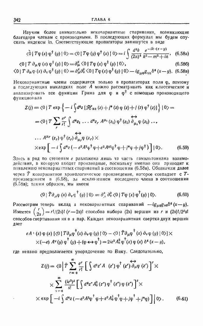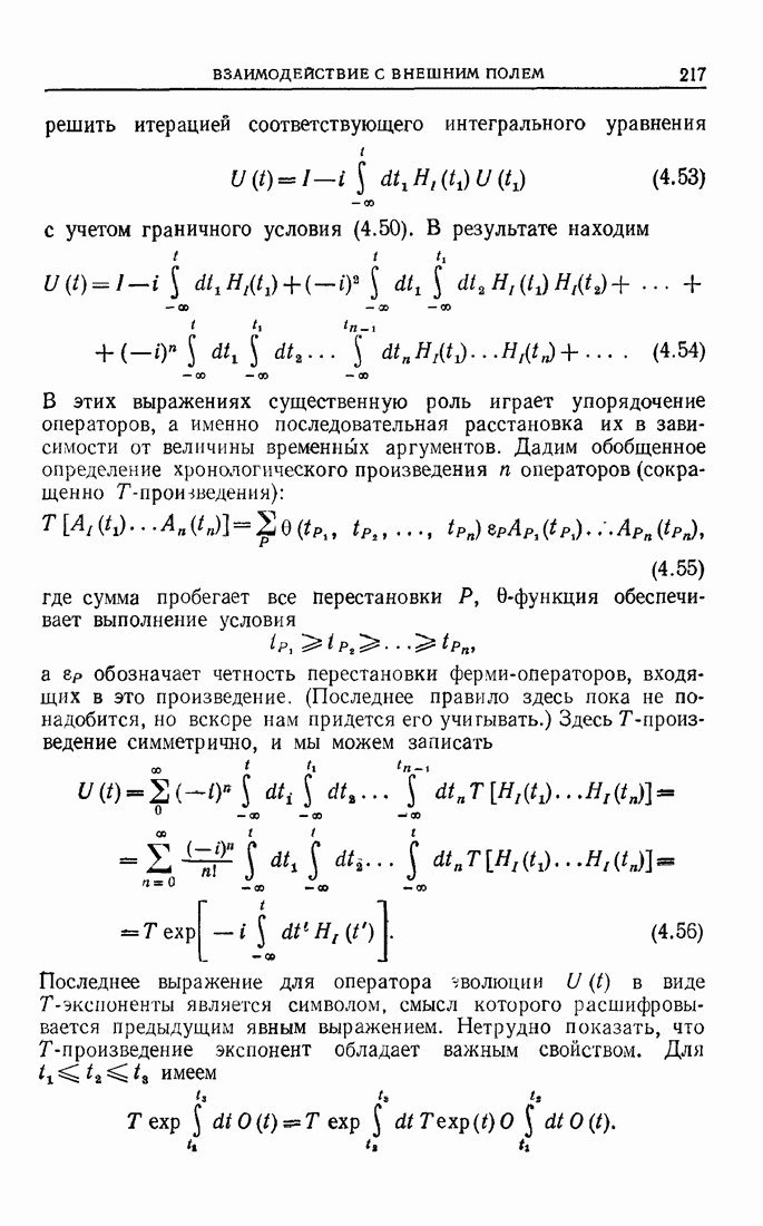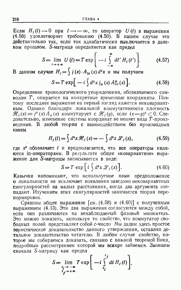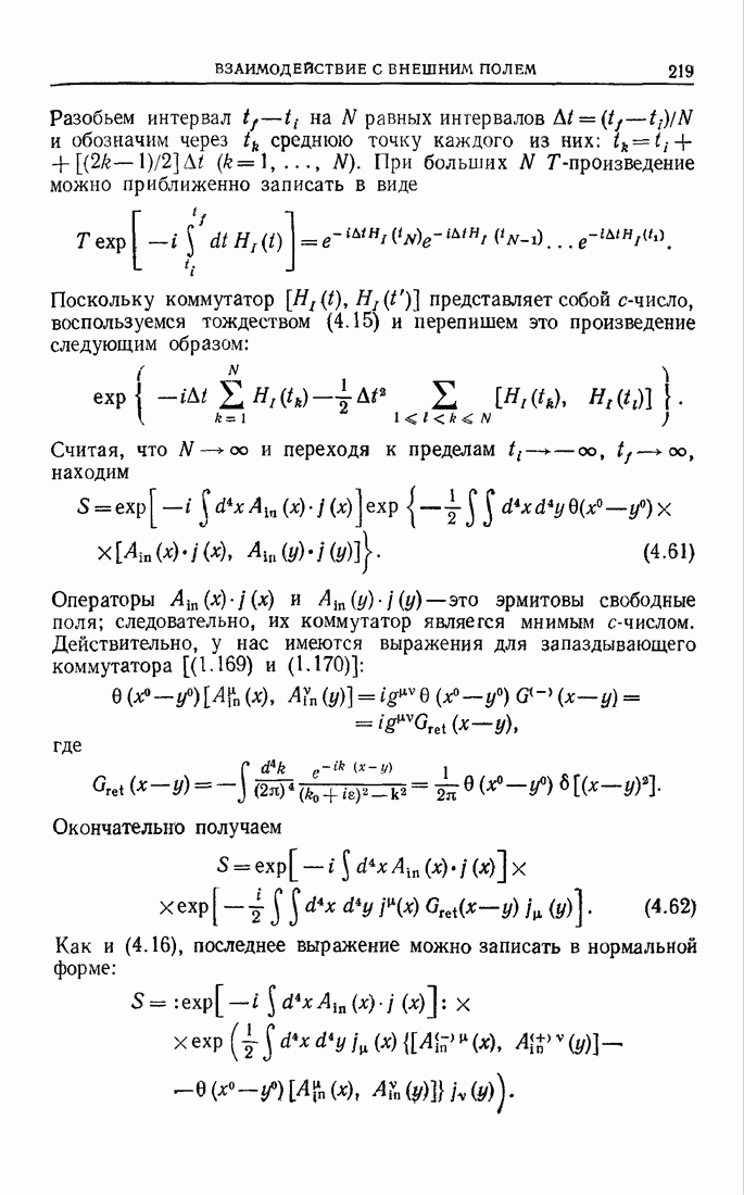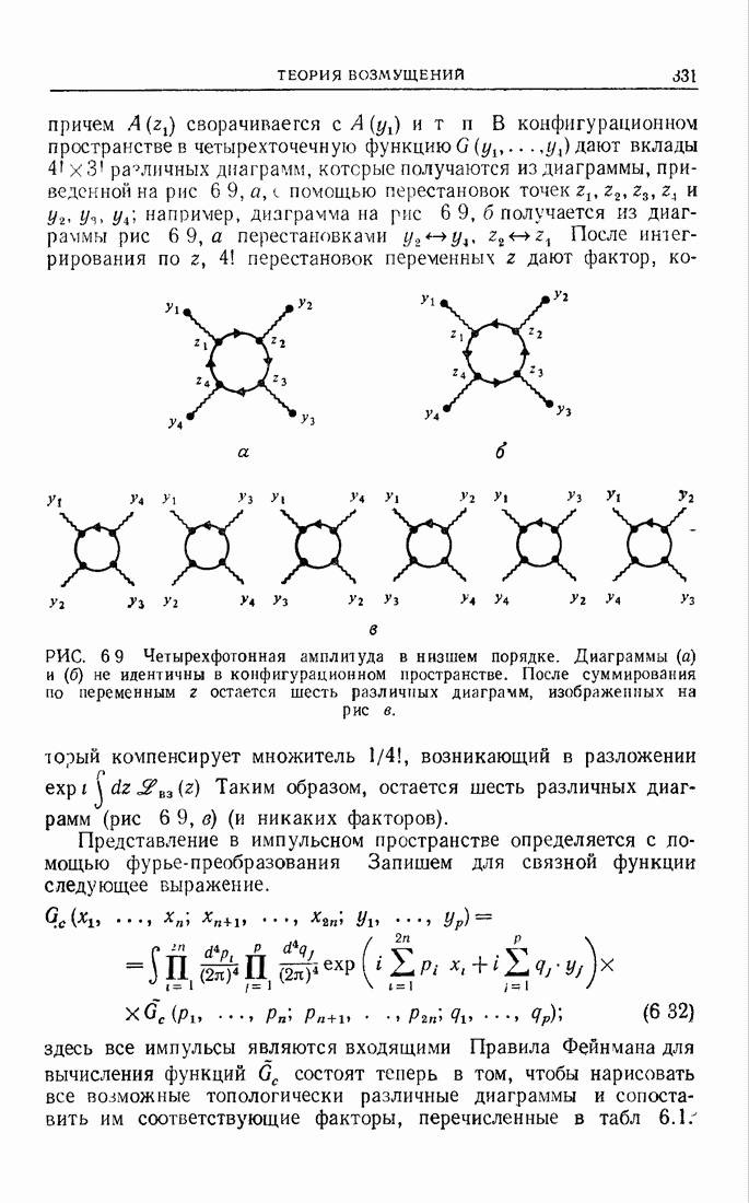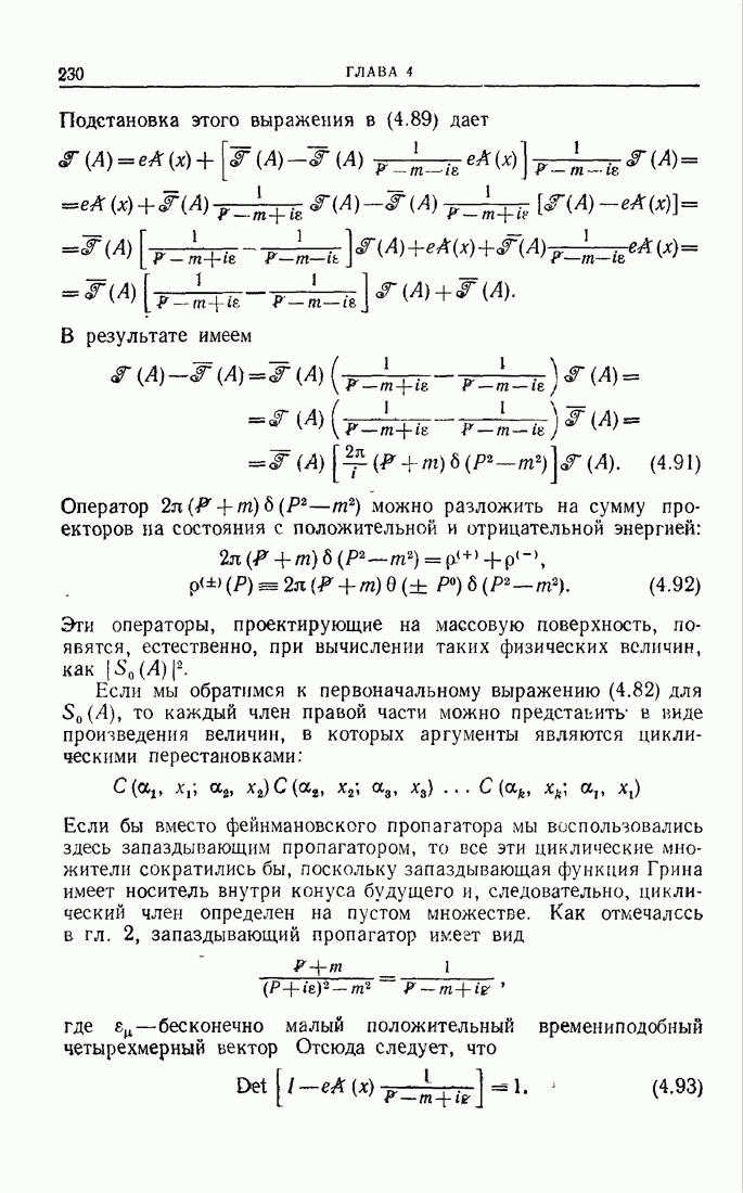 эта подстановка рассматривалась нами в случае дырочной теории (см гл. 2) Позитрон в конечном состоянии эквивалентен электрону в начальном состоянии, имеющему противоположный знак энергии и импульса. Это замечание справедливо по отношению к (5.62б) и (5.62в). Теперь легко продолжить процесс редукции, используя тот же прием, что и прежде, т. е. используя хронологические произведения операторов, но при этом мы должны учесть свойства антикоммутации фермионных полей. С целью упрощения общего выражения не будем обозначать явно зависимость спиноров и операторов от поляризации. Предположим, что частицы с импульсами