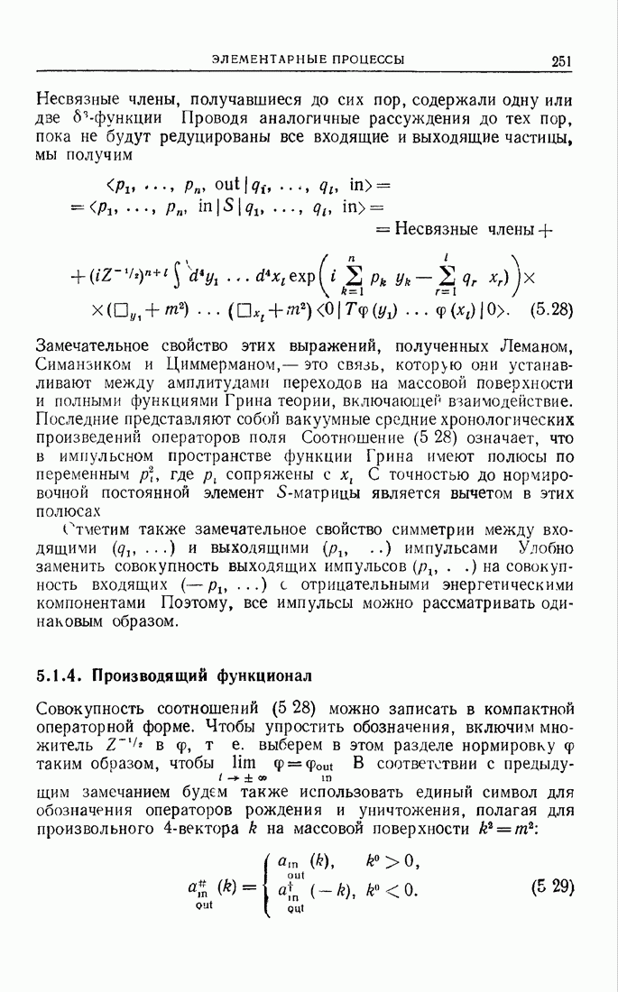 Здесь Несв. чл. обозначает несвязный член Это выражение представляет собой результат редукции одной частицы в начальном состоянии Соответствующие выражения имеются для редукции античастицы в начальном состоянии или для частицы и античастицы в конечном состоянии Эти выражения соответственно имеют вид: