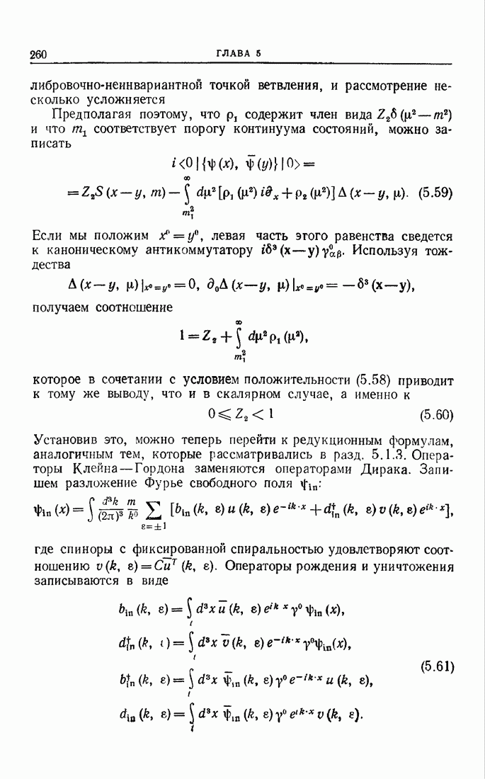 Установив это, можно теперь перейти к редукционным формулам, аналогичным тем, которые рассматривались в разд. 5.1.3. Операторы Клейна—Гордона заменяются операторами Дирака. Запишем разложение Фурье свободного поля