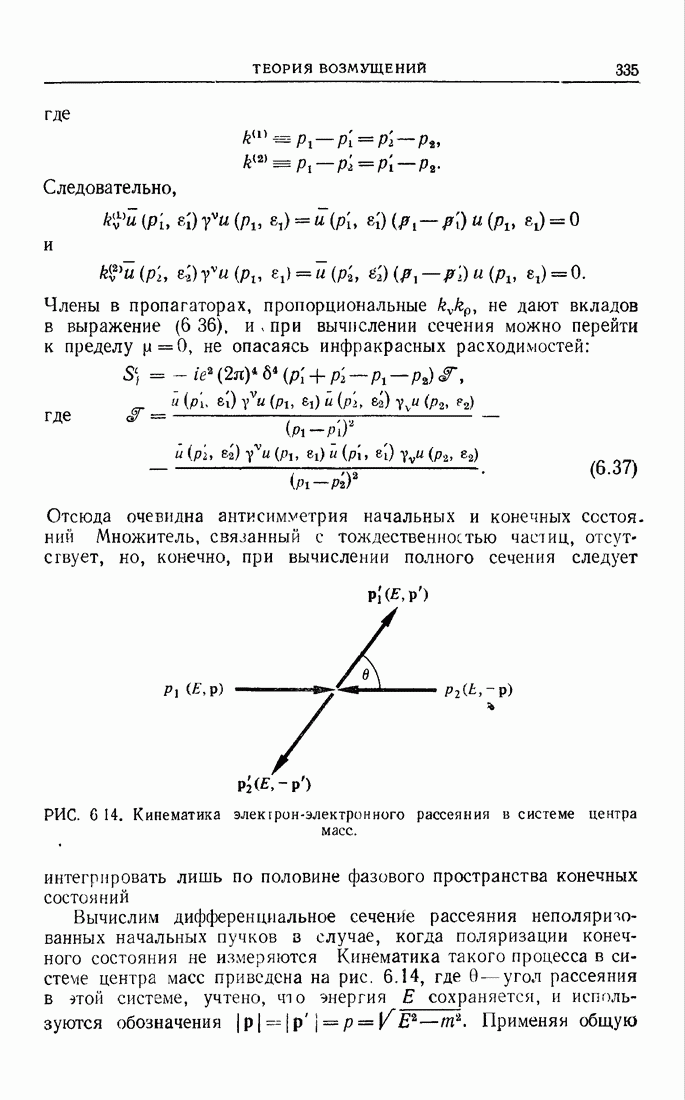 Для одночастичных состояний с данной спиральностью и импульсом имеется неопределенность в знаке. Пренебрегая конечными размерами волновых пакетов в случае электрона, например, в начальном состоянии можно написать [ср. с (5 26)]