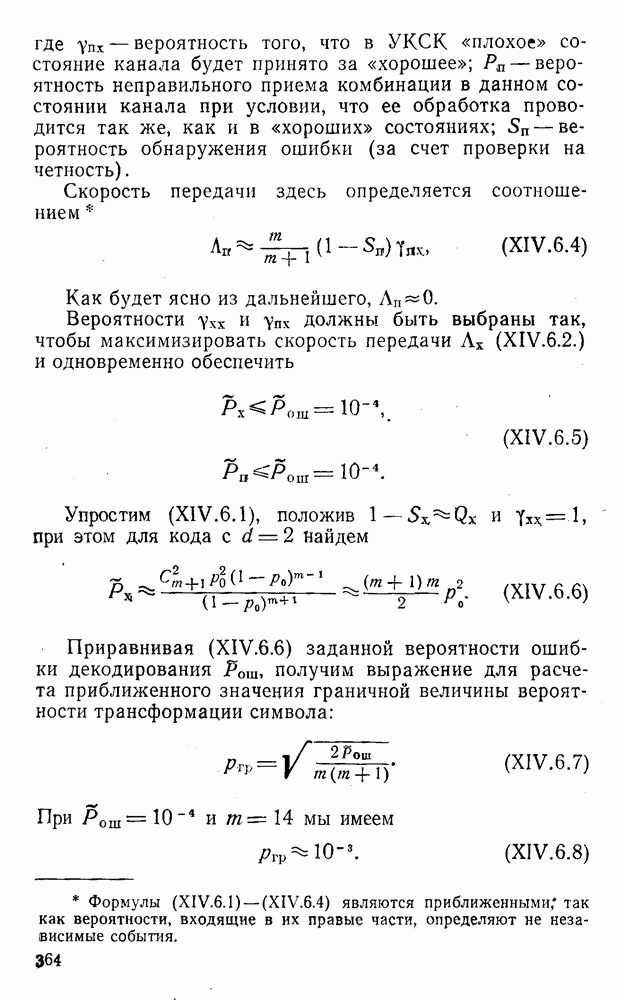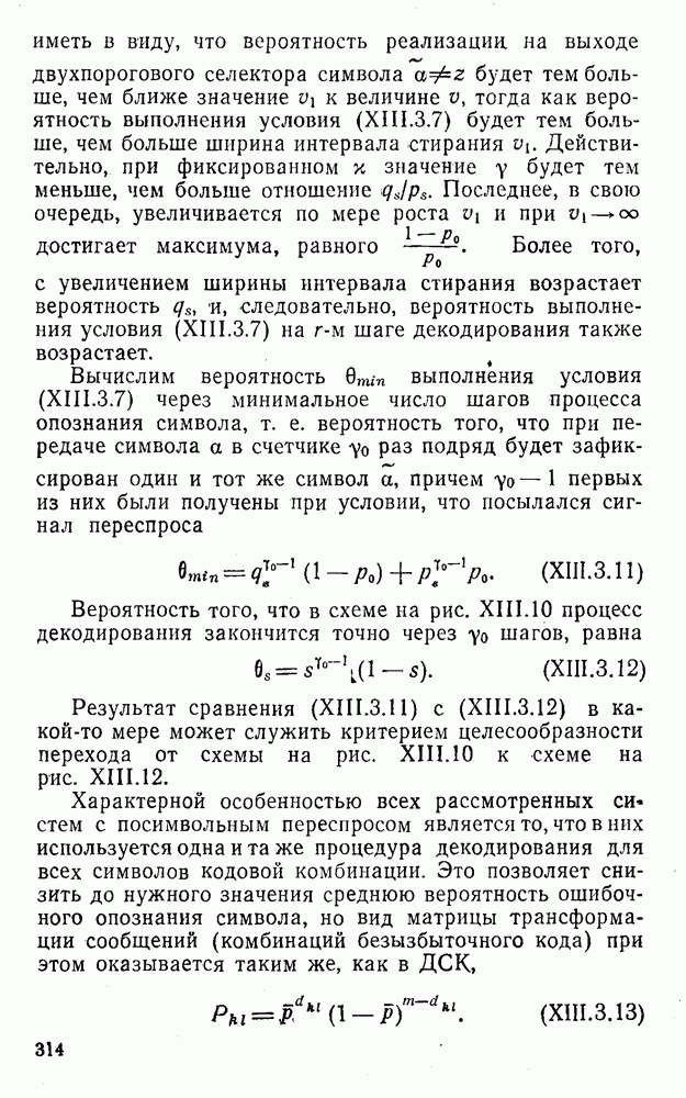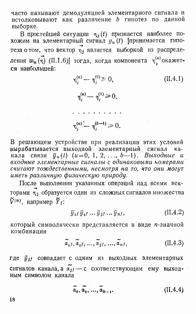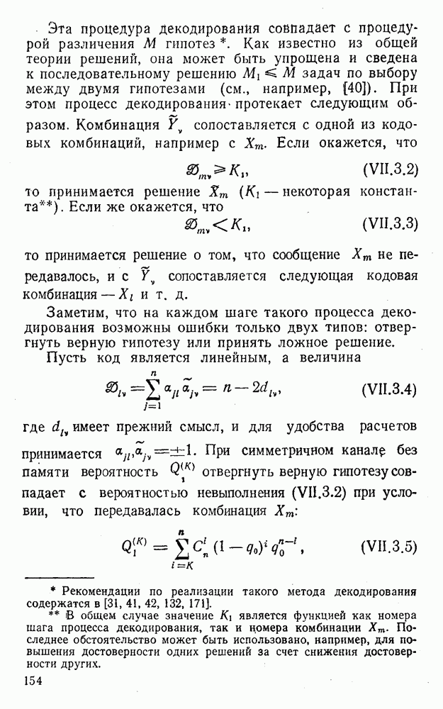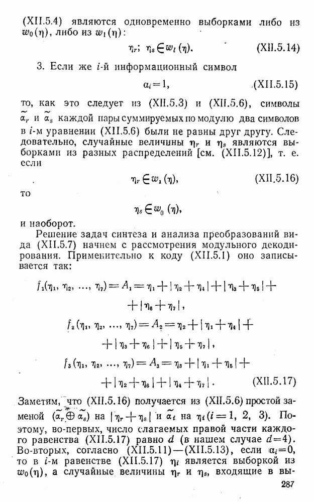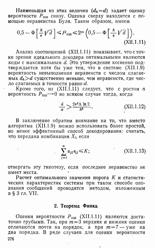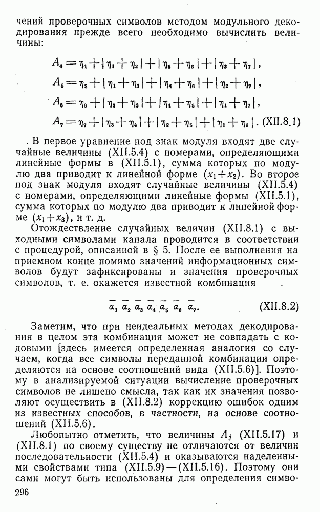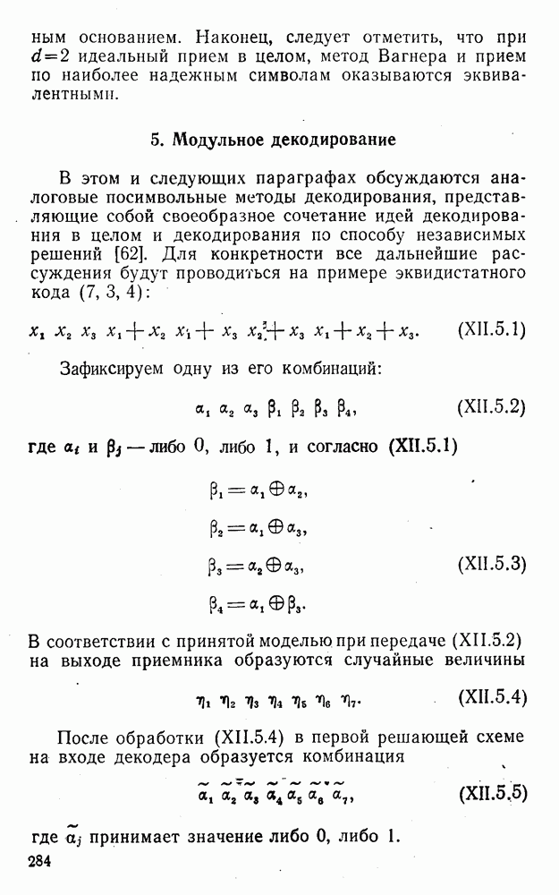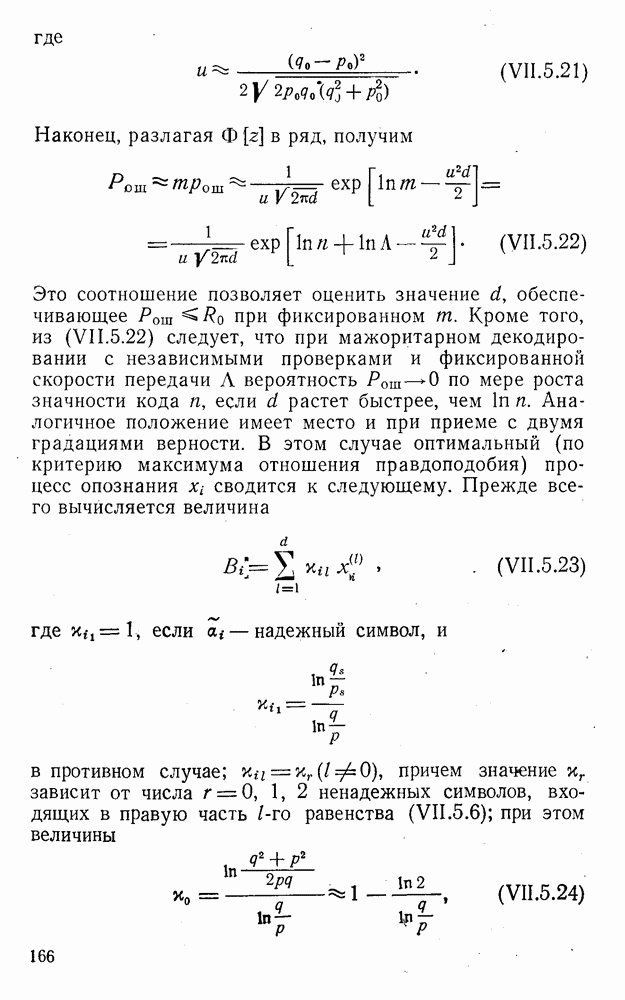 вместо (XII.6.3) используется операция (XII.7.5). Эти обстоятельства дают основания полагать, что полученные в § 6 гл. XII оценки вероятности неправильного опознания символа с успехом могут быть использованы и при оптимальном опознании информационных символов (во всяком случае для