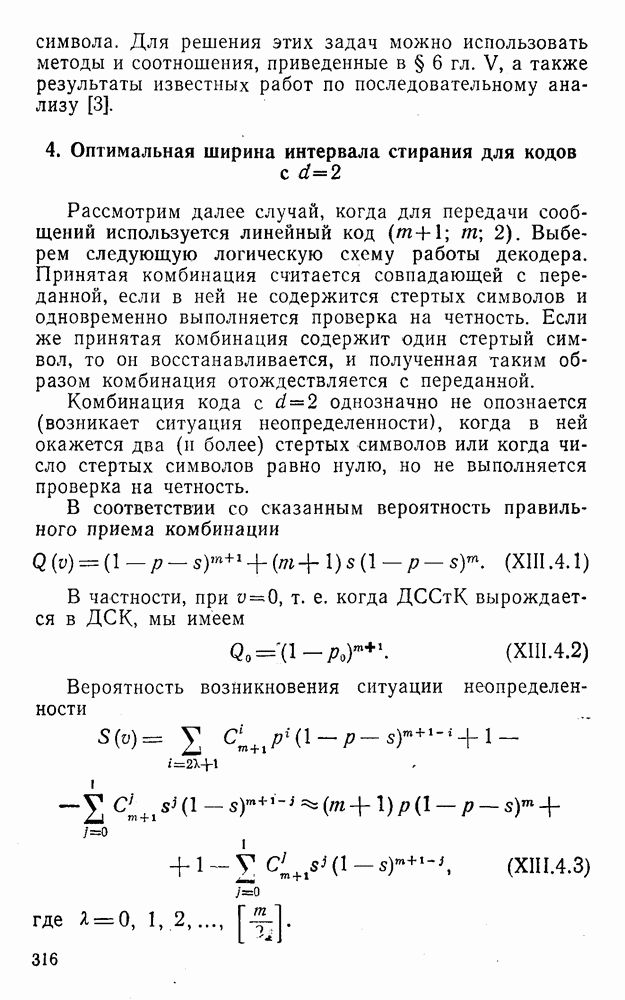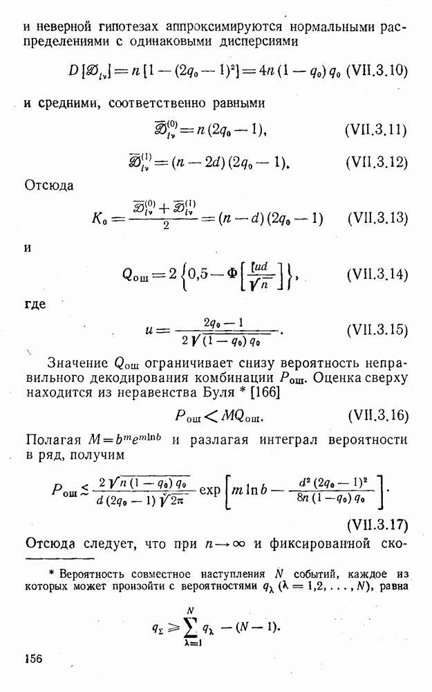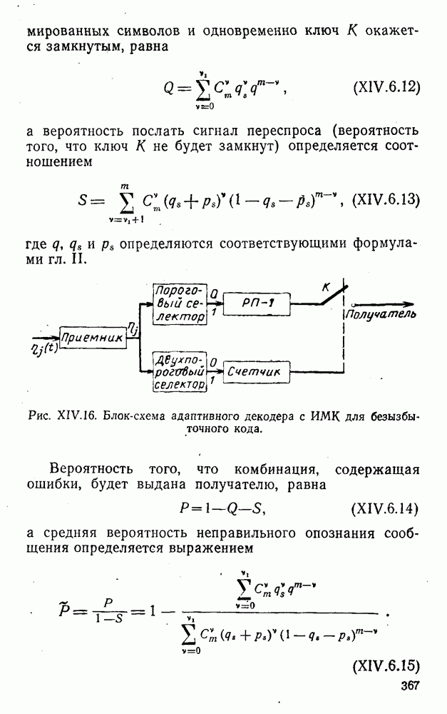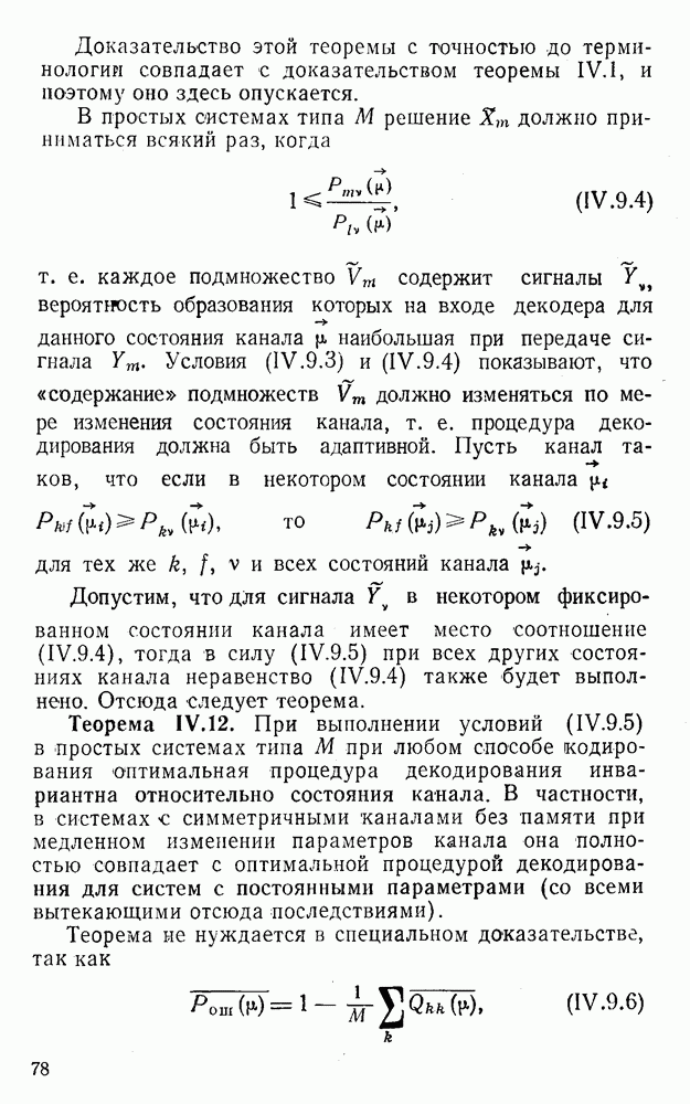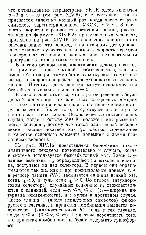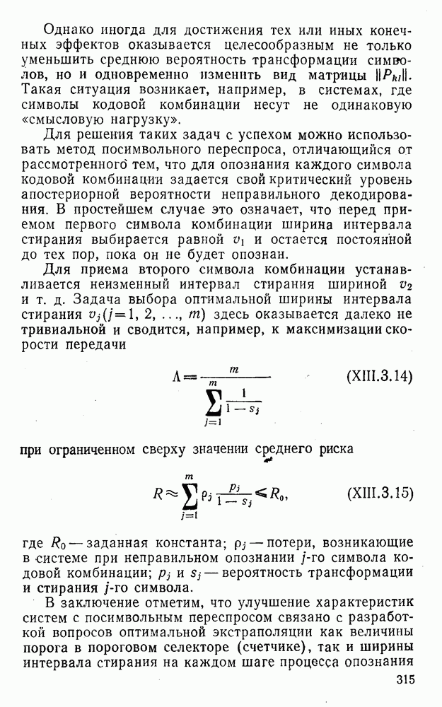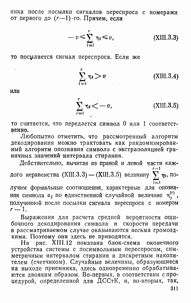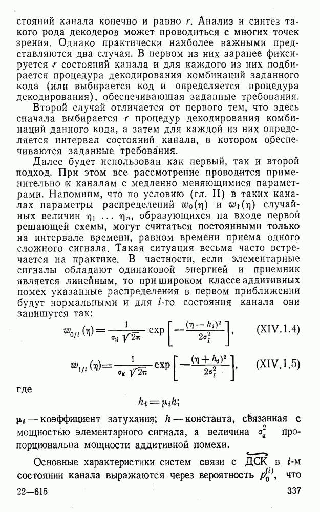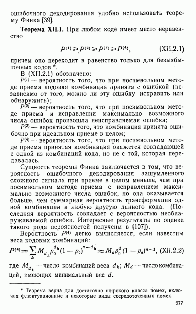 вместо (XII.6.3) используется операция (XII.7.5). Эти обстоятельства дают основания полагать, что полученные в § 6 гл. XII оценки вероятности неправильного опознания символа с успехом могут быть использованы и при оптимальном опознании информационных символов (во всяком случае для