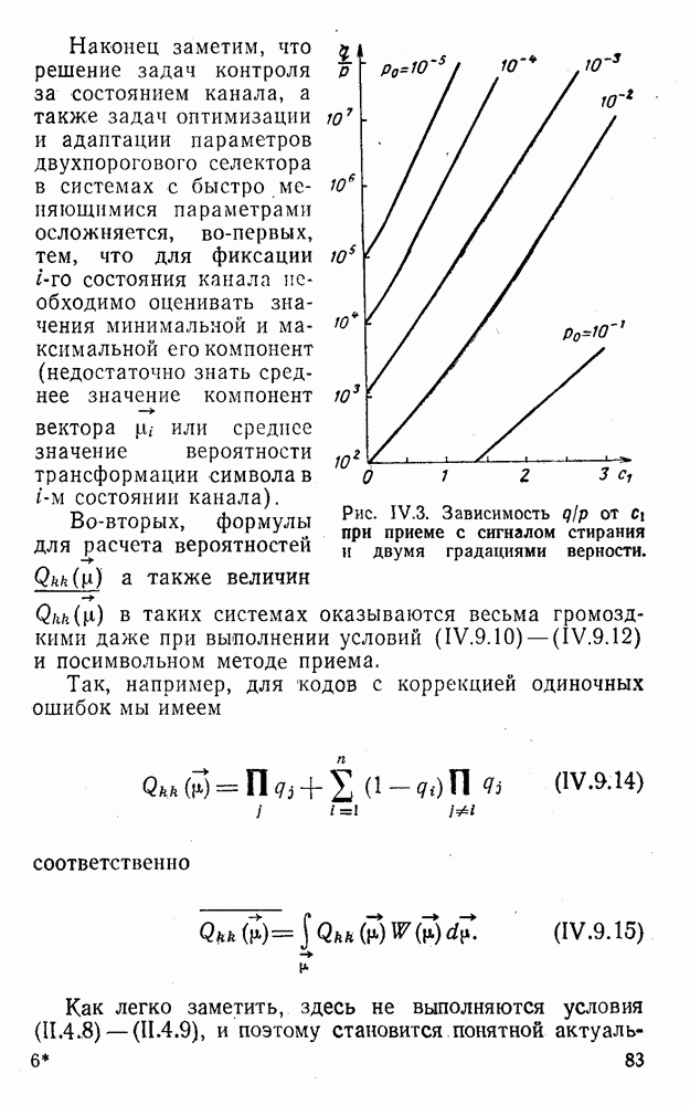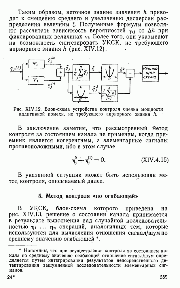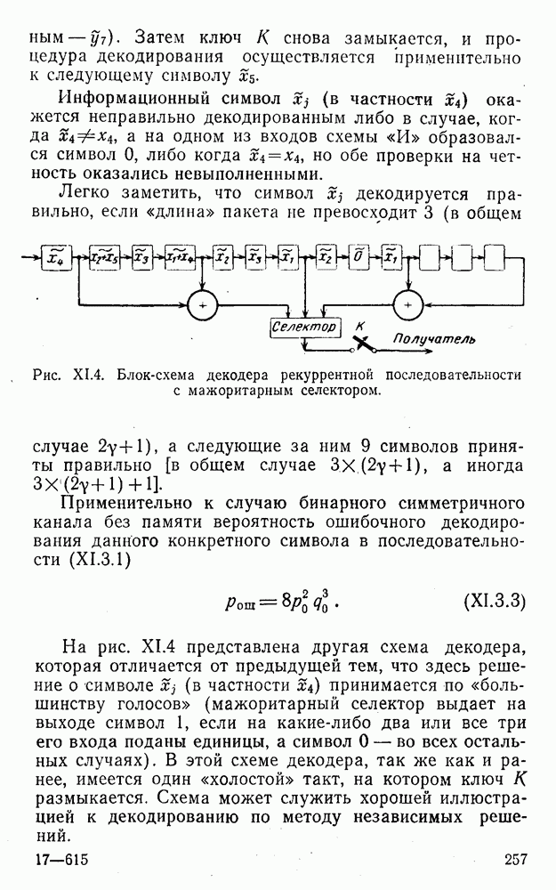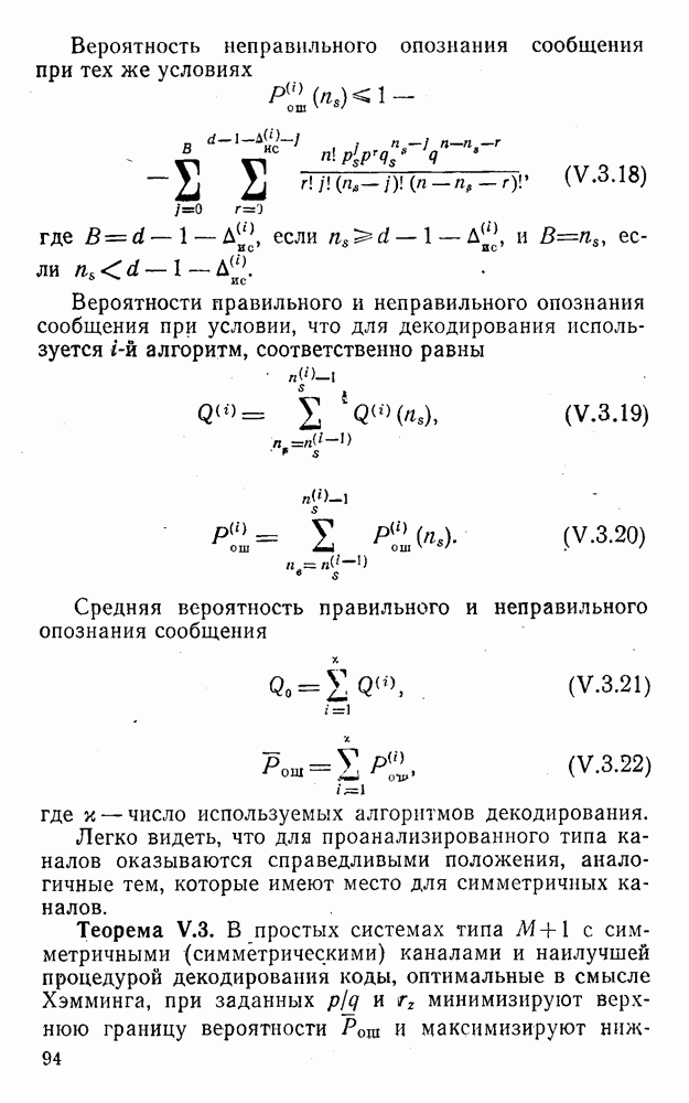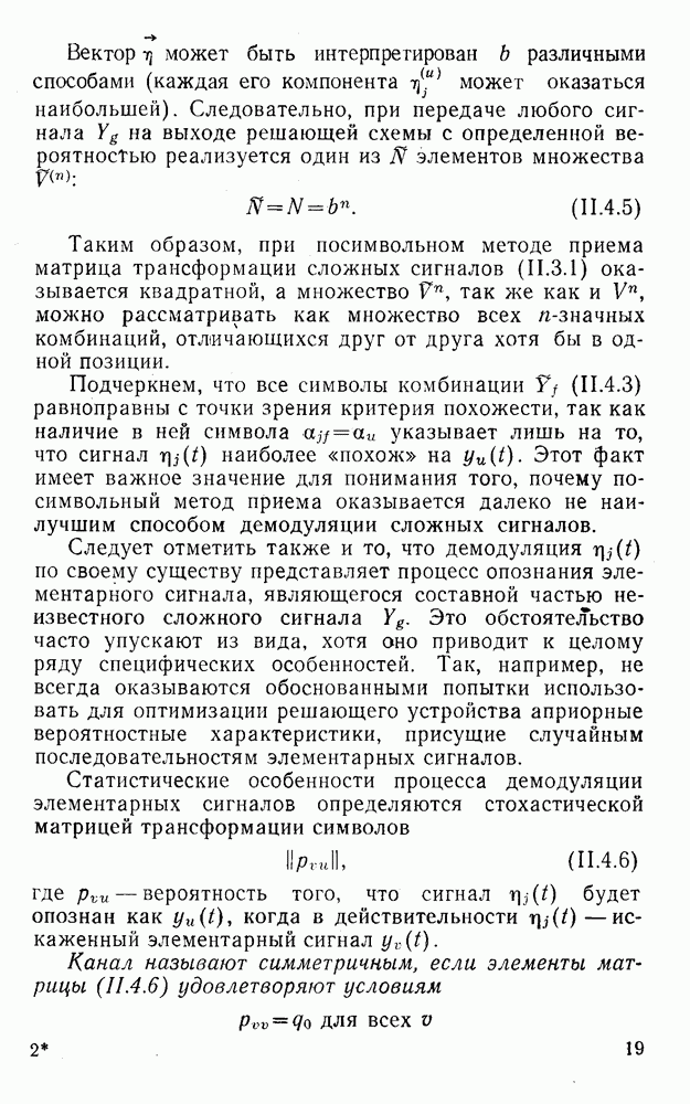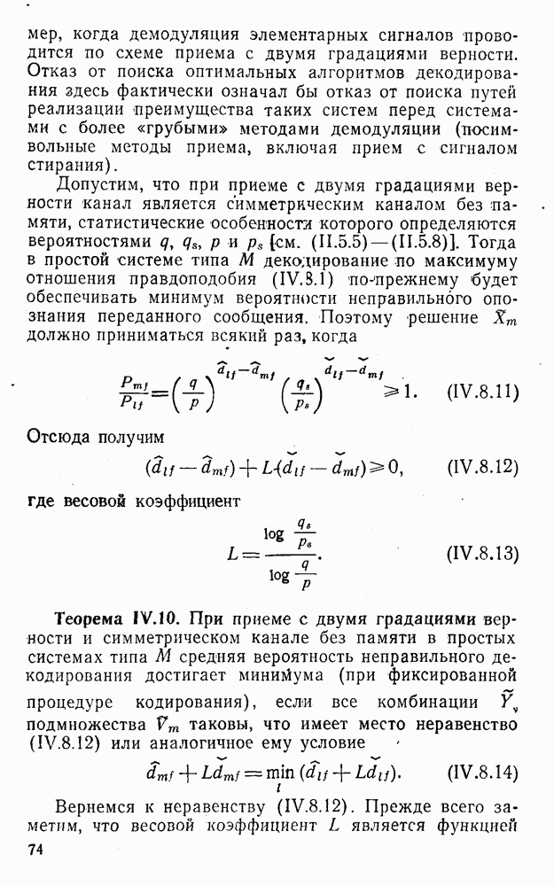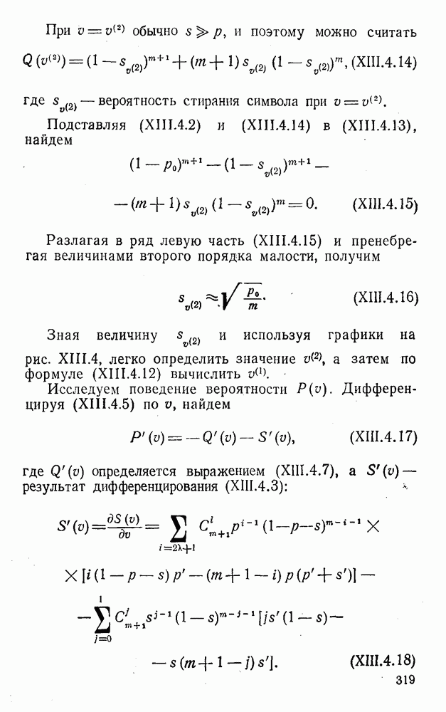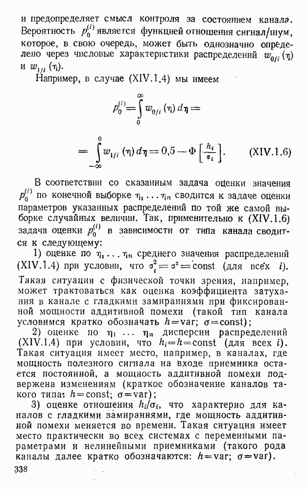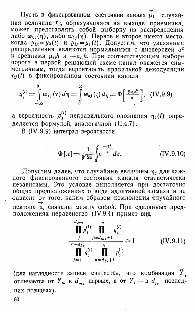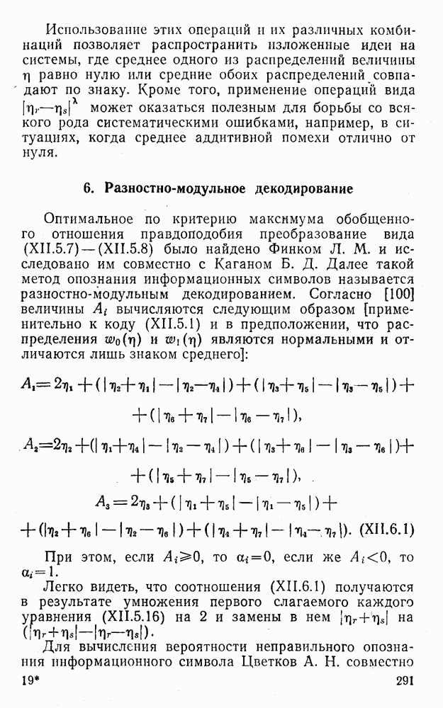 вместо (XII.6.3) используется операция (XII.7.5). Эти обстоятельства дают основания полагать, что полученные в § 6 гл. XII оценки вероятности неправильного опознания символа с успехом могут быть использованы и при оптимальном опознании информационных символов (во всяком случае для
