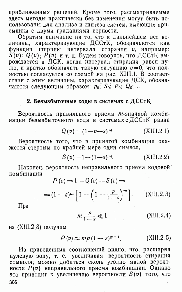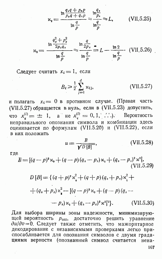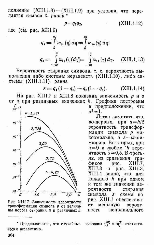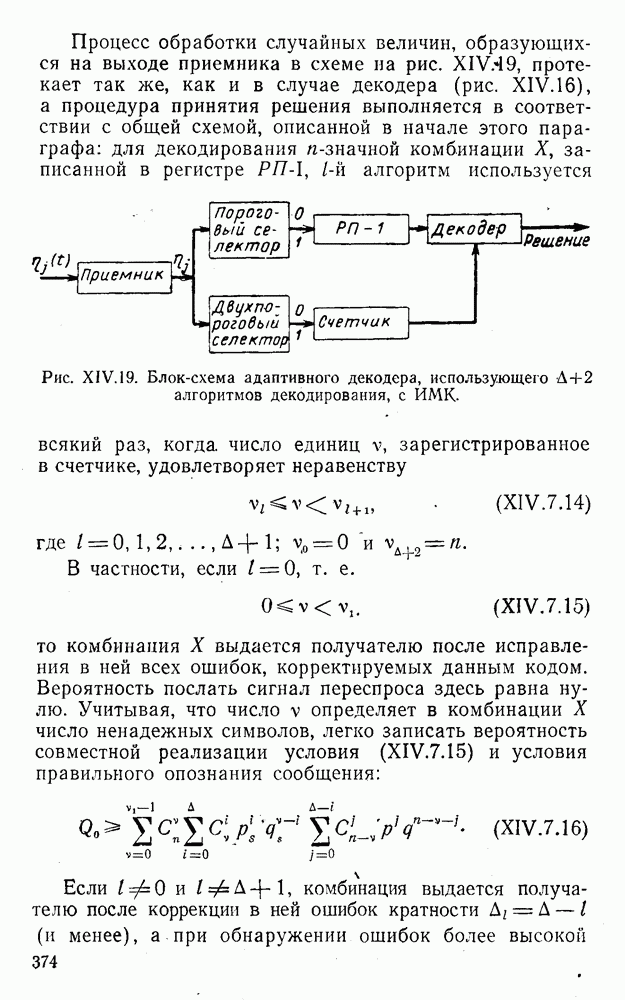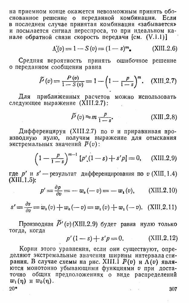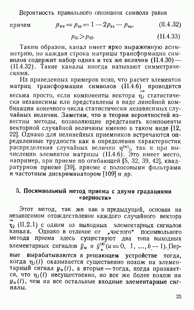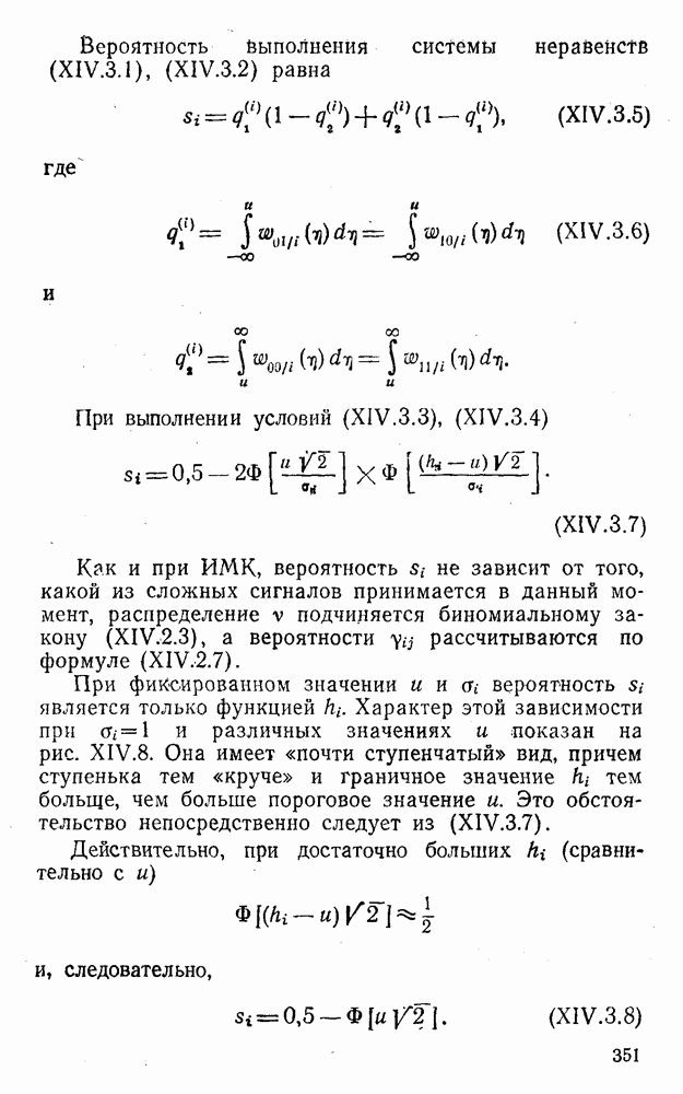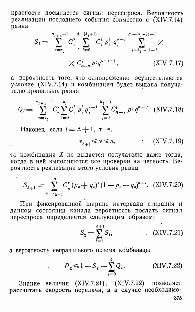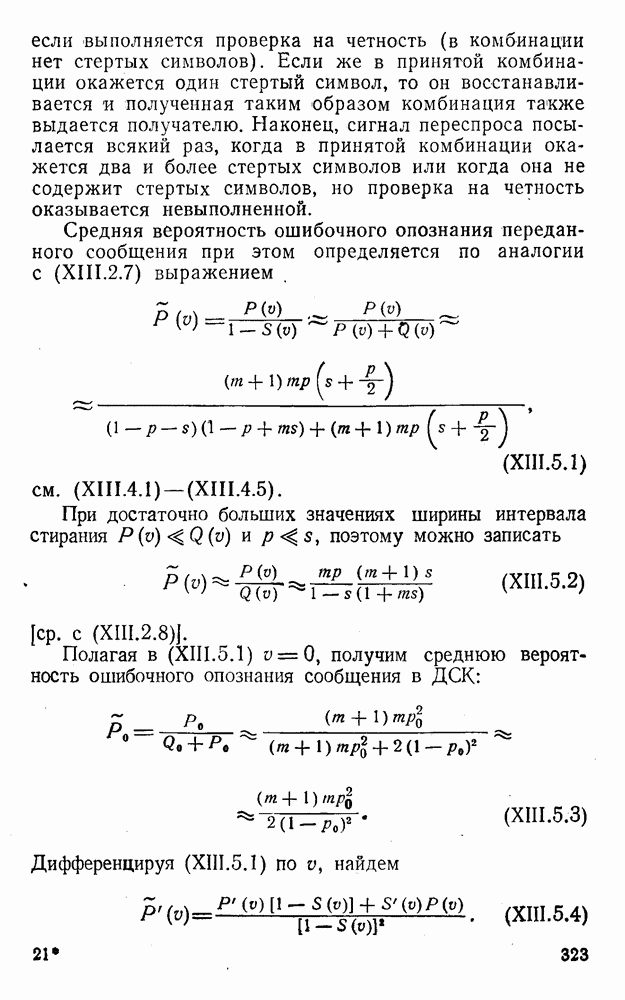 вместо (XII.6.3) используется операция (XII.7.5). Эти обстоятельства дают основания полагать, что полученные в § 6 гл. XII оценки вероятности неправильного опознания символа с успехом могут быть использованы и при оптимальном опознании информационных символов (во всяком случае для