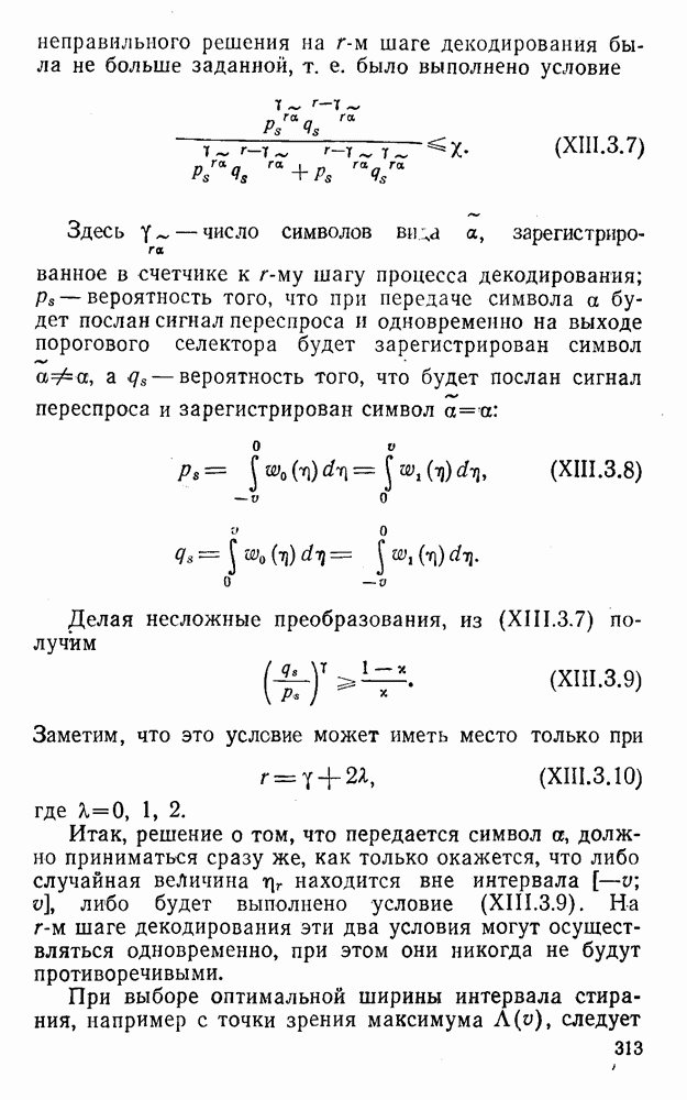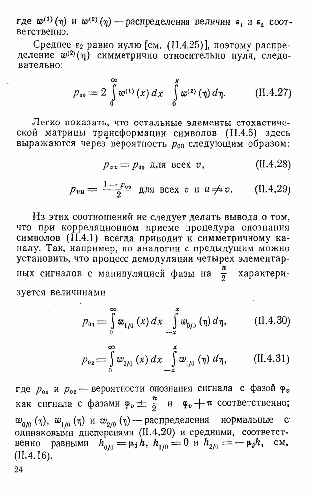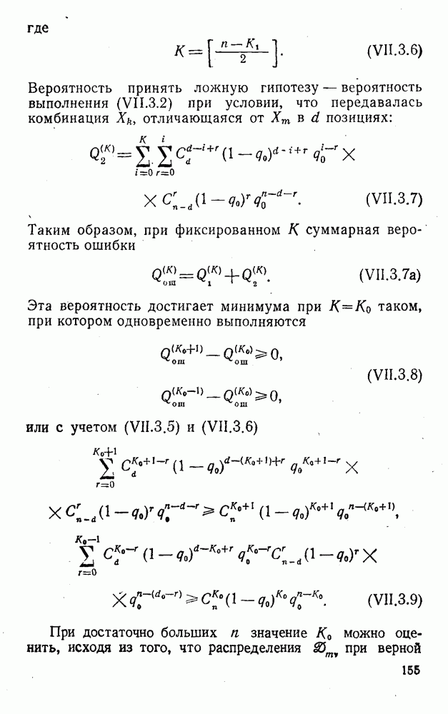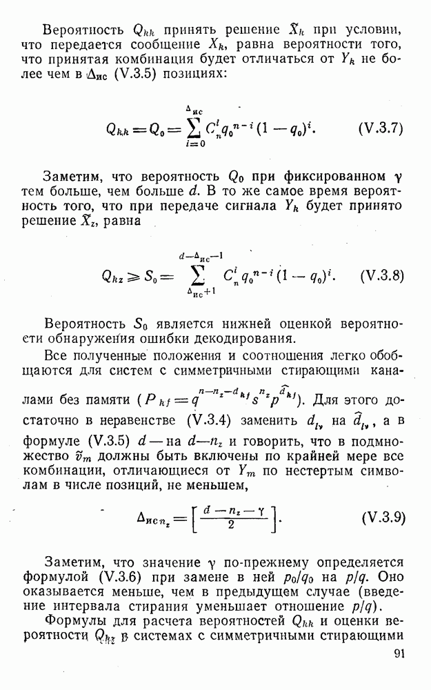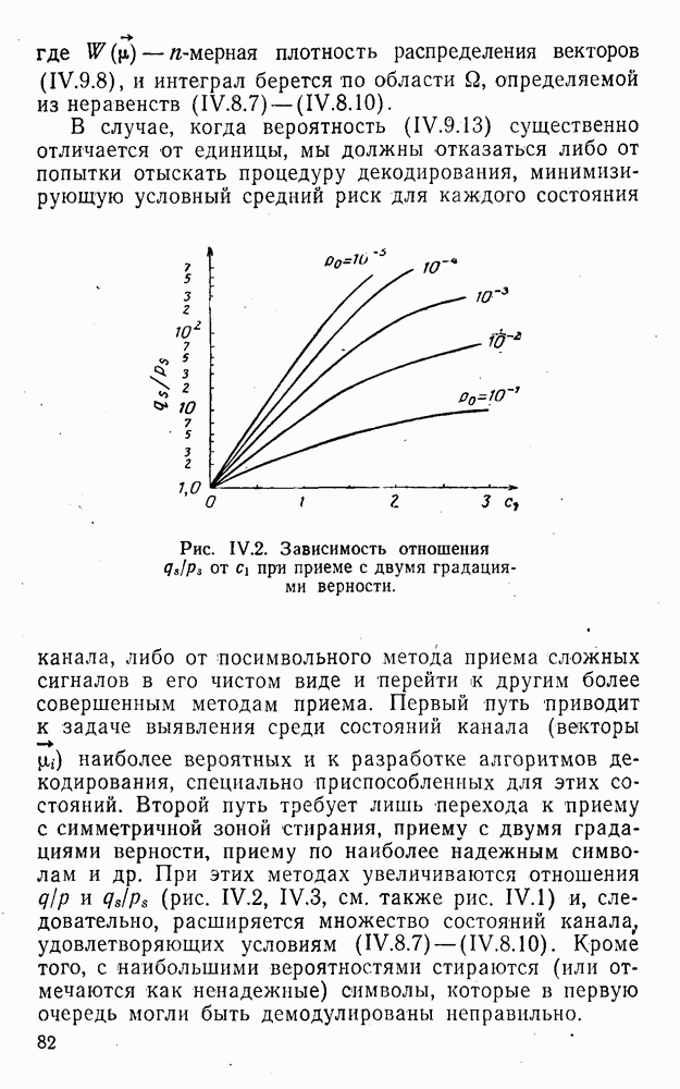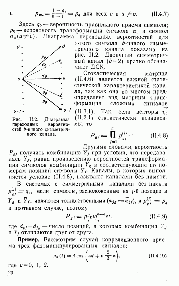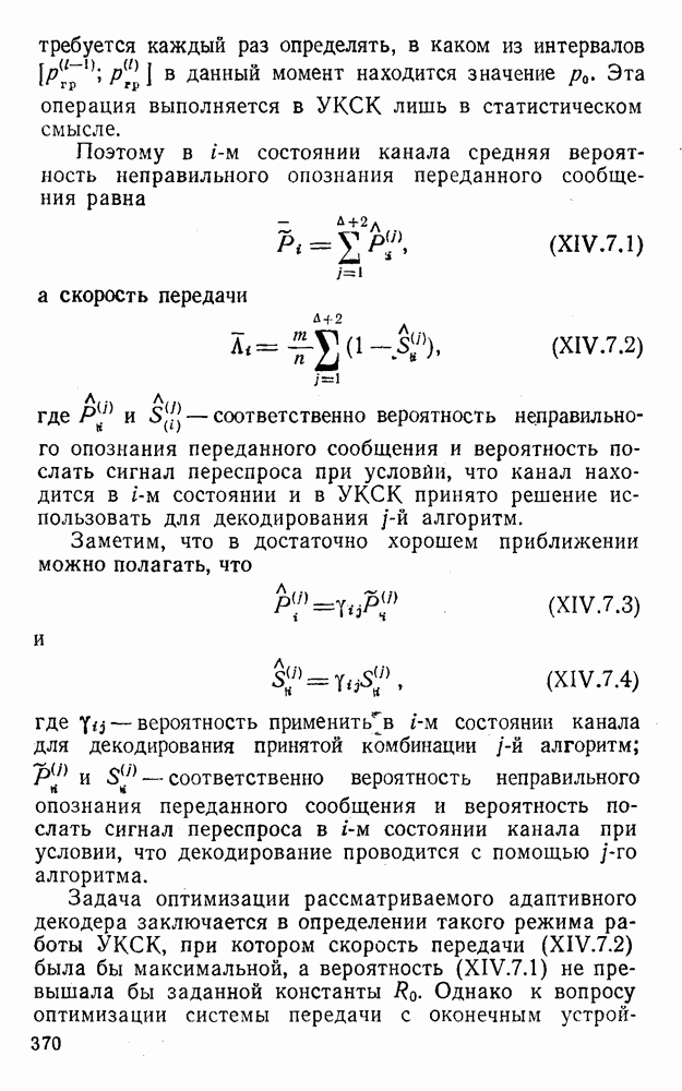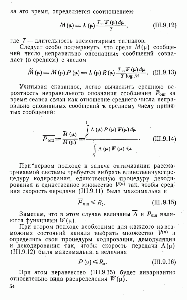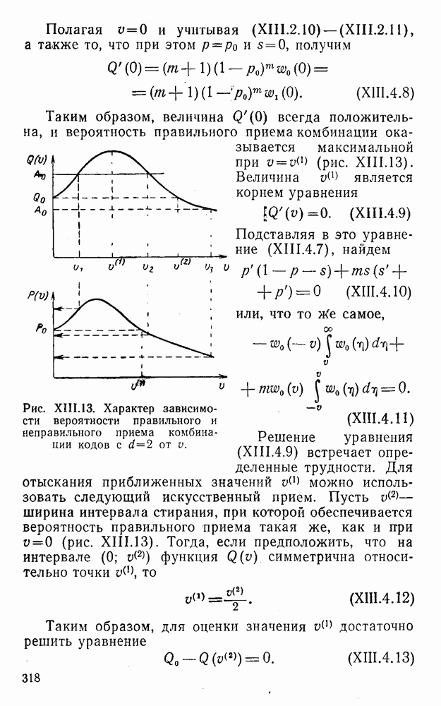 вместо (XII.6.3) используется операция (XII.7.5). Эти обстоятельства дают основания полагать, что полученные в § 6 гл. XII оценки вероятности неправильного опознания символа с успехом могут быть использованы и при оптимальном опознании информационных символов (во всяком случае для