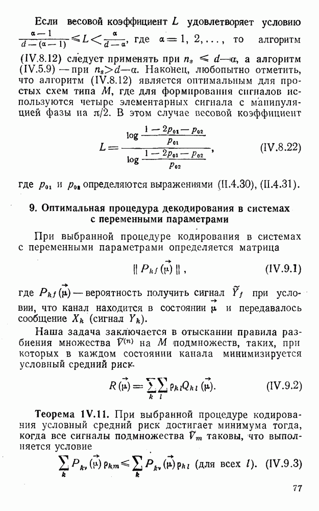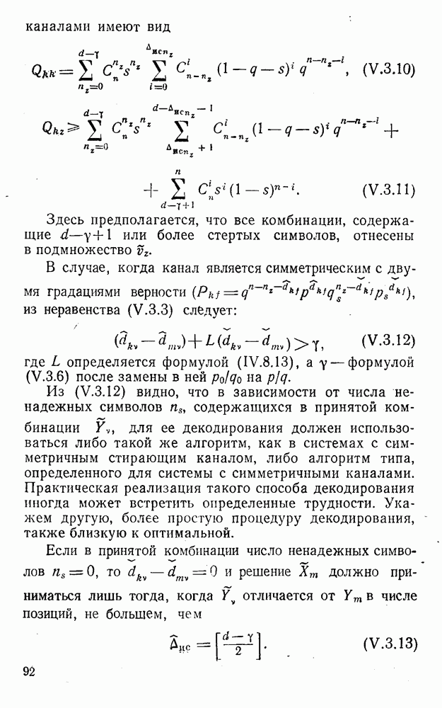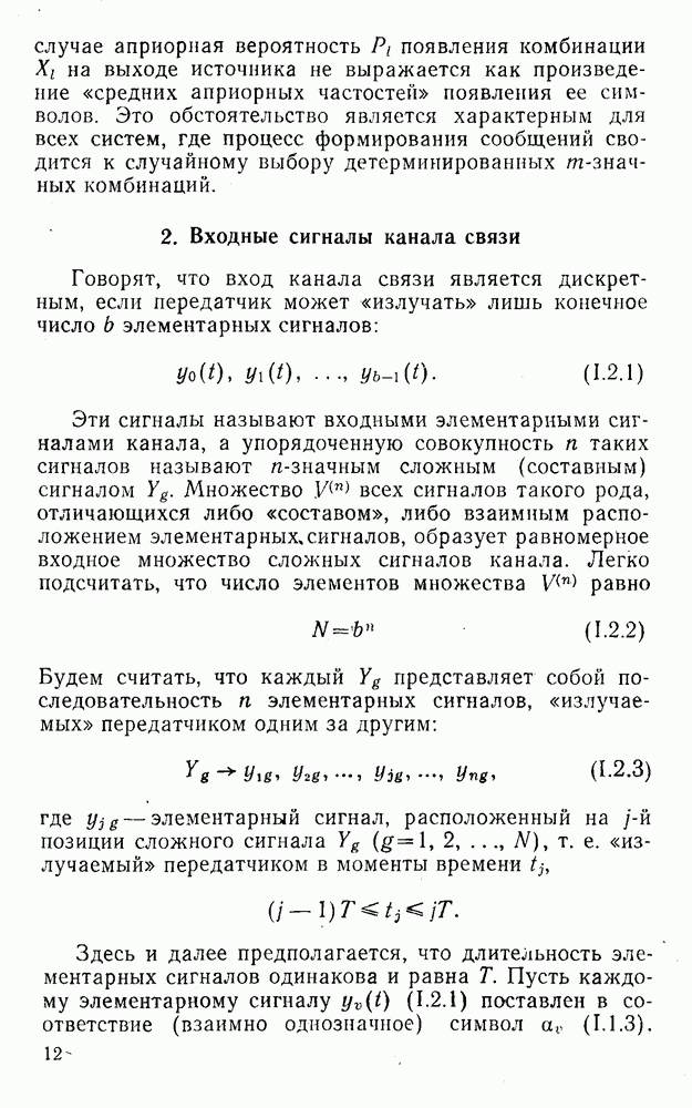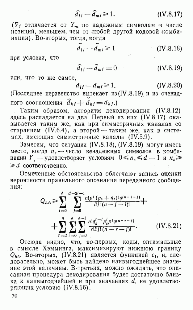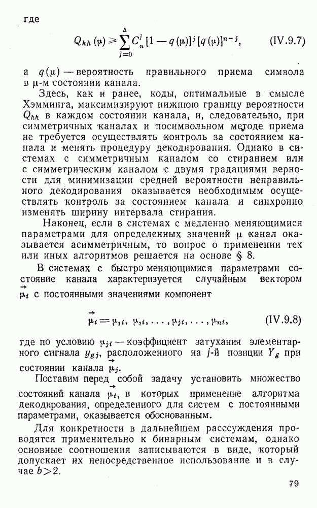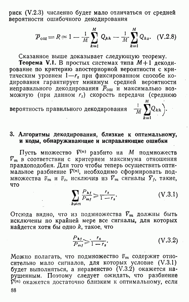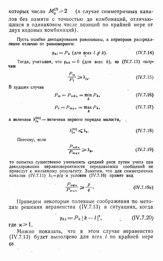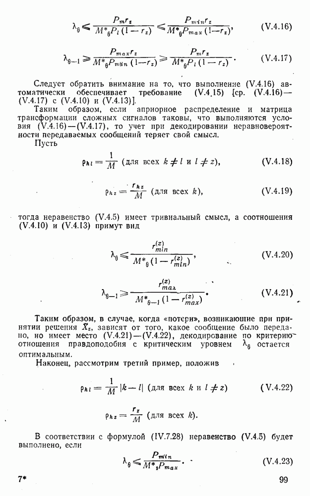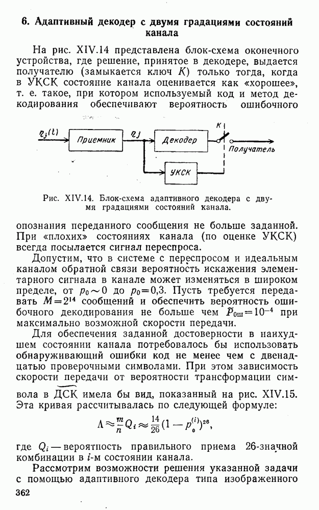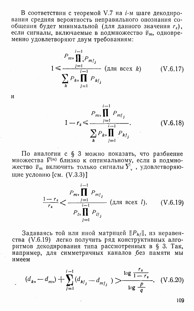 вместо (XII.6.3) используется операция (XII.7.5). Эти обстоятельства дают основания полагать, что полученные в § 6 гл. XII оценки вероятности неправильного опознания символа с успехом могут быть использованы и при оптимальном опознании информационных символов (во всяком случае для