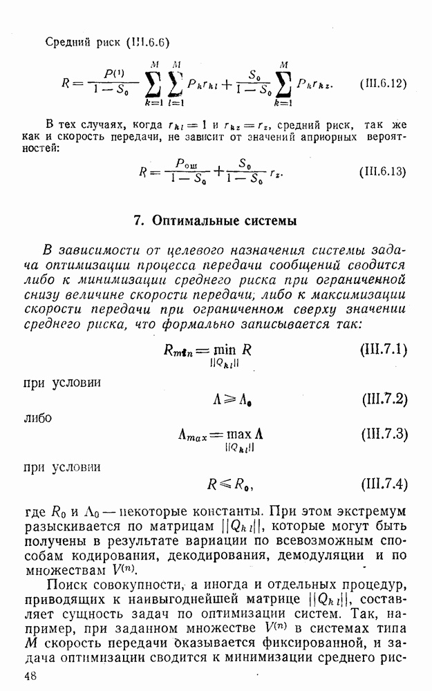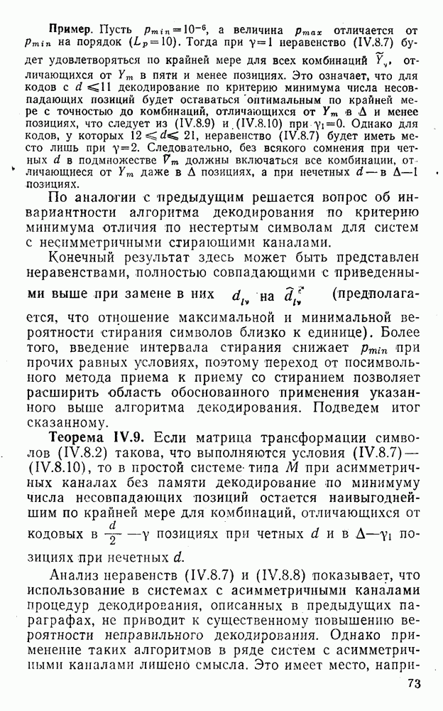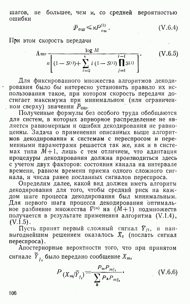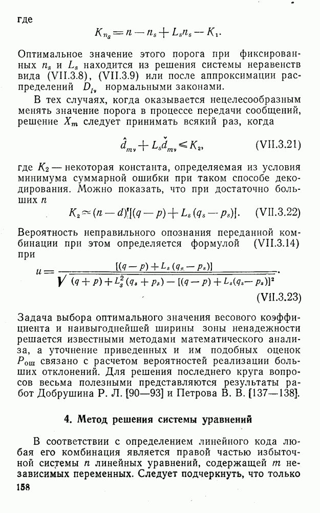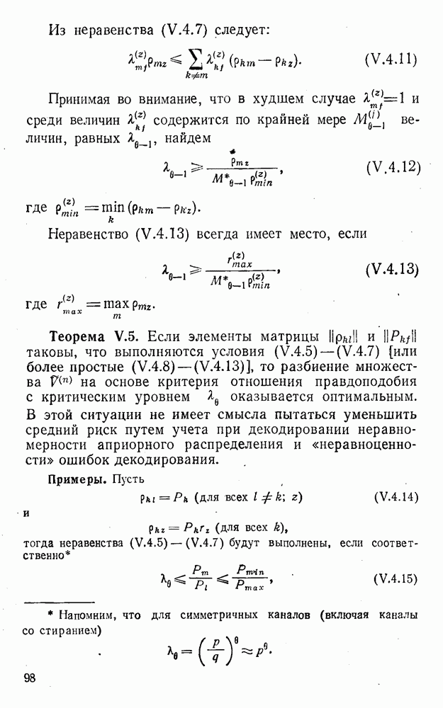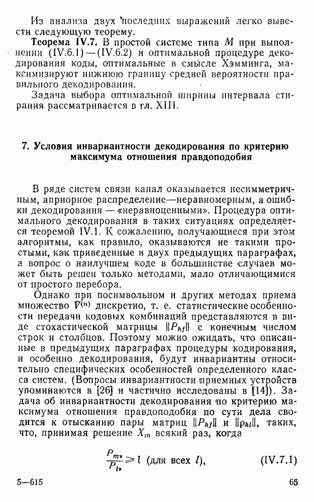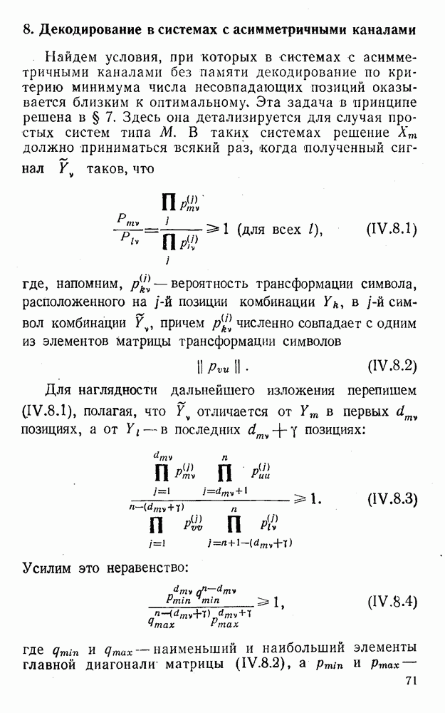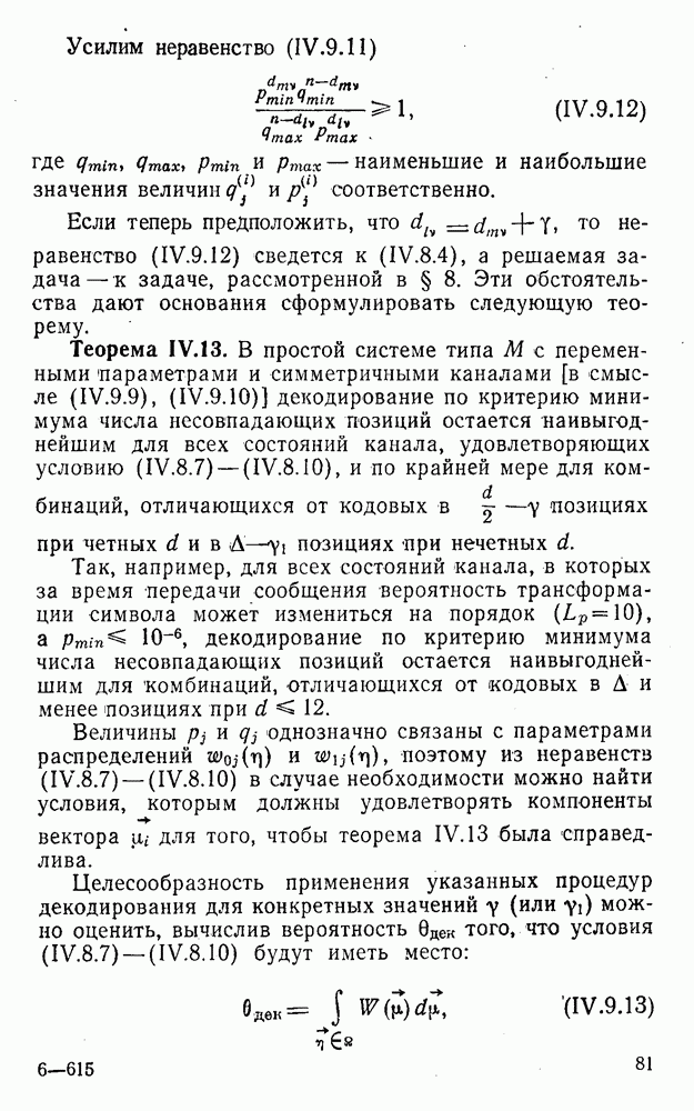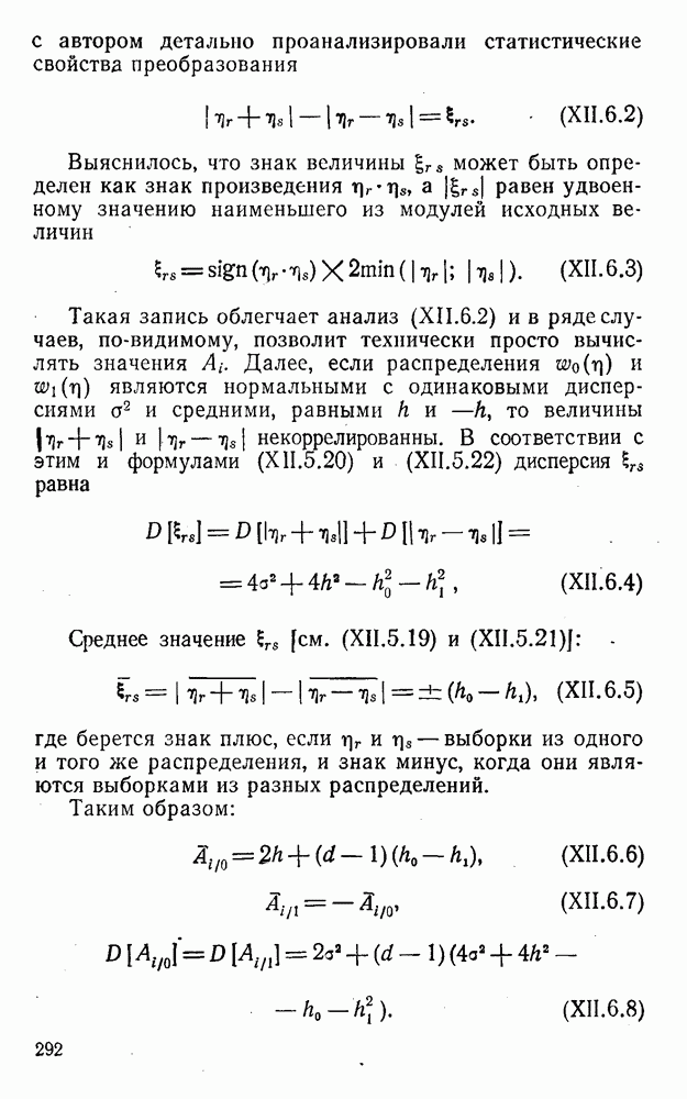 вместо (XII.6.3) используется операция (XII.7.5). Эти обстоятельства дают основания полагать, что полученные в § 6 гл. XII оценки вероятности неправильного опознания символа с успехом могут быть использованы и при оптимальном опознании информационных символов (во всяком случае для
