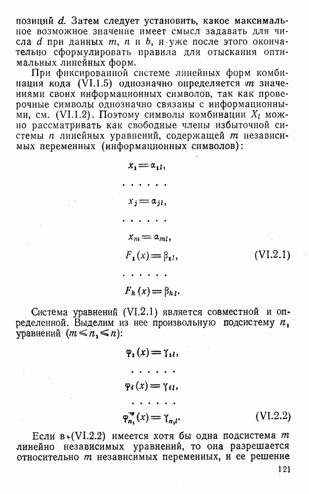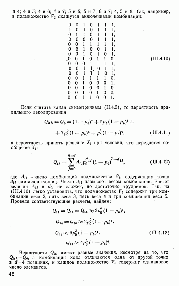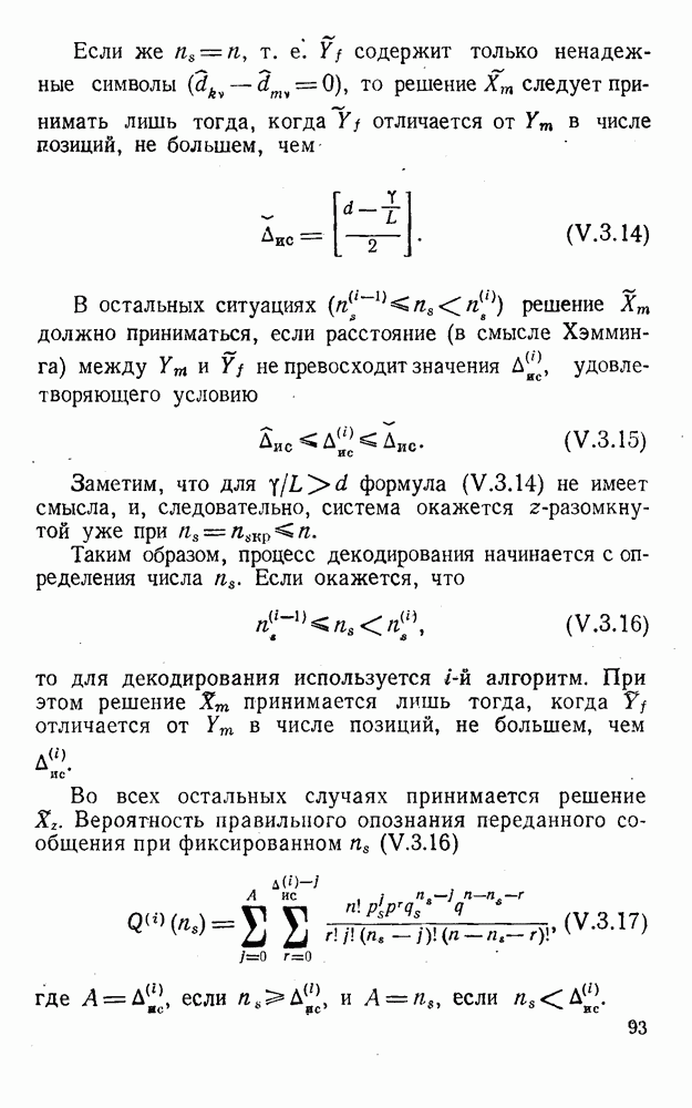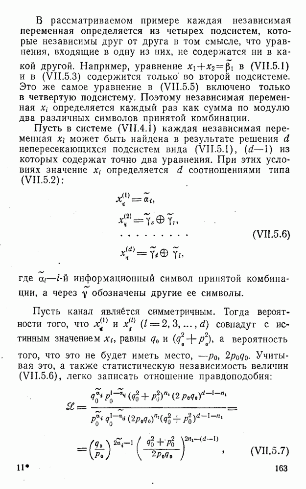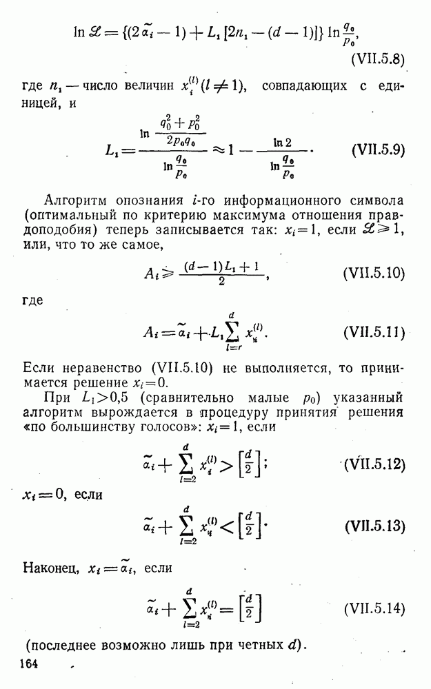Учитывая эти обстоятельства, а также то, что комбинации рассматриваемых кодов допускают декодирование по методу независимых решений, легко составить отношение правдоподобия: