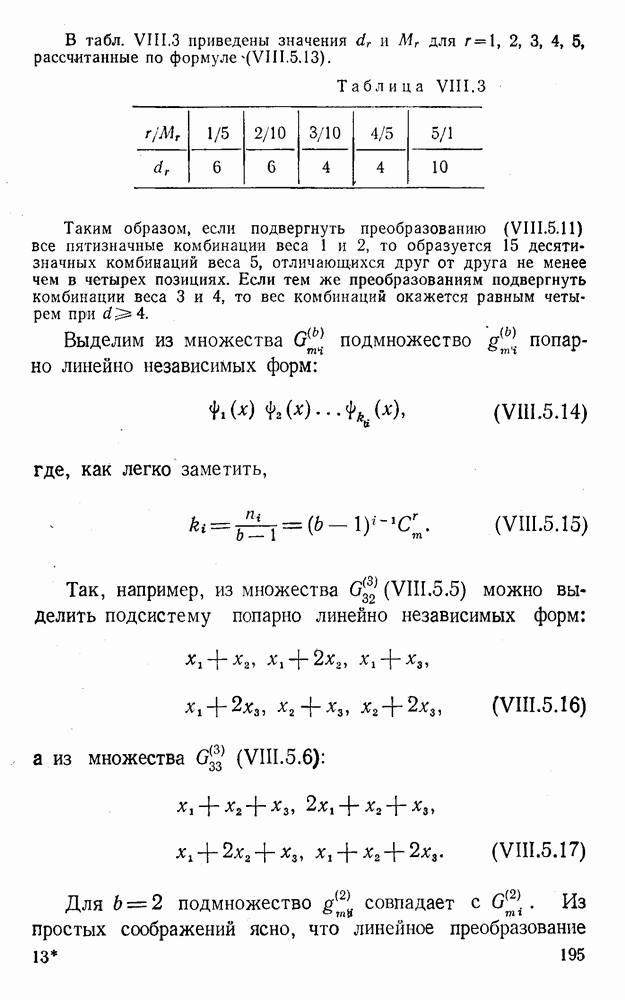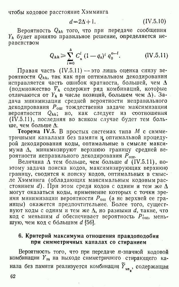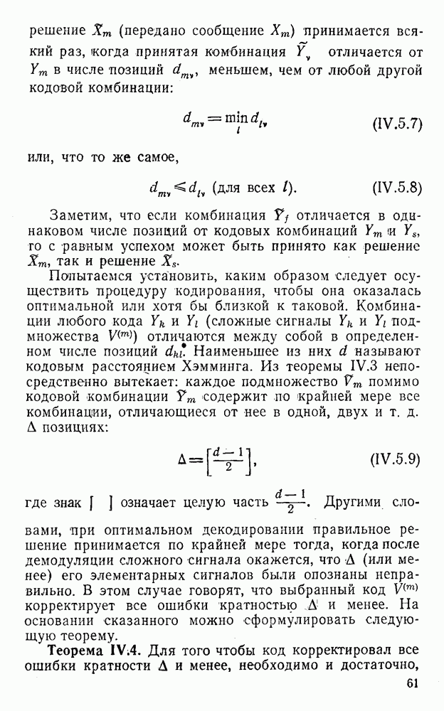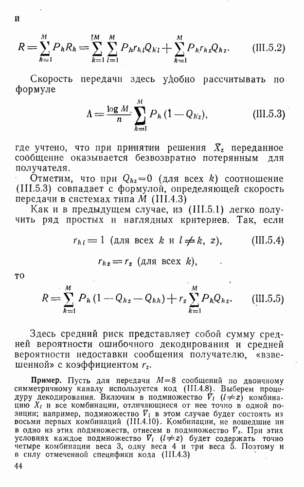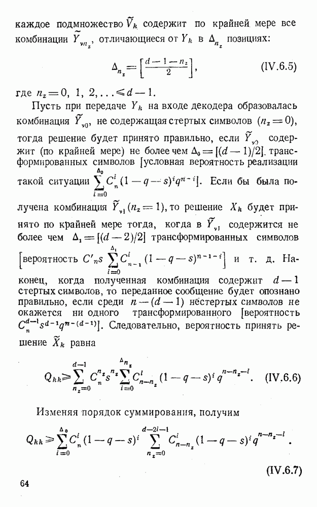 Учитывая эти обстоятельства, а также то, что комбинации рассматриваемых кодов допускают декодирование по методу независимых решений, легко составить отношение правдоподобия: