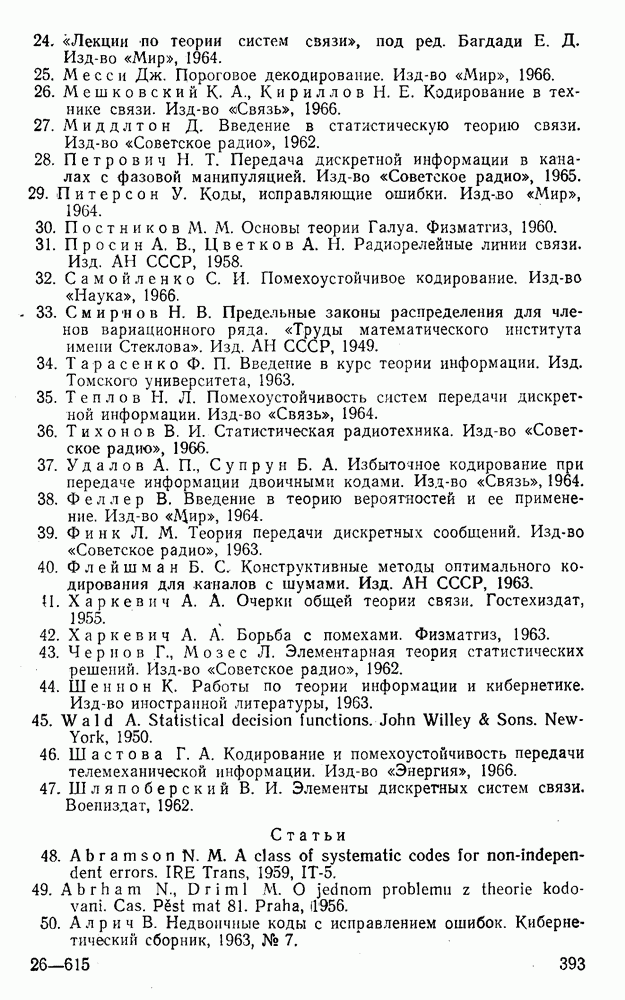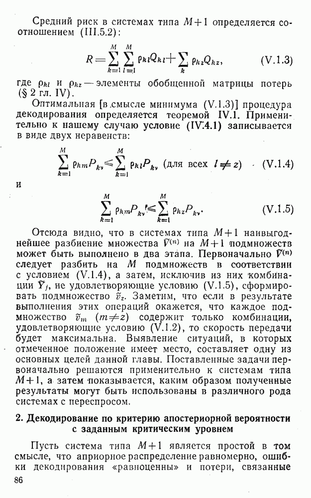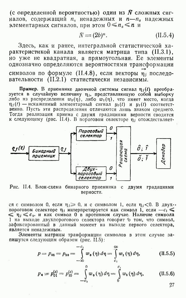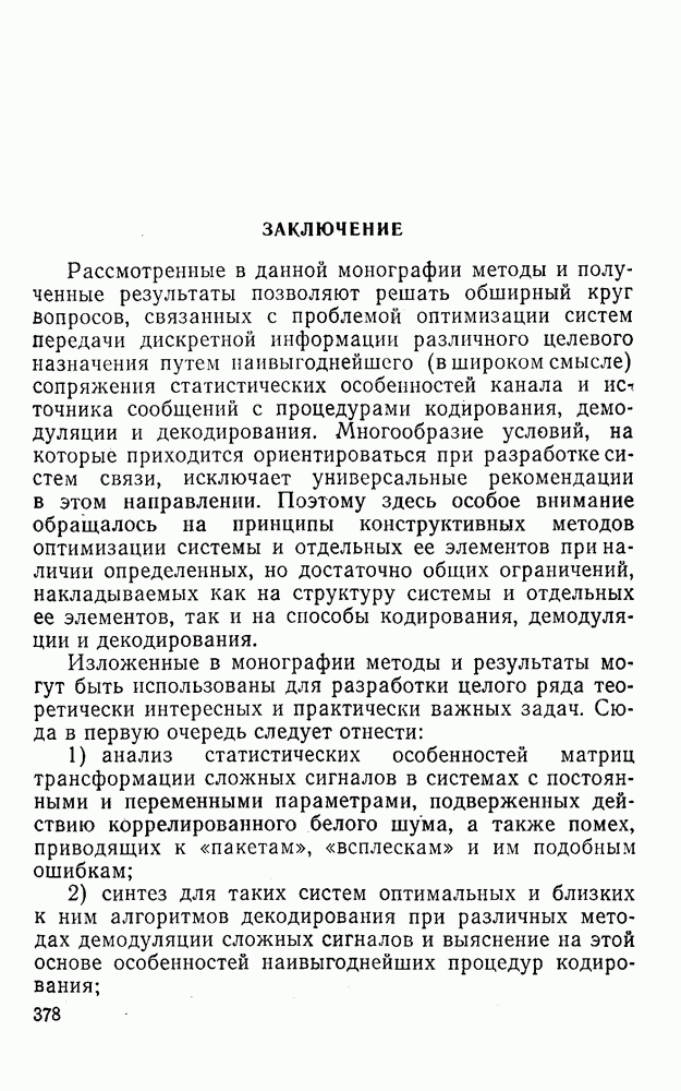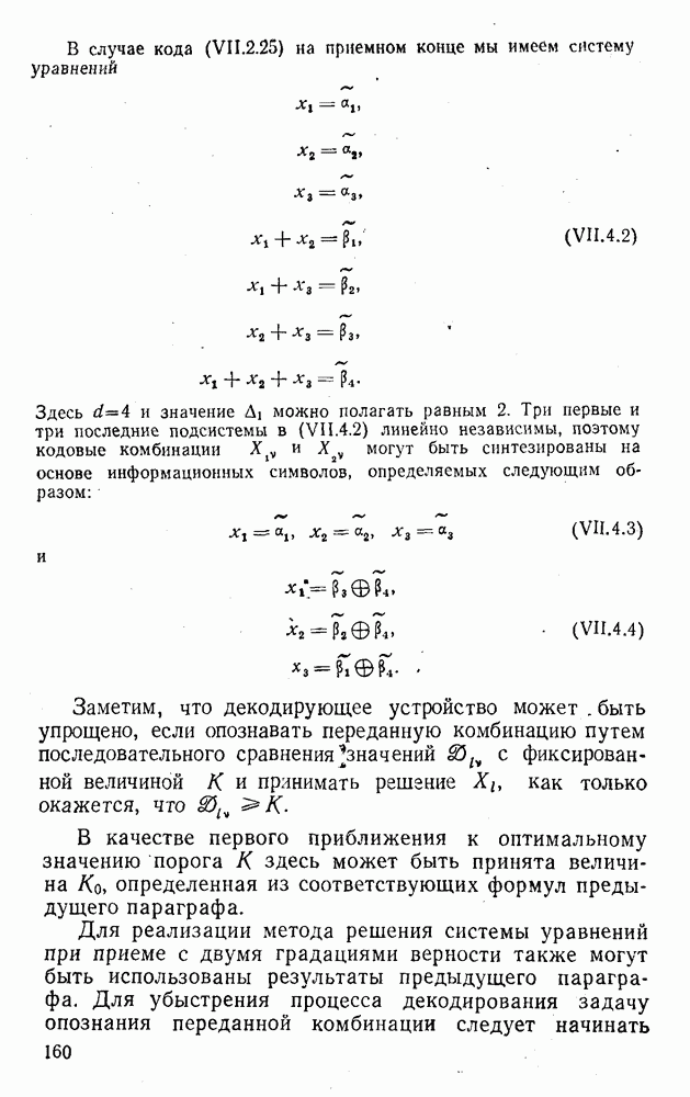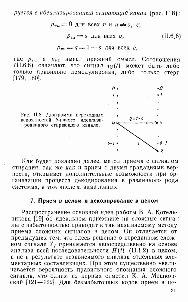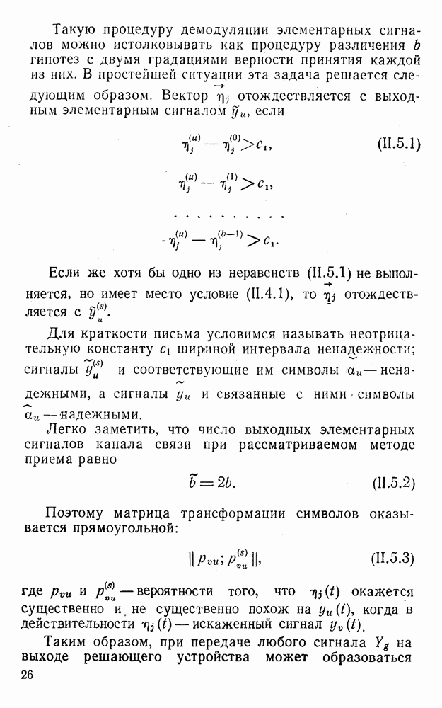 В заключение следует отметить, что использованный здесь подход позволяет определить алгоритм оптимального аналогового декодирования для других более сложных ситуаций.