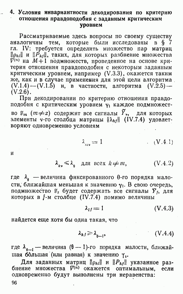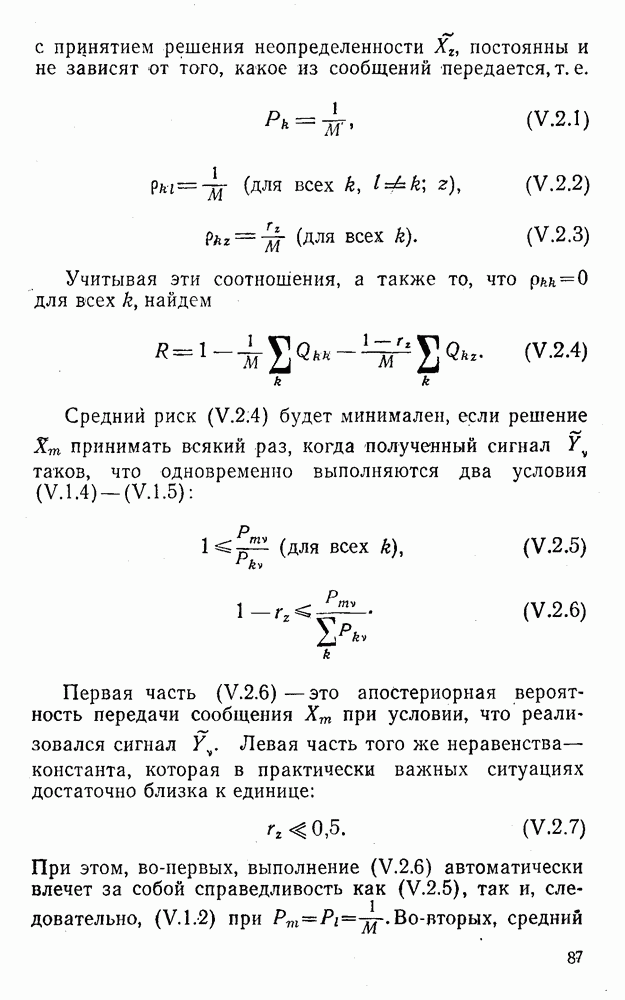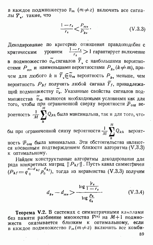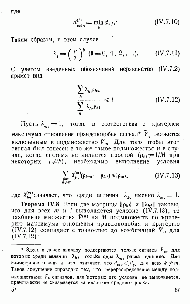Следовательно, условие, обеспечивающее максимум вероятности правильного опознания символа, можно представить в виде
