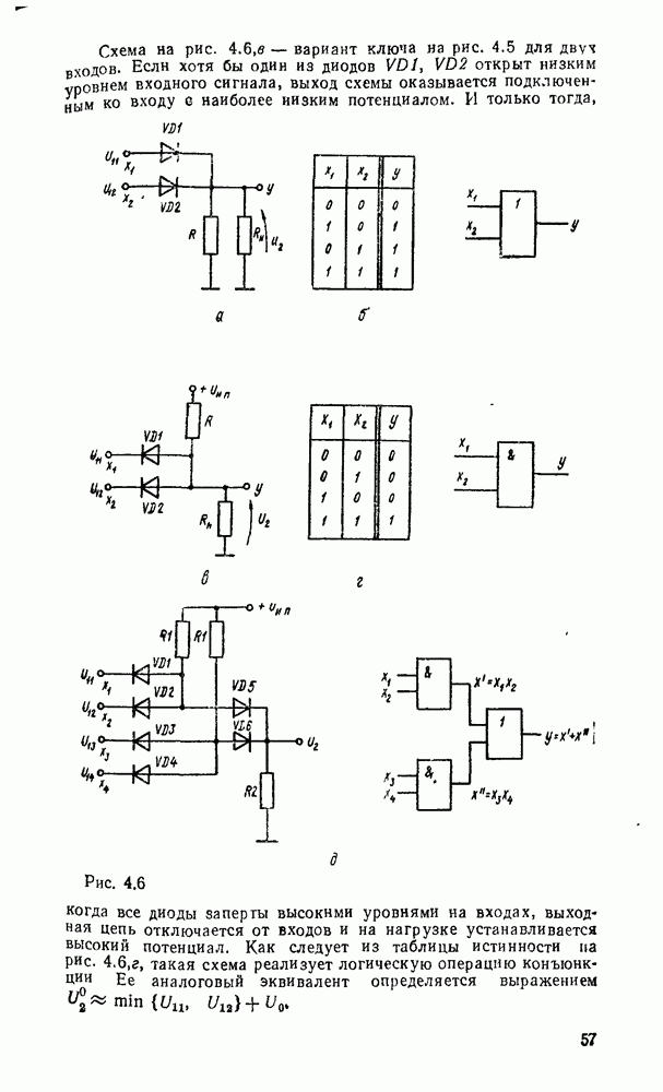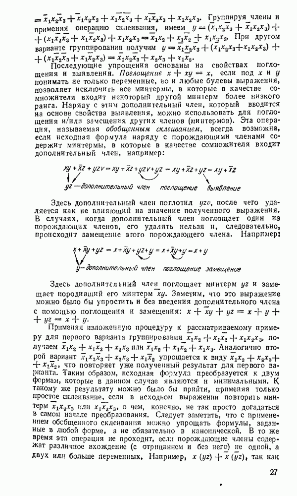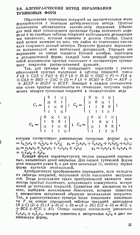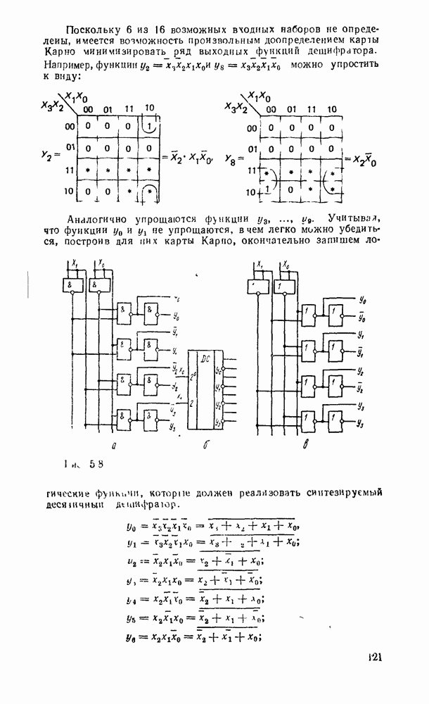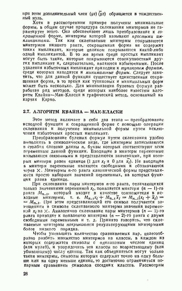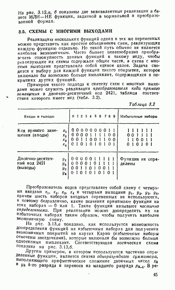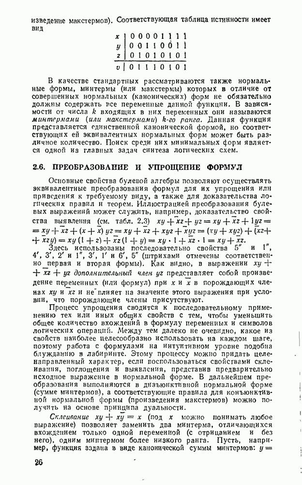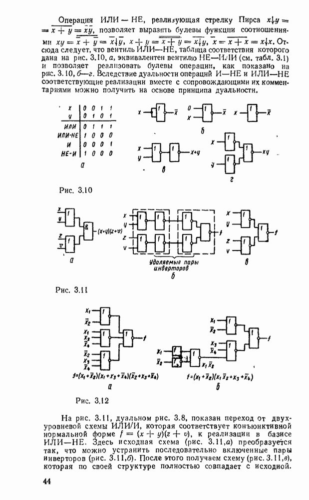 Функции Всевозможные 16 функций двух переменных приведены в табл. 2.1, где указаны наиболее употребительные обозначения и названия. Шесть из приведенных функций не зависят или от Таблица 2.1 (см. оригинал) Среди остальных 10 функций две Функции от любого числа переменных можно получить с помошью суперпозиции, т. е. замещения переменных некоторыми функциями. Например, подставляя в