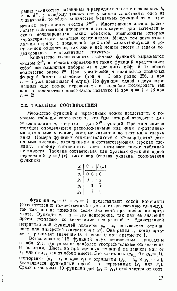 2.2. ТАБЛИЦЫ СООТВЕТСТВИЯМножество функций