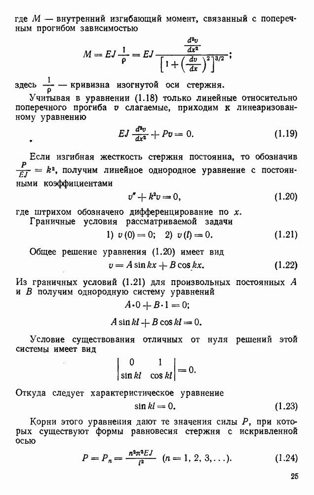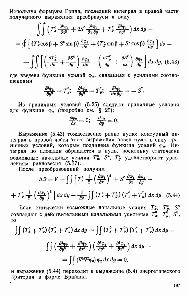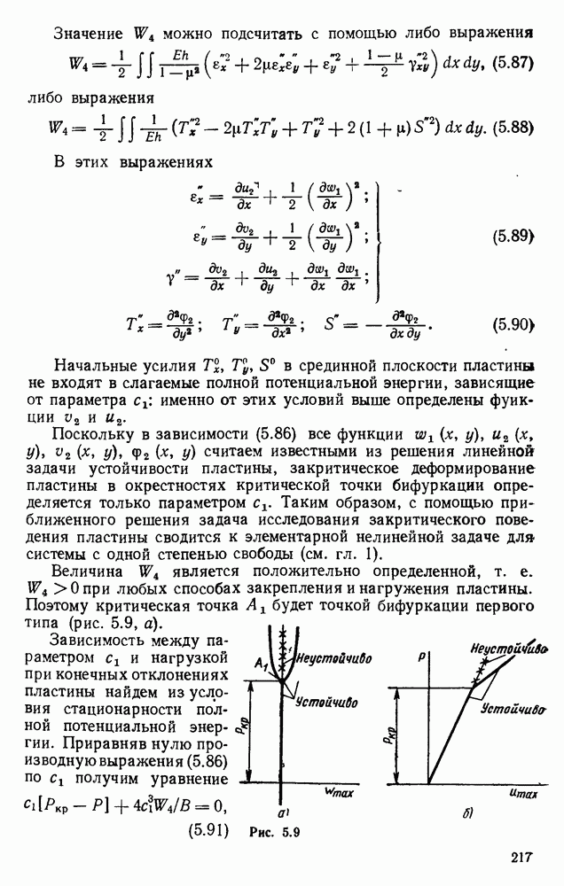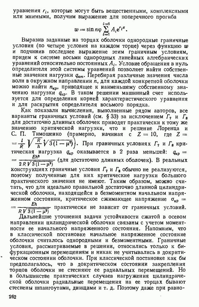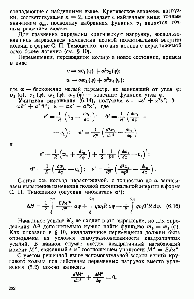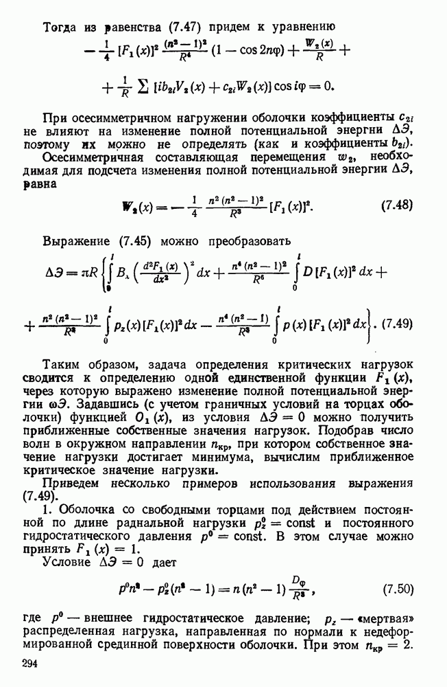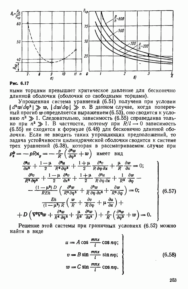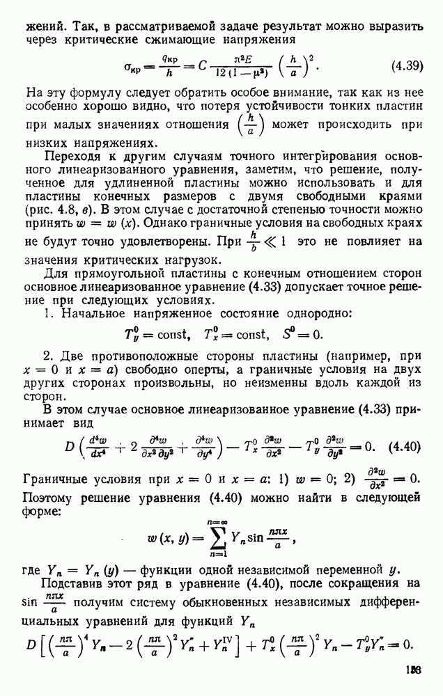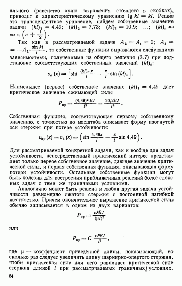 Для существования отличных от тождественного нуля решений выражение, стоящее в фигурных скобках, должно обращаться в нуль. Это условие приводит к уравнению, дающему приближенные значения критических соотношений внешних усилий: