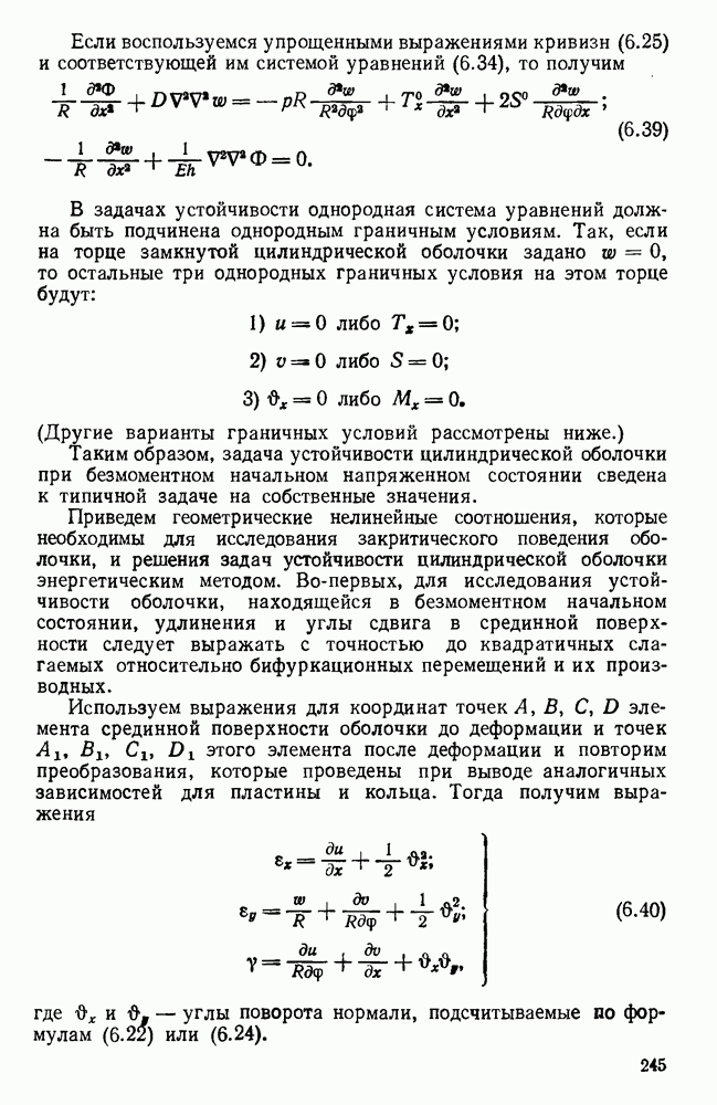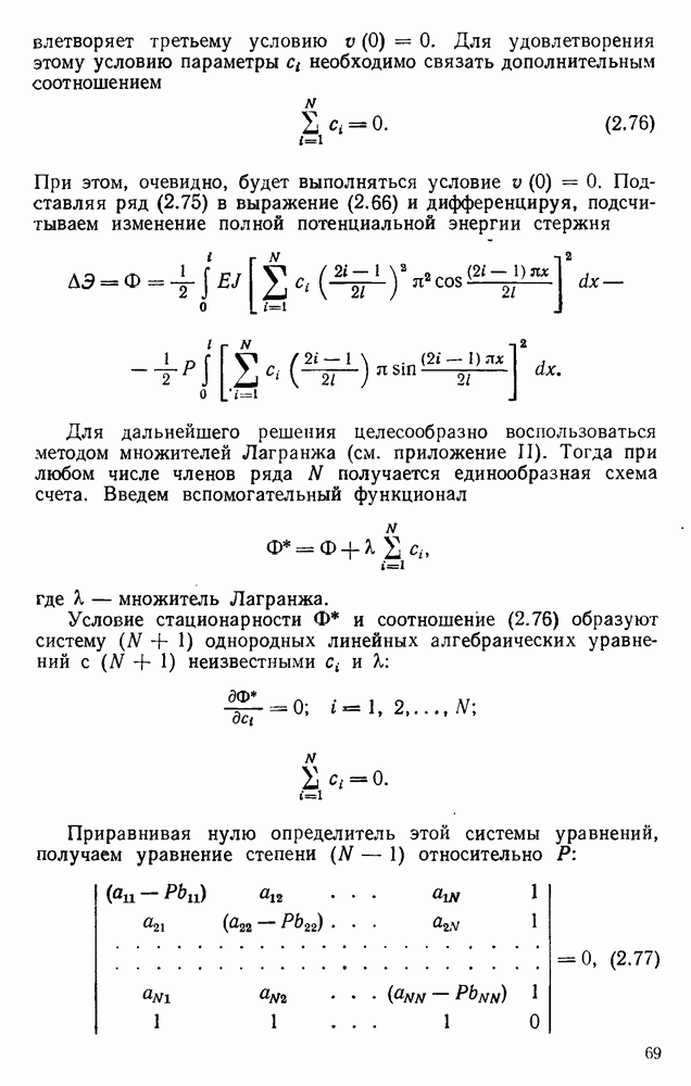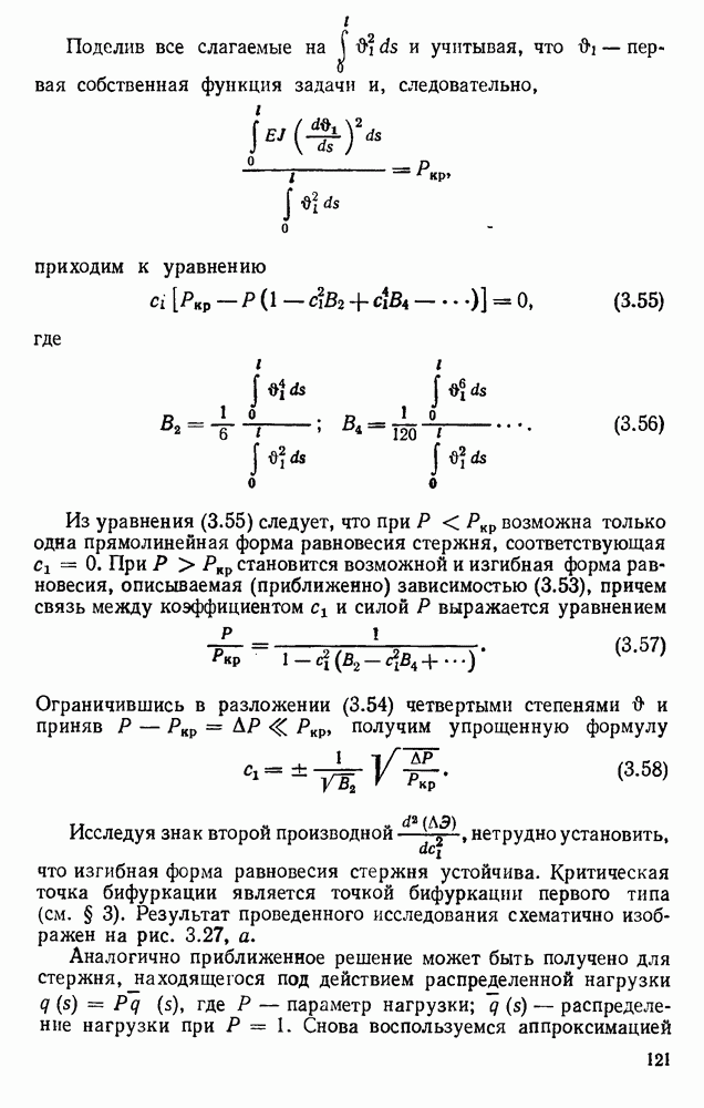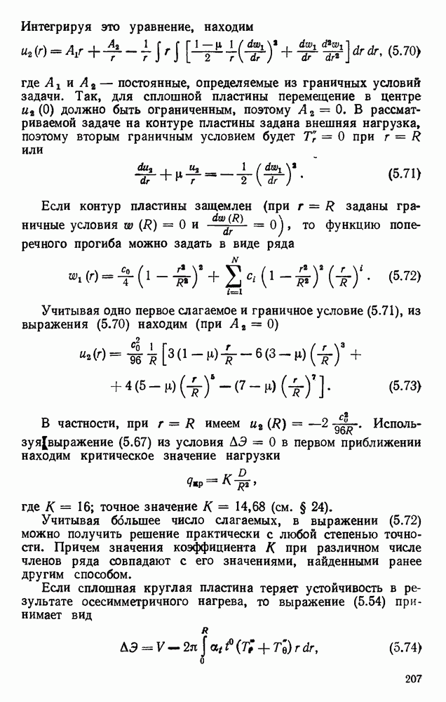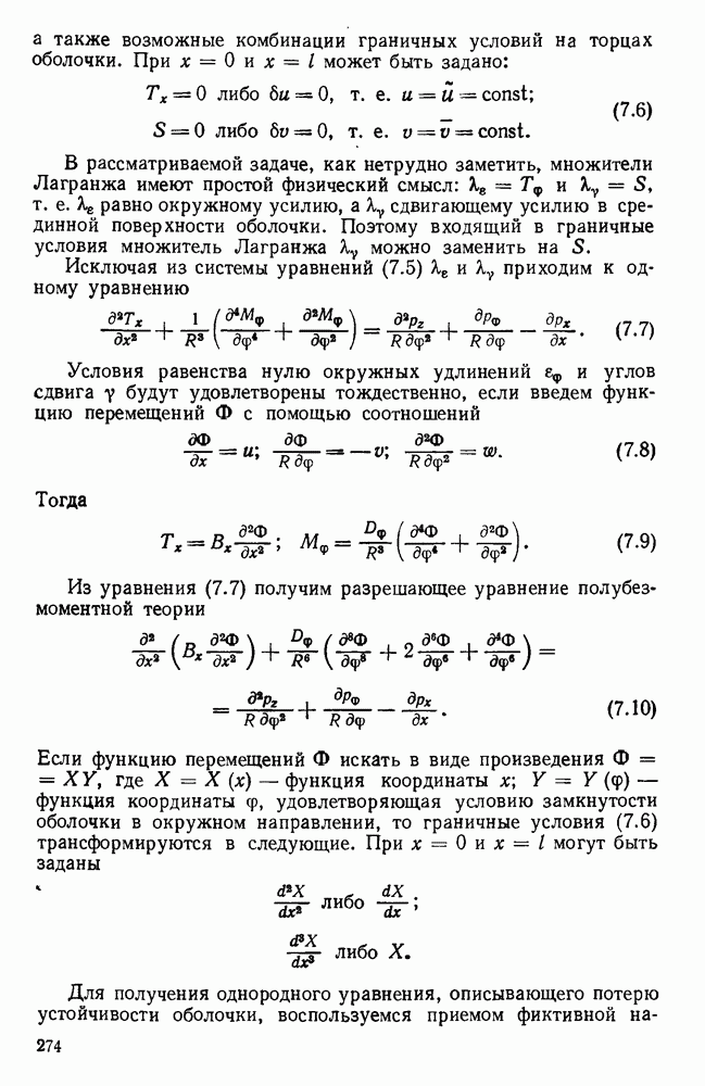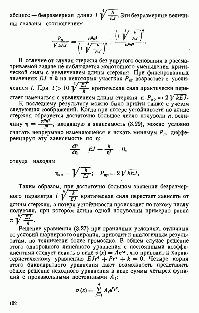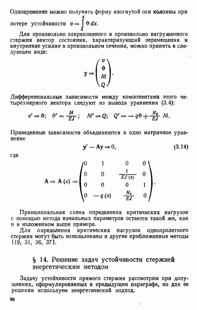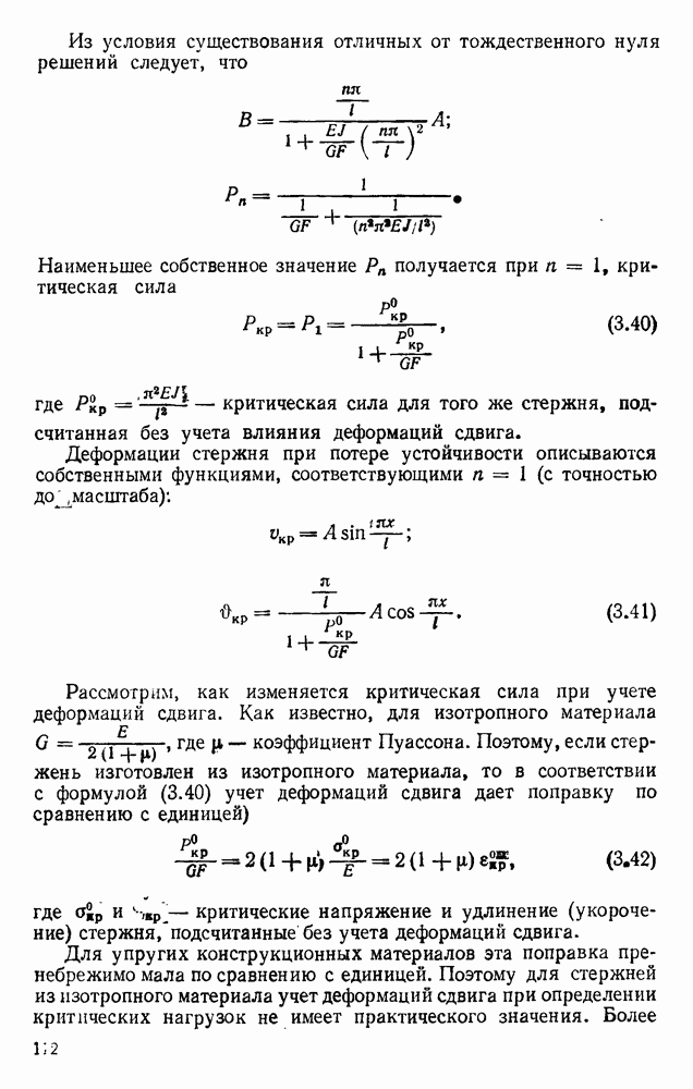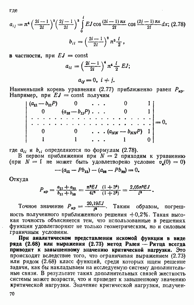 Для существования отличных от тождественного нуля решений выражение, стоящее в фигурных скобках, должно обращаться в нуль. Это условие приводит к уравнению, дающему приближенные значения критических соотношений внешних усилий: