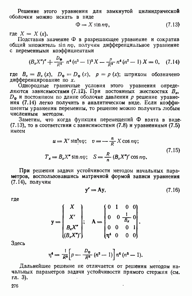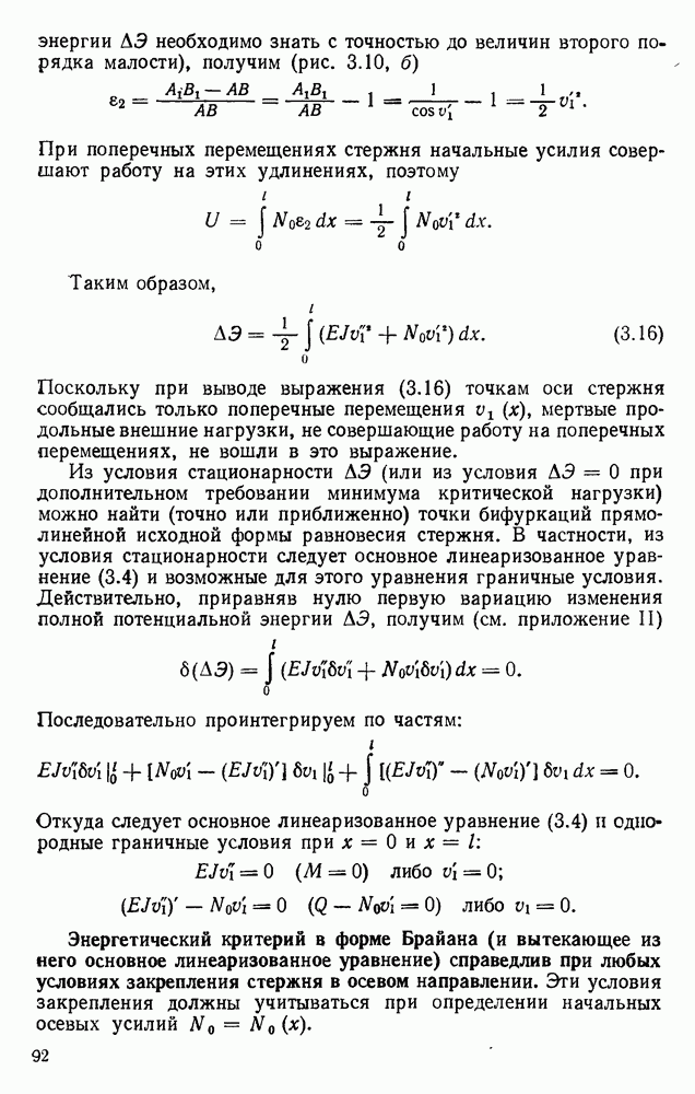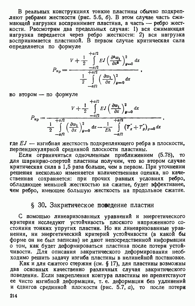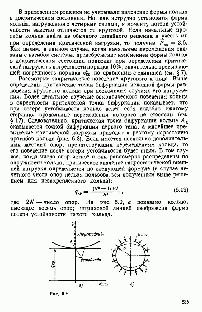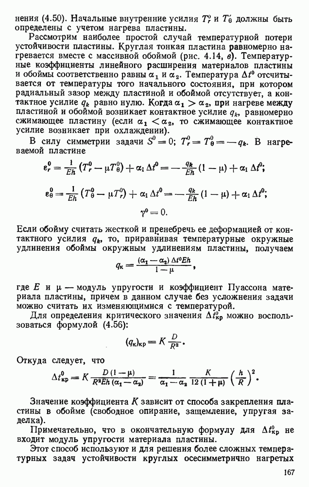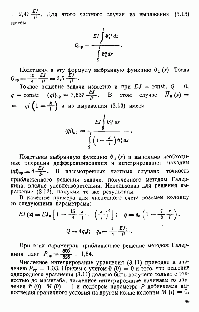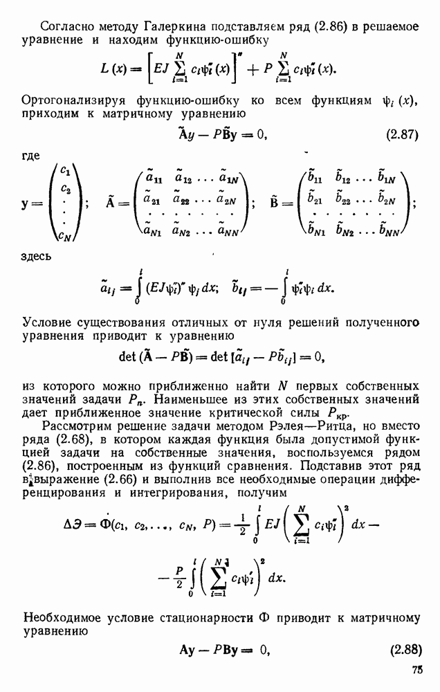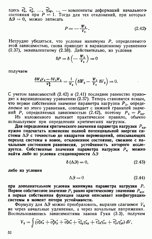 Для существования отличных от тождественного нуля решений выражение, стоящее в фигурных скобках, должно обращаться в нуль. Это условие приводит к уравнению, дающему приближенные значения критических соотношений внешних усилий: