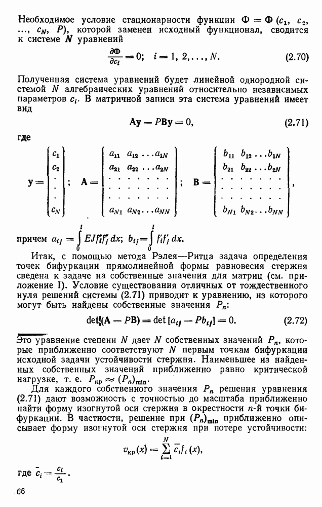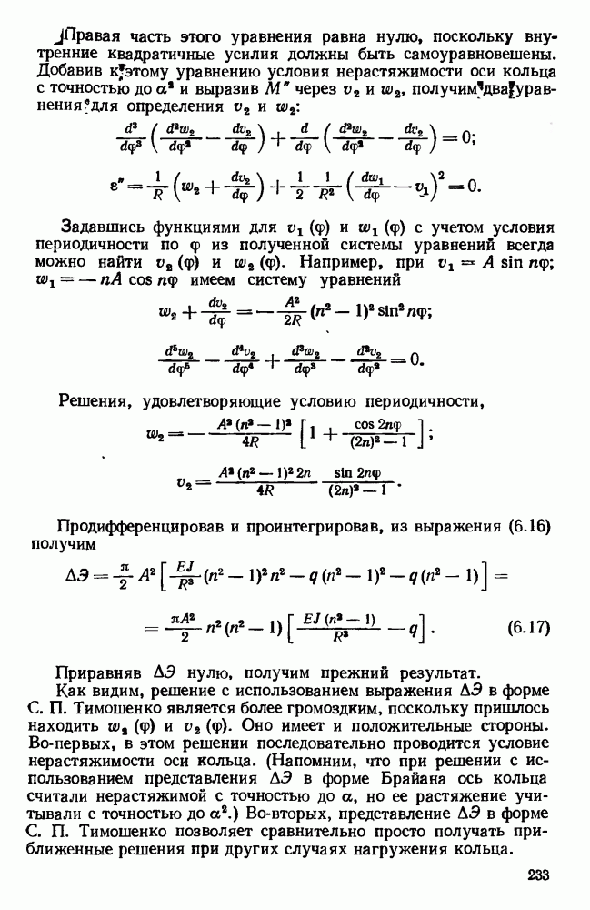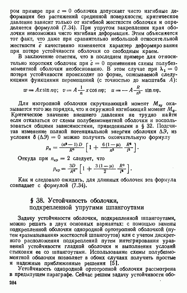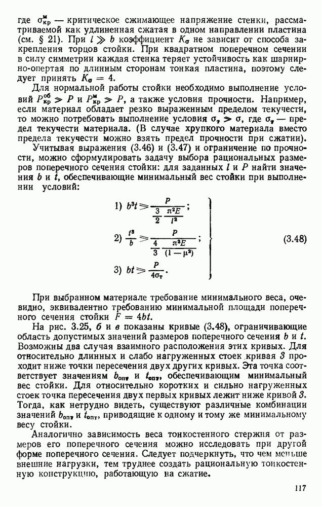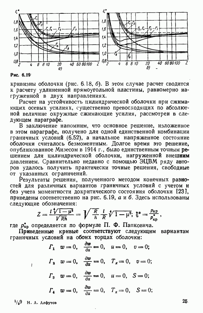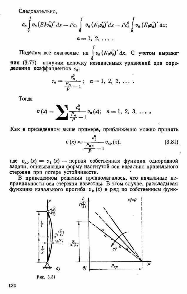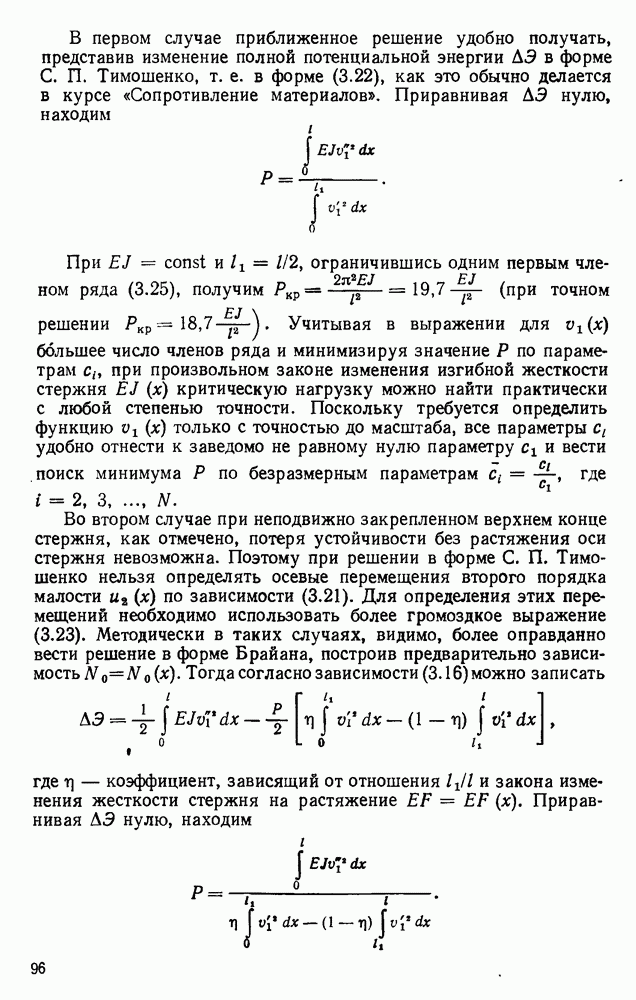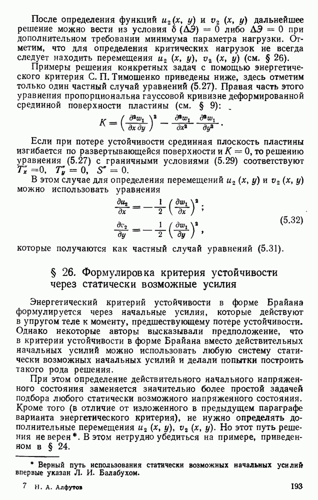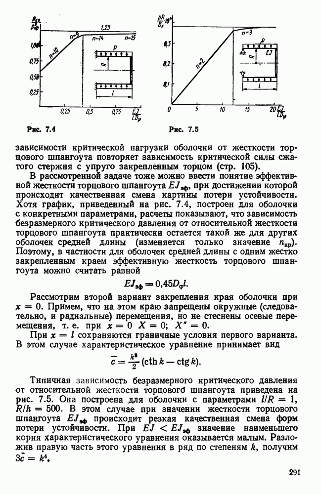 Для существования отличных от тождественного нуля решений выражение, стоящее в фигурных скобках, должно обращаться в нуль. Это условие приводит к уравнению, дающему приближенные значения критических соотношений внешних усилий: