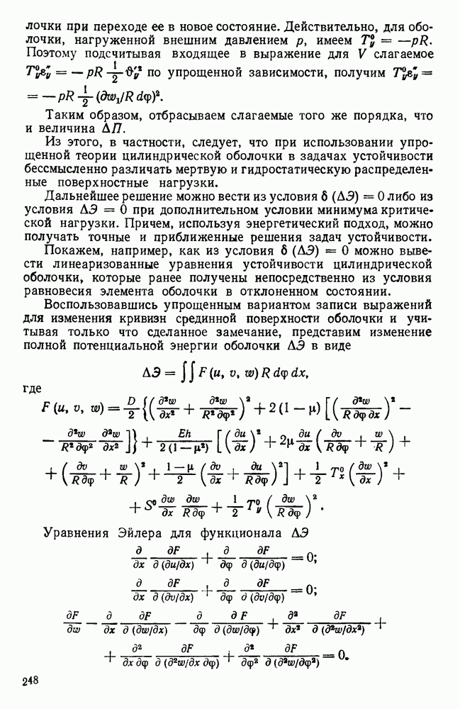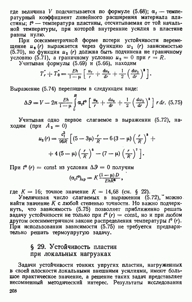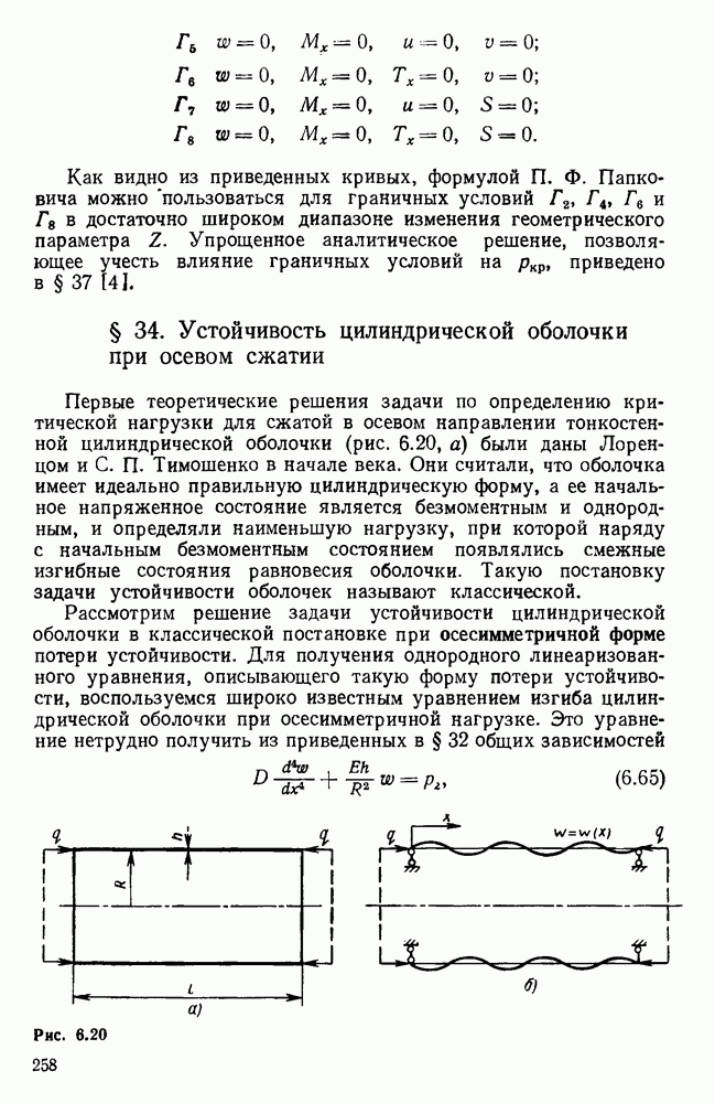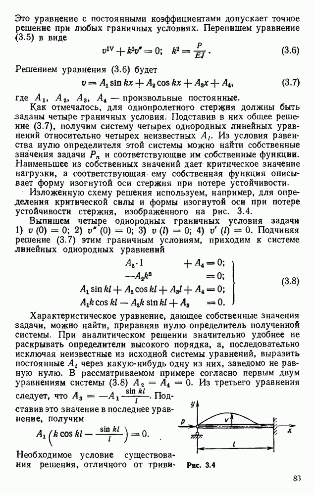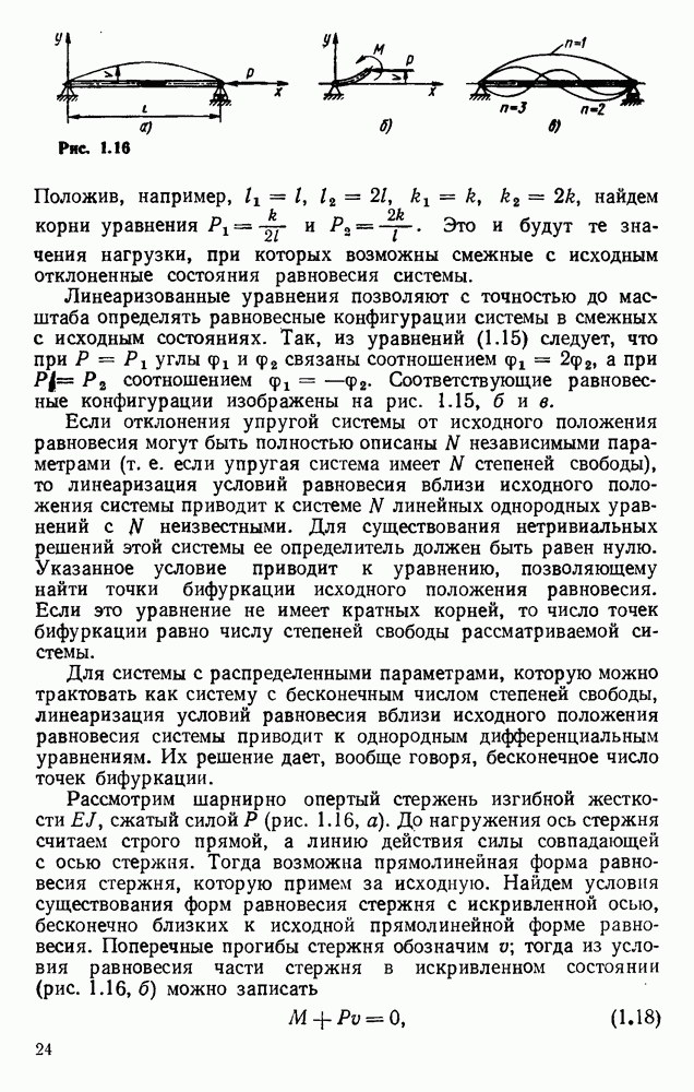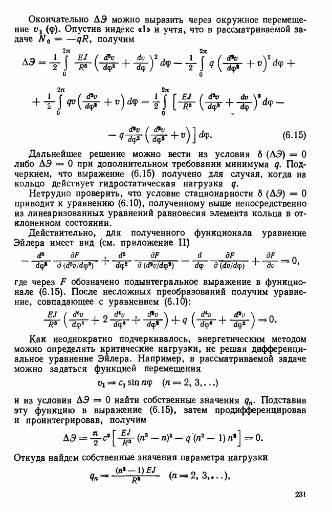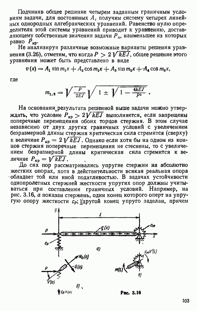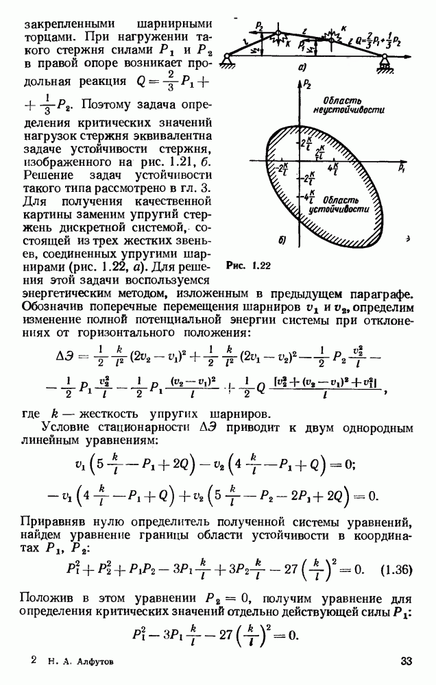 Для существования отличных от тождественного нуля решений выражение, стоящее в фигурных скобках, должно обращаться в нуль. Это условие приводит к уравнению, дающему приближенные значения критических соотношений внешних усилий: