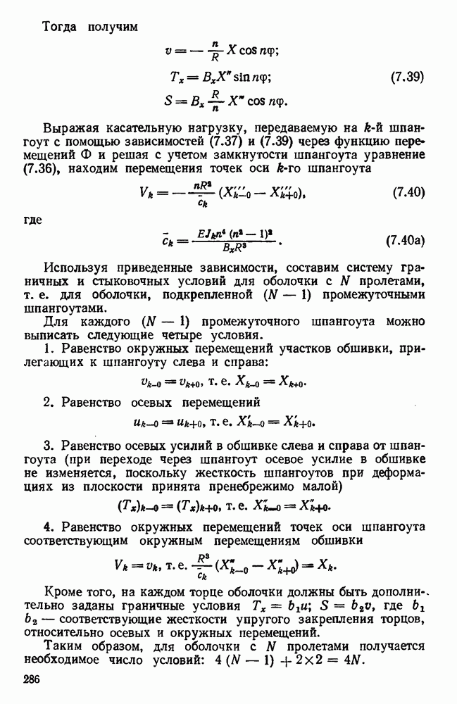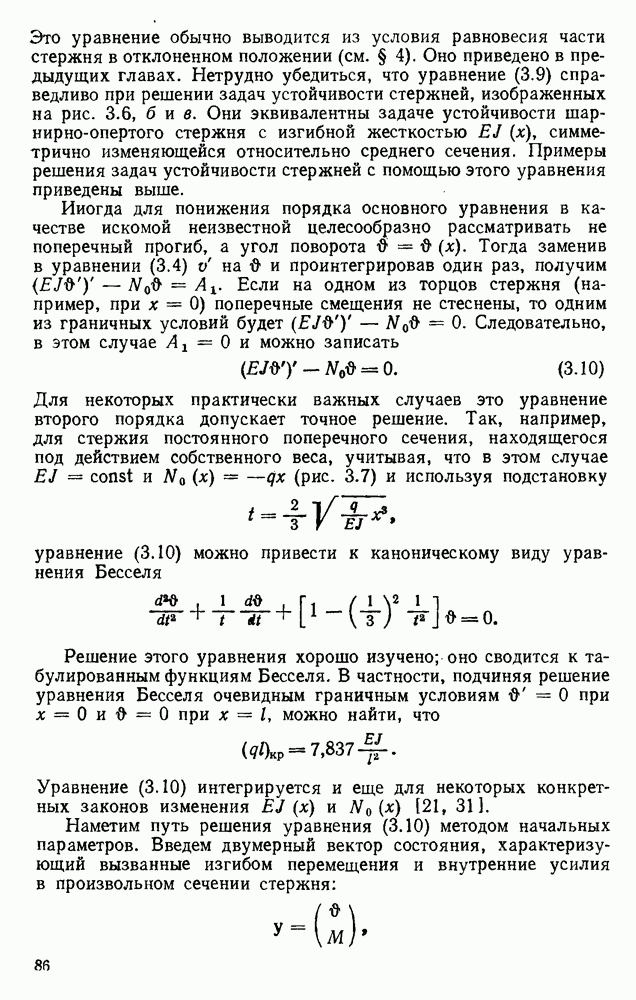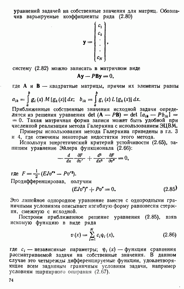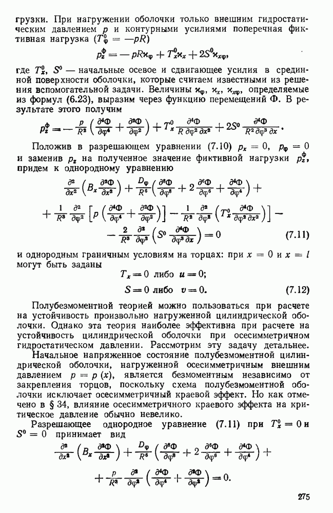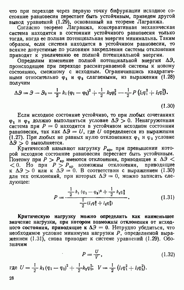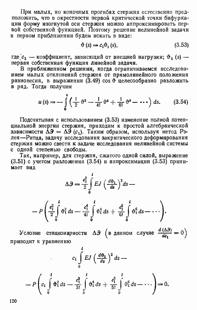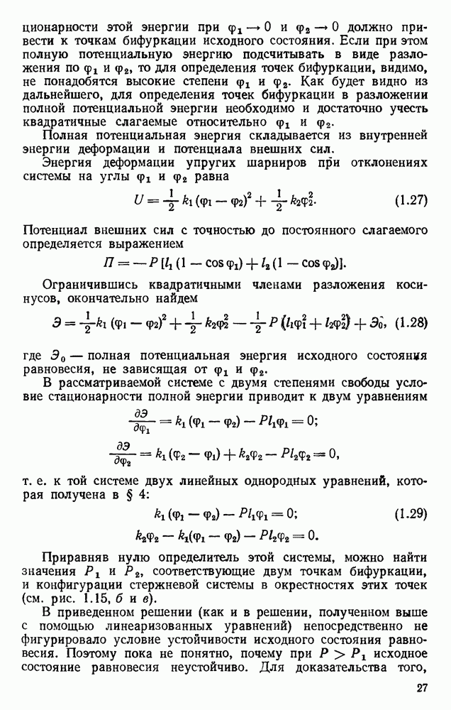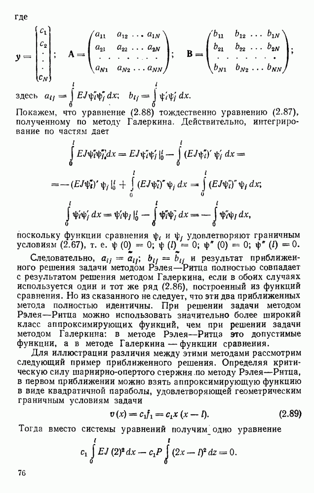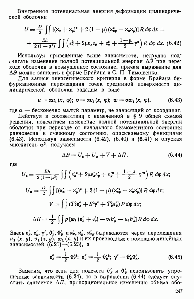 Для существования отличных от тождественного нуля решений выражение, стоящее в фигурных скобках, должно обращаться в нуль. Это условие приводит к уравнению, дающему приближенные значения критических соотношений внешних усилий: