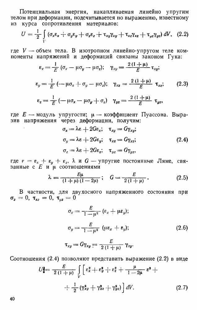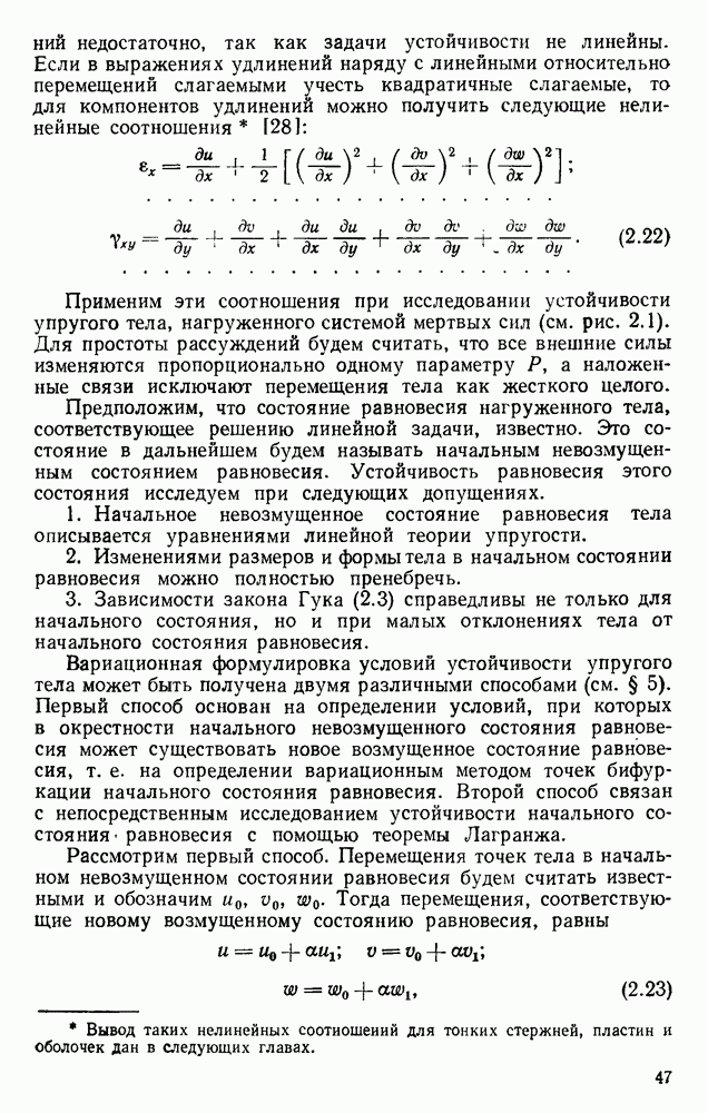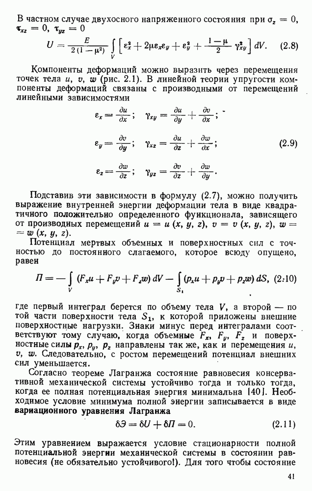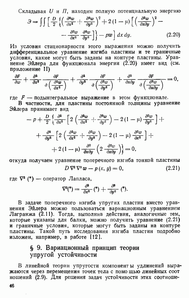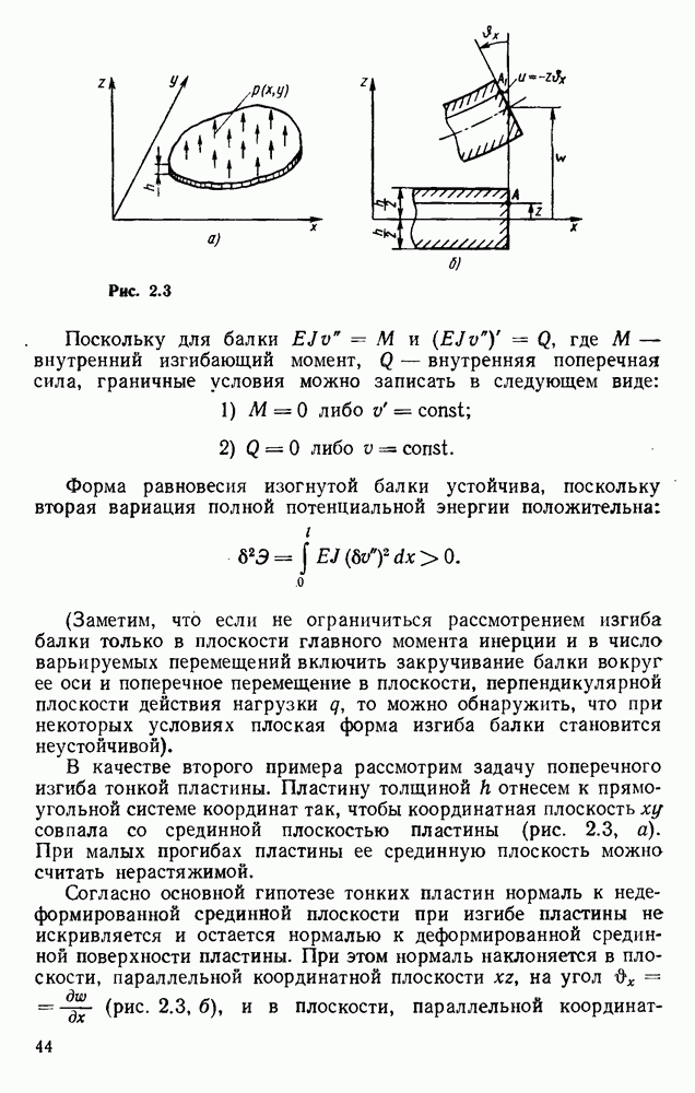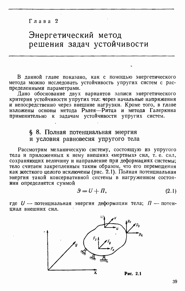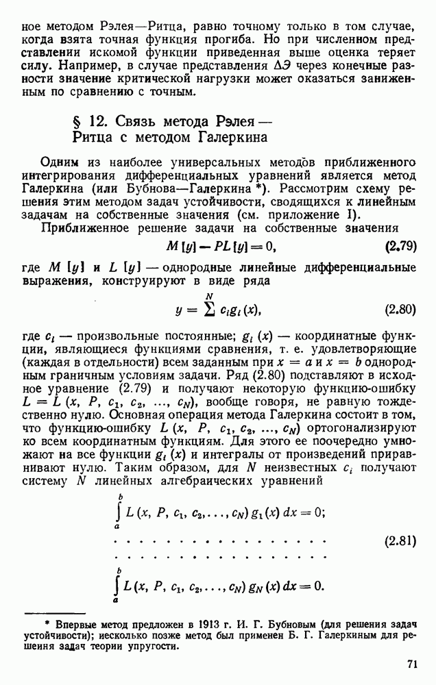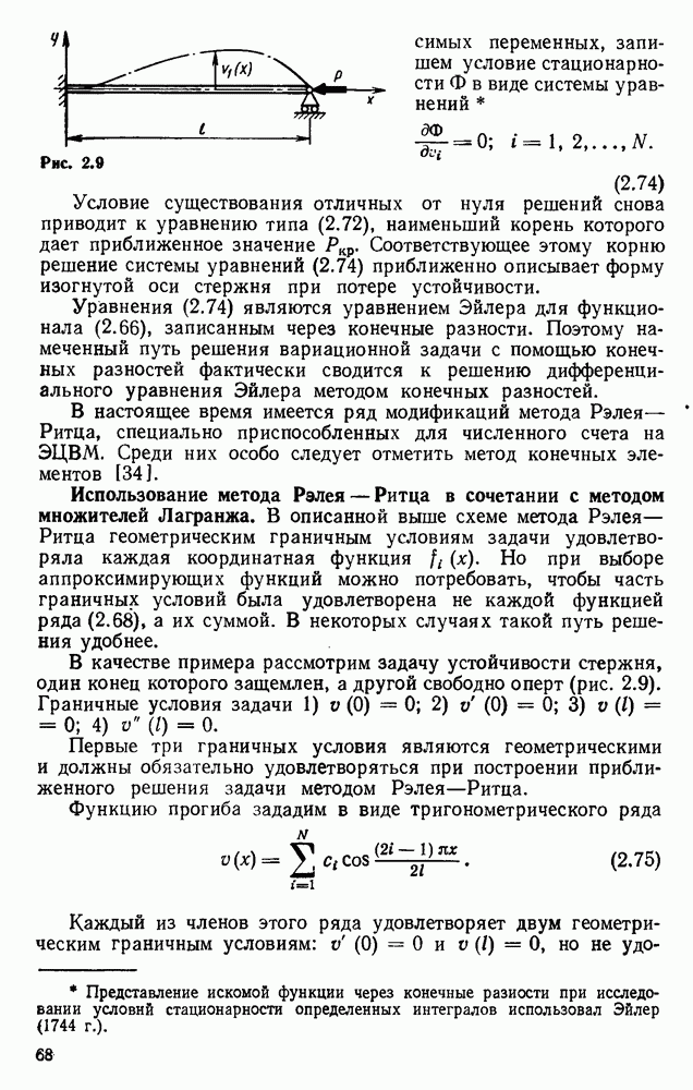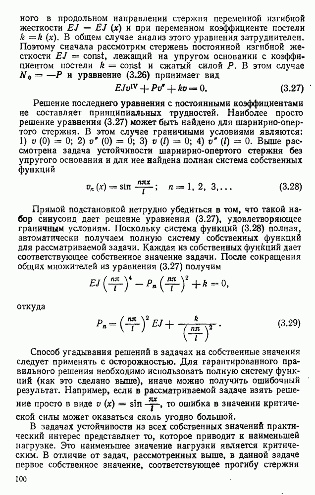 Знаки Учтя большее число членов ряда (4.71) и выполнив трудоемкие вычисления, можной найти значения коэффициента Методом Галеркина могут быть решены (и решены) многие другие задачи устойчивости прямоугольных и круглых пластин. Но при всех достоинствах этот метод нельзя считать универсальным методом решения задач устойчивости пластин. Основной недостаток метода Галеркина связан с необходимостью удовлетворения всех граничных условий при выборе базисных функций. Геометрические граничные условия можно выполнить сравнительно легко, но даже для пластин простой формы трудно выбрать базисные функции, удобные для математической обработки и удовлетворяющих всем силовым граничным условиям. Например, в задачах устойчивости прямоугольных пластин с одним свободным краем чрезвычайно трудно подобрать удобную систему базисных функций, удовлетворяющих граничным условиям на свободном краю. Это замечание относится и к пластинам с упруго закрепленным краем или пластинам с отверстиями. Во всех такого рода задачах приближенное решение удобнее получать энергетическим методом.