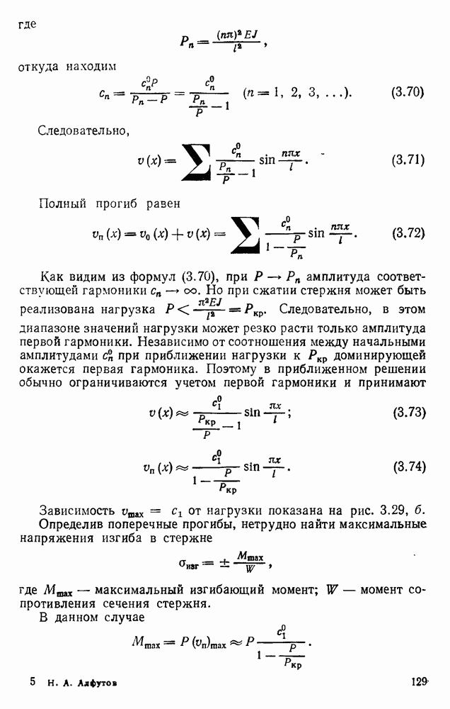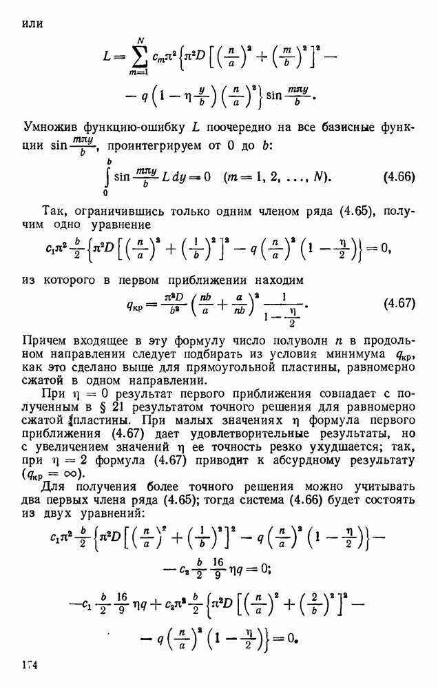 Причем входящее в эту формулу число полуволн При Для получения более точного решения можно учитывать два первых члена ряда (4.65); тогда система (4.66) будет состоять из двух уравнений: