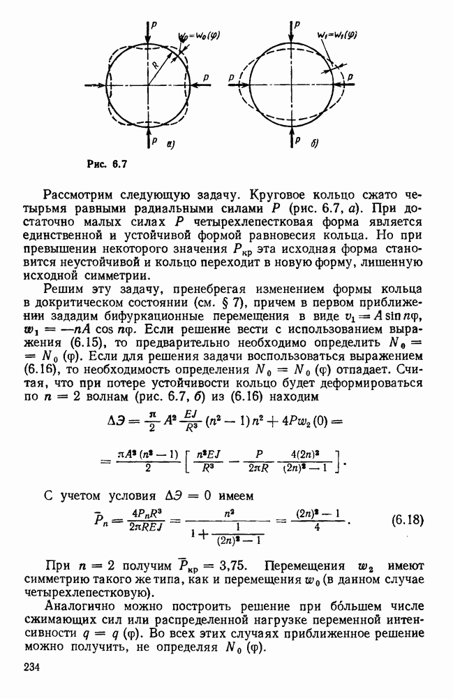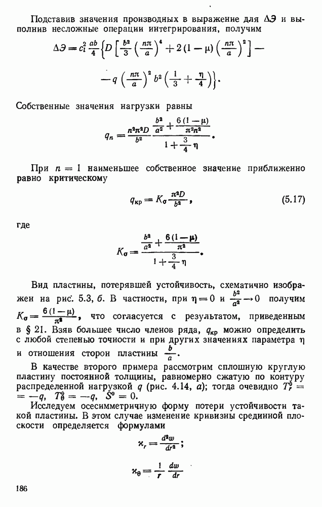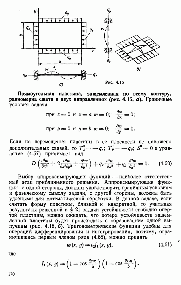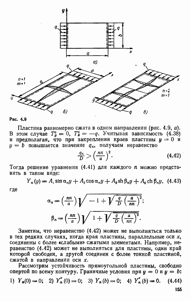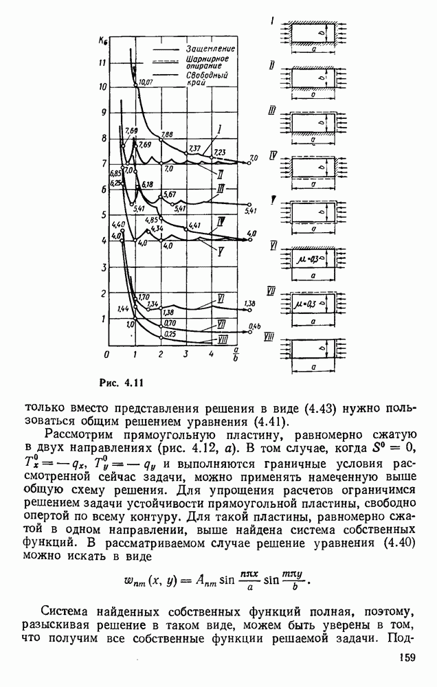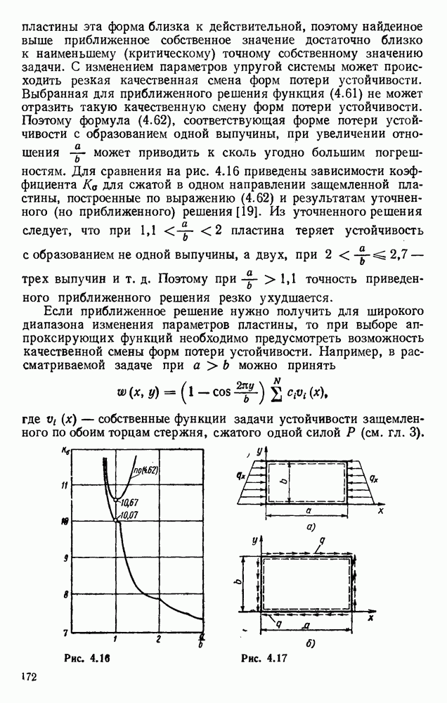 Рис. 4.17. Если приближенное решение нужно получить для широкого диапазона изменения параметров пластины, то при выборе аппроксирующих функций необходимо предусмотреть возможность качественной смены форм потери устойчивости. Например, в рассматриваемой задаче при