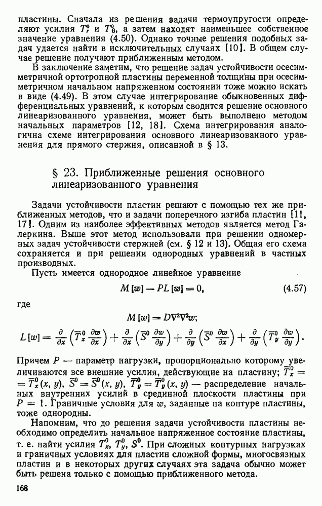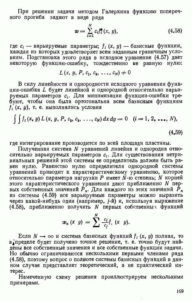 § 23. Приближенные решения основного линеаризованного уравненияЗадачи устойчивости пластин решают с помощью тех же приближенных методов, что и задачи поперечного изгиба пластин [11, 17]. Одним из наиболее эффективных методов является метод Галеркина. Выше этот метод использовали при решении одномерных задач устойчивости стержней (см. § 12 и 13). Общая его схема сохраняется и при решении однородных уравнений в частных производных. Пусть имеется однородное линейное уравнение
