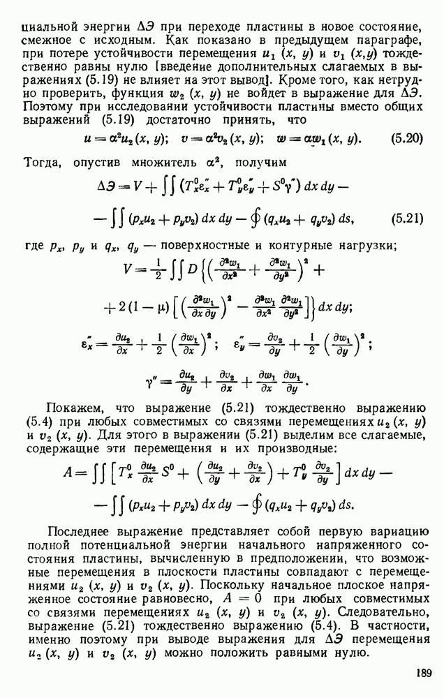 где интегрирование производится по всей площади пластины. Полученная система N уравнений линейна и однородна относительно варьируемых параметров