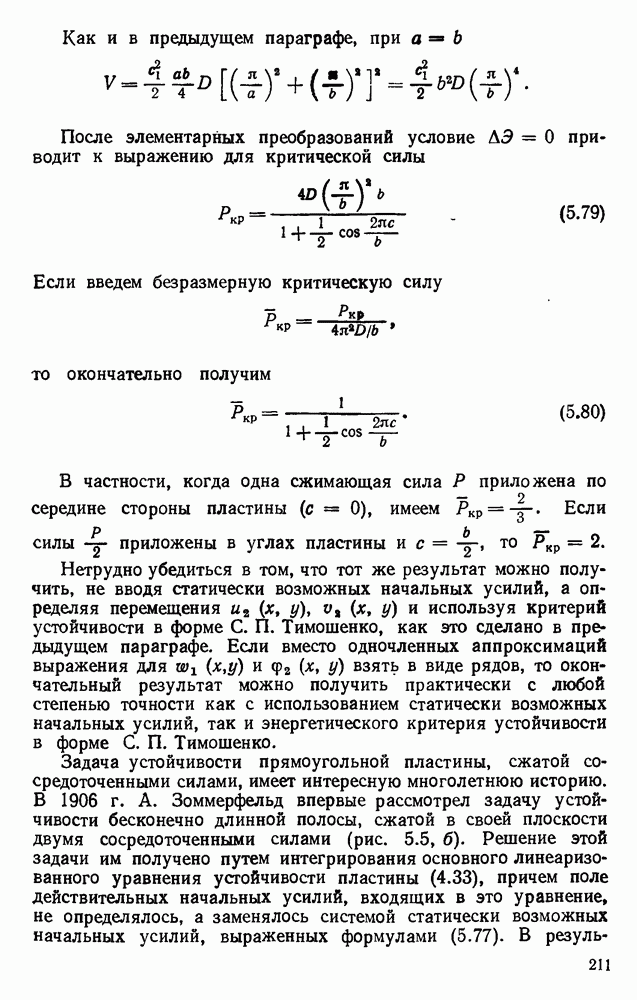 В частности, для квадратной пластины, сжатой в одном направлении, т. е. при