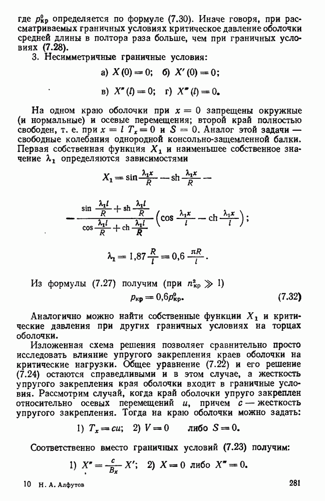 Входящее в это уравнение число полуволн в продольном направлении Отметим, что при Окончательный результат представляют в виде