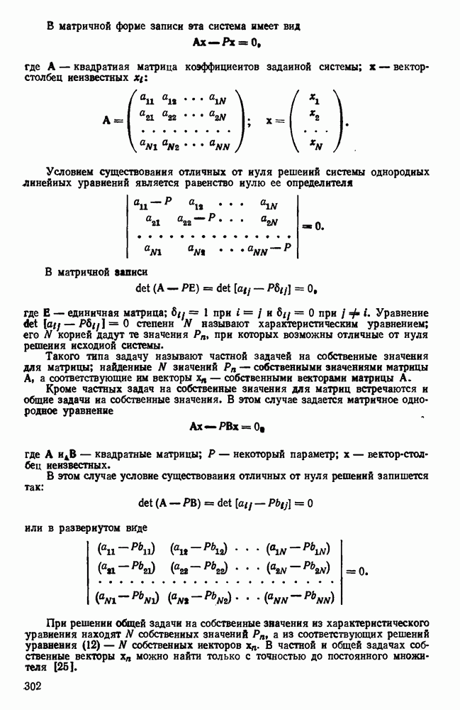 Приравнивая нулю определитель этой системы уравнений, получаем квадратное уравнение для нахождения