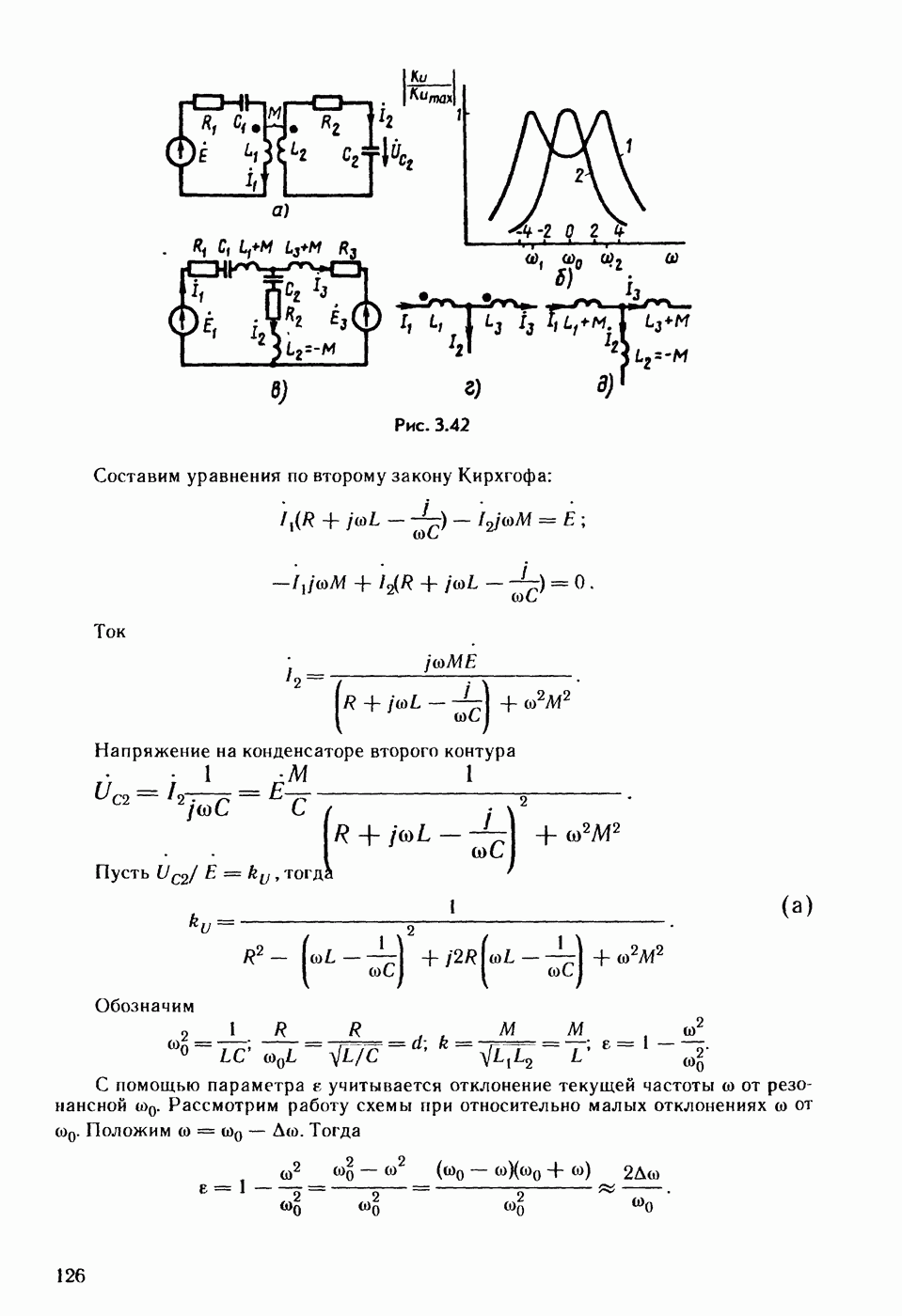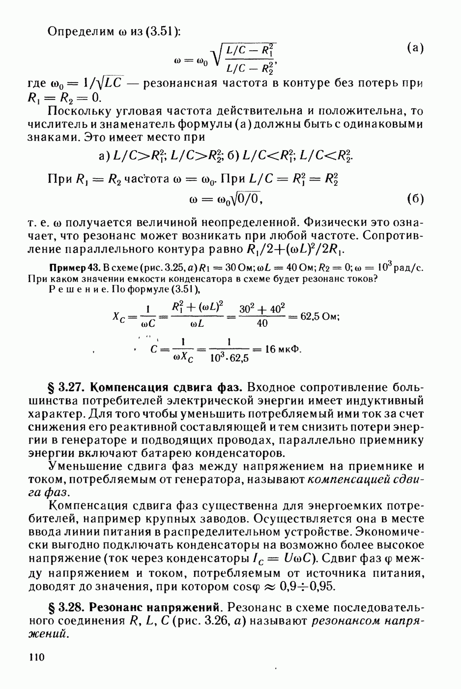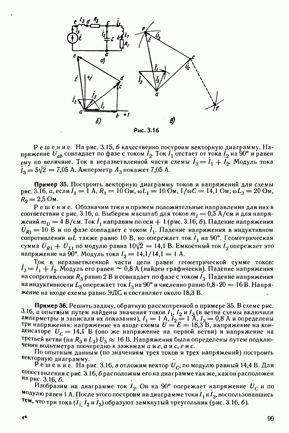 Произвольно задаемся некоторым током находим для него разность напряжений (напряжения на индуктивной катушке и на конденсаторе находятся в противофазе) и напряжение , результирующее напряжение U равно гипотенузе треугольника, построенного на катетах и (рис. 15.42, в).