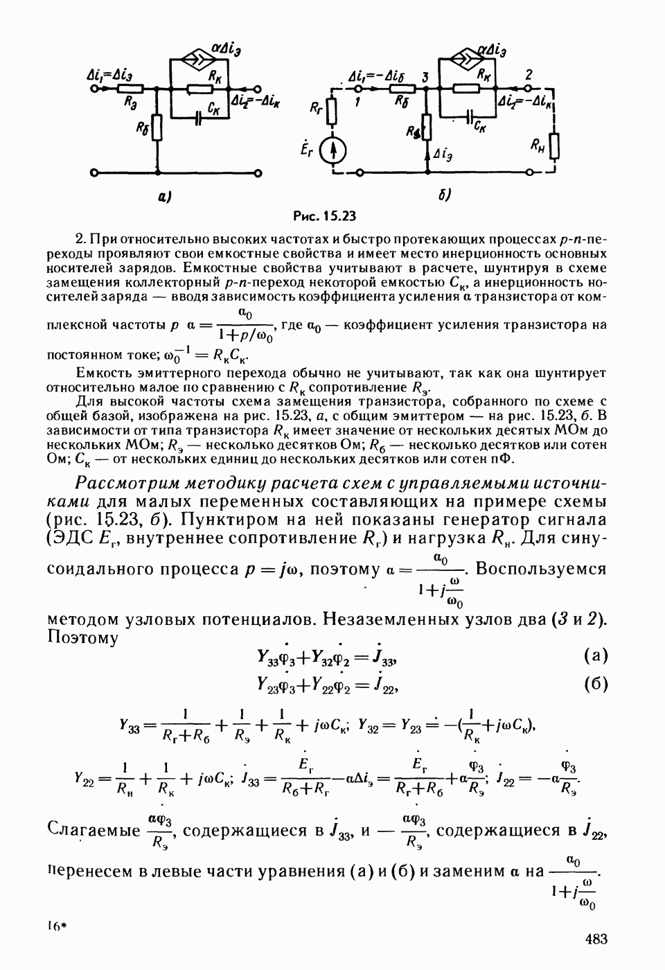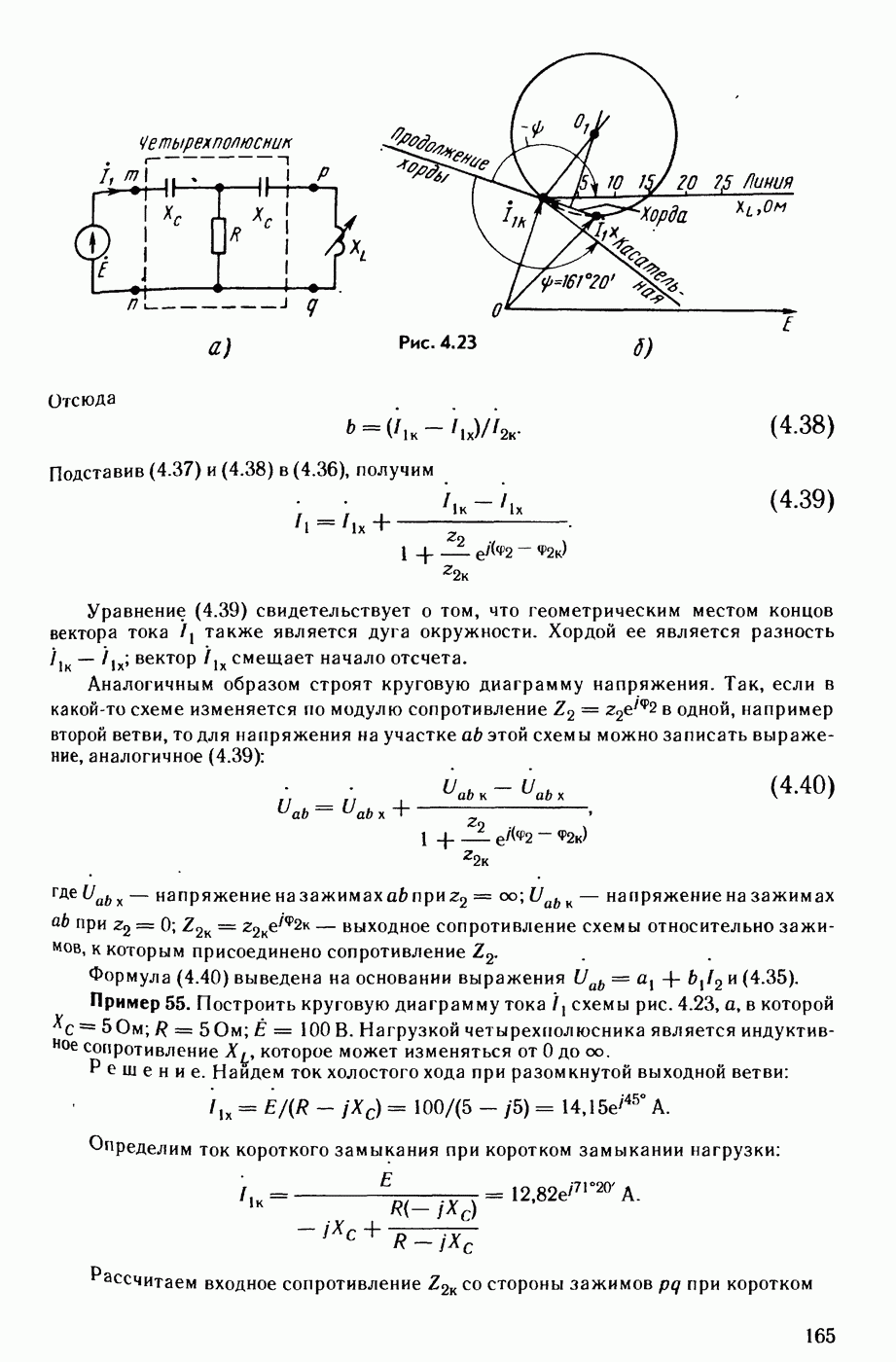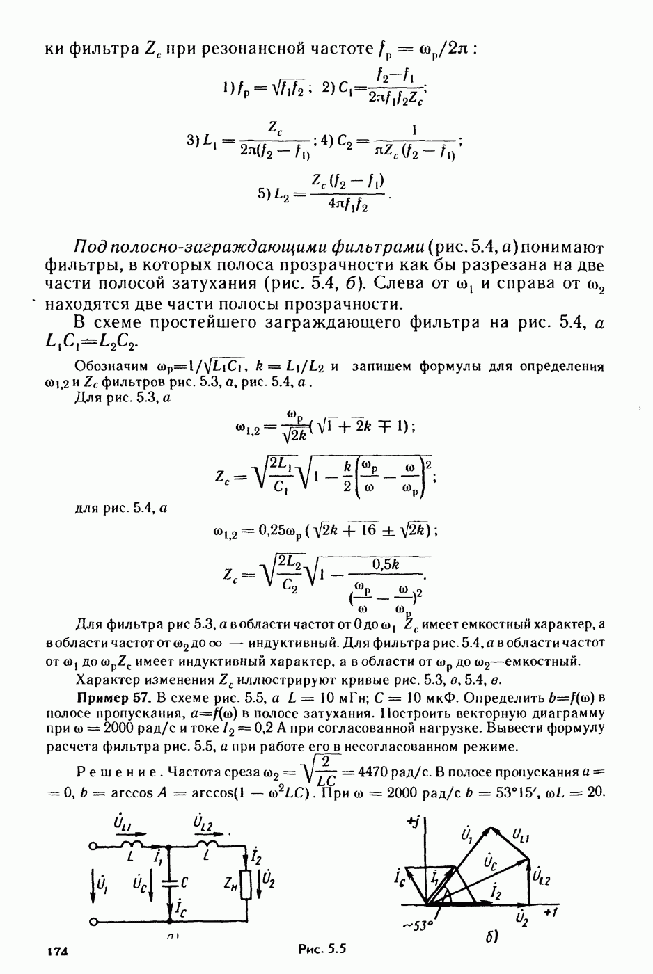 Произвольно задаемся некоторым током находим для него разность напряжений (напряжения на индуктивной катушке и на конденсаторе находятся в противофазе) и напряжение , результирующее напряжение U равно гипотенузе треугольника, построенного на катетах и (рис. 15.42, в).