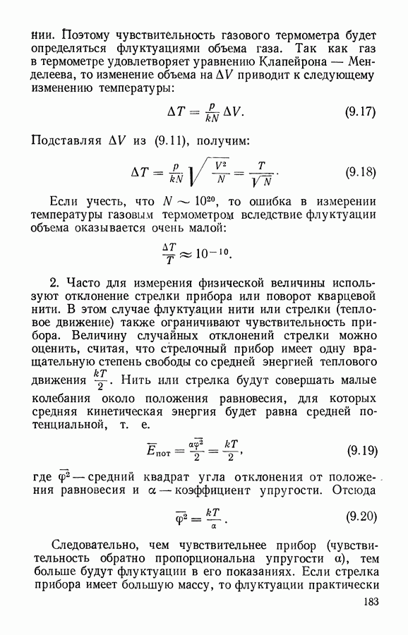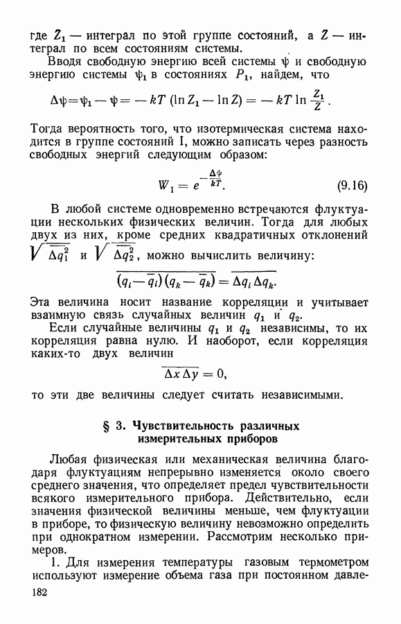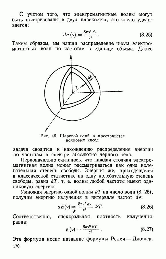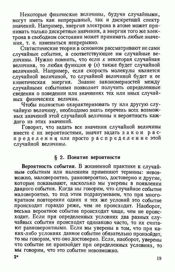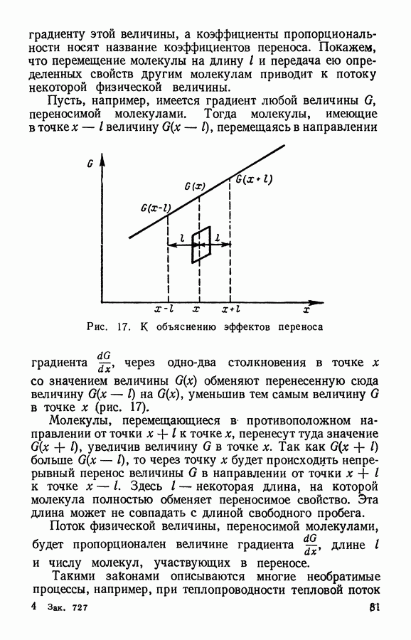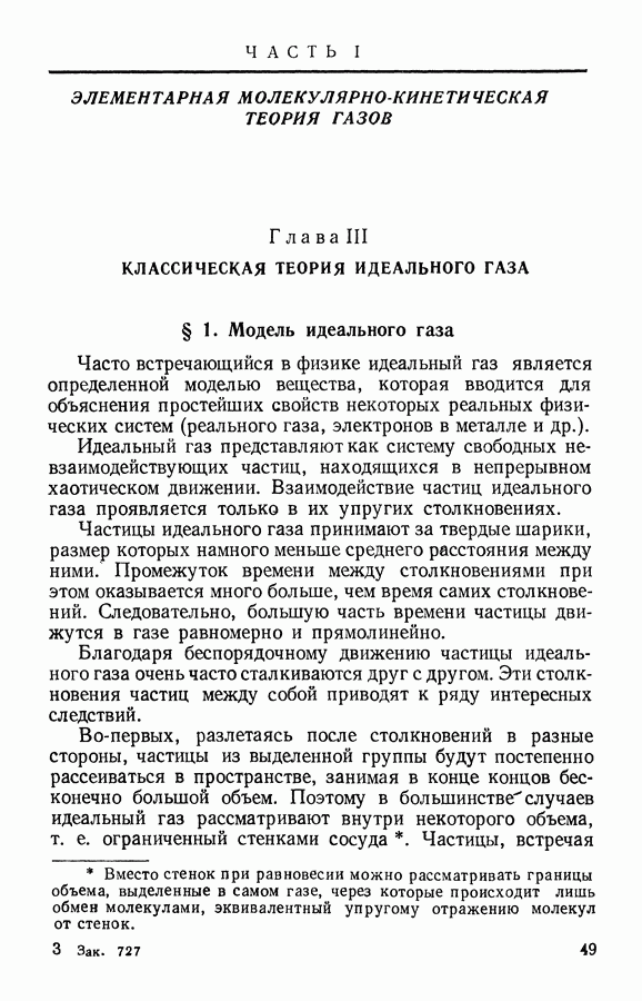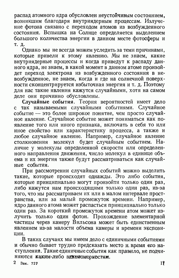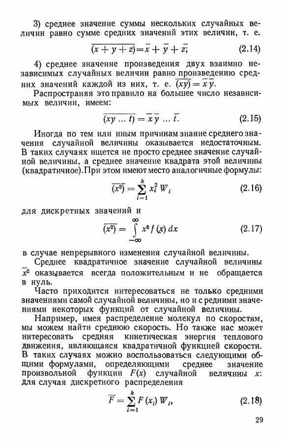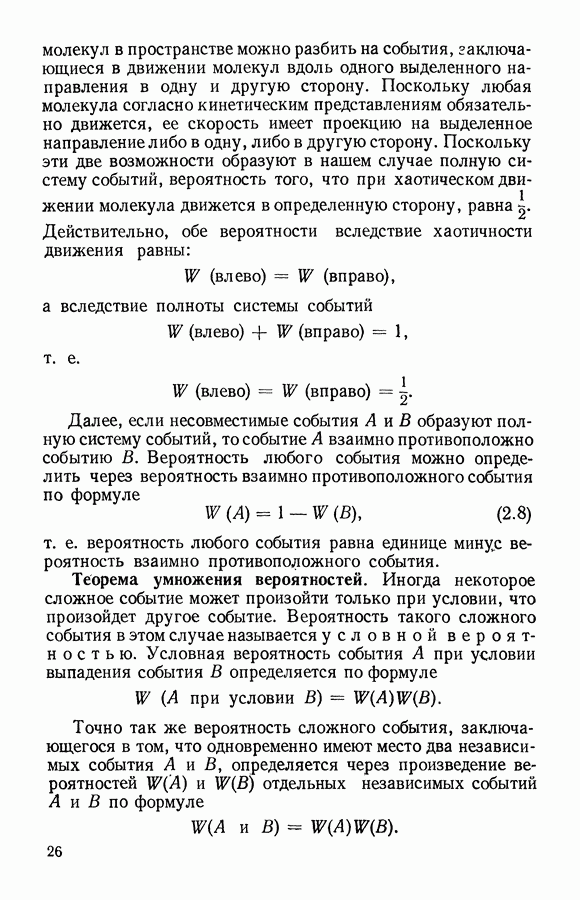 § 2. Распределение молекул газа по скоростямВ предыдущем параграфе показано, что молекулы Газа участвуют в непрерывном хаотическом движении. В разные моменты времени молекулы имеют разные скорости, которым соответствует разное число молекул, но газ в целом не изменяет своих термодинамических параметров, находится в равновесии. Найдем соответствующее равновесному состоянию распределение молекул газа по скоростям, т. е. такое распределение, которое устанавливается в газе произвольно и которое в дальнейшем не изменяется вследствие молекулярного движения и столкновений. Понятно, что в газе скорость одной молекулы при столкновениях будет меняться довольно разнообразно, так как молекула газа будет сталкиваться с другими молекулами газа, движущимися с разными скоростями. Такие столкновения будут случайными и скорость молекулы газа можно рассматривать как случайную величину. Будем искать распределение этой случайной величины исходя из картины движения молекул идеального газа. Во-первых, воспользуемся тем, что направления движения отдельных молекул газа во все стороны распределены равномерно. Другими словами, для молекул не существует какого-то избранного направления движения, и любое направление движения равновероятно. Вследствие изотропности движения можно искать либо распределение скоростей молекул вдоль некоторого направления, либо распределение молекул по абсолютной величине скорости. Оказывается, что эти распределения связаны друг с другом. Абсолютная величина скорости молекулы, а также проекция скорости на любую ось могут принимать непрерывные значения от нуля и практически до бесконечности Значит должна существовать непрерывная функция распределения скоростей