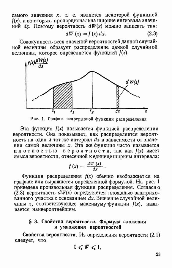 Рис. 10. Кривые максвелловского распределения по проекциям скорости  Это и есть искомое распределение по скоростям, выведенное Максвеллом в 1860 г. Вид максвелловского распределения (3.6) изображен на рис. 10 (кривая  В главе VI будет показано, что максвелловское распределение имеет место не только для идеального газа, но и для любых частиц, подчиняющихся классической статистике. Полученная функция (3.6) определяет вероятность того, что молекула имеет проекцию скорости  Однако для анализа молекулярного движения в газе можно интересоваться вероятностью того, что молекула имеет тот или иной модуль скорости независимо от направления движения. Чтобы найти распределение по абсолютной величине скорости, перейдем в пространстве скоростей к сферическим координатам (см. §6, гл. II) и перепишем для этого случая равенство (3.3):