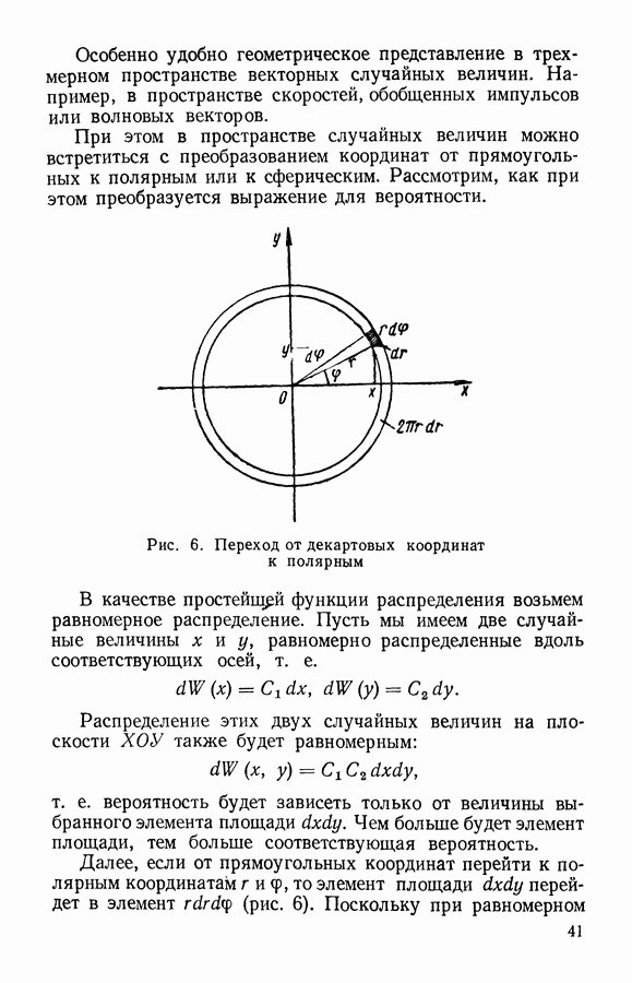 которые тоже будут случайными величинами. Это направление движения является произвольным и распределение скоростей вдоль этого направления  Теперь вероятность нахождений молекулы в злементё пространства скоростей