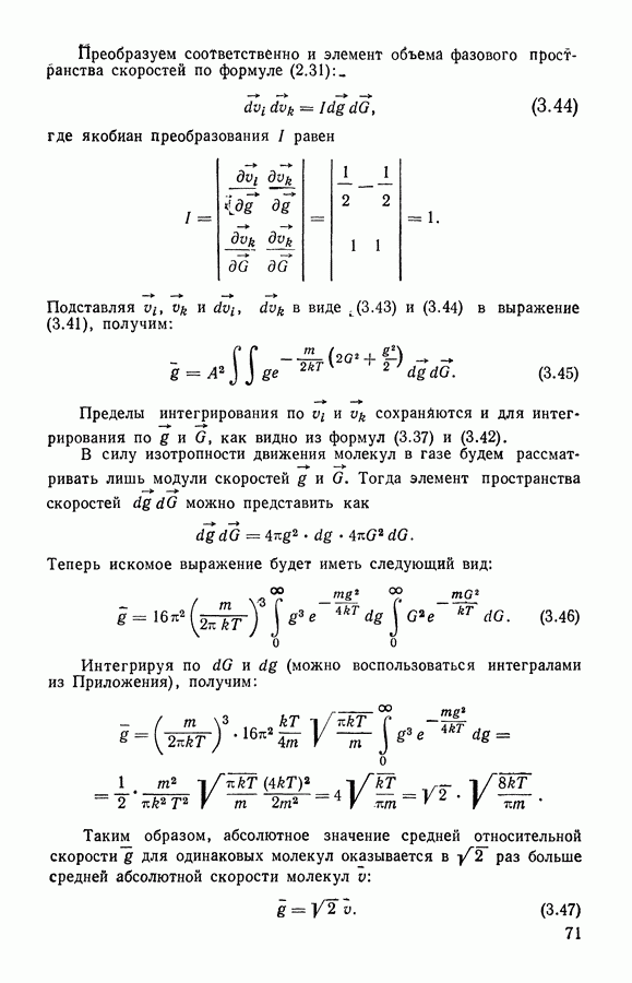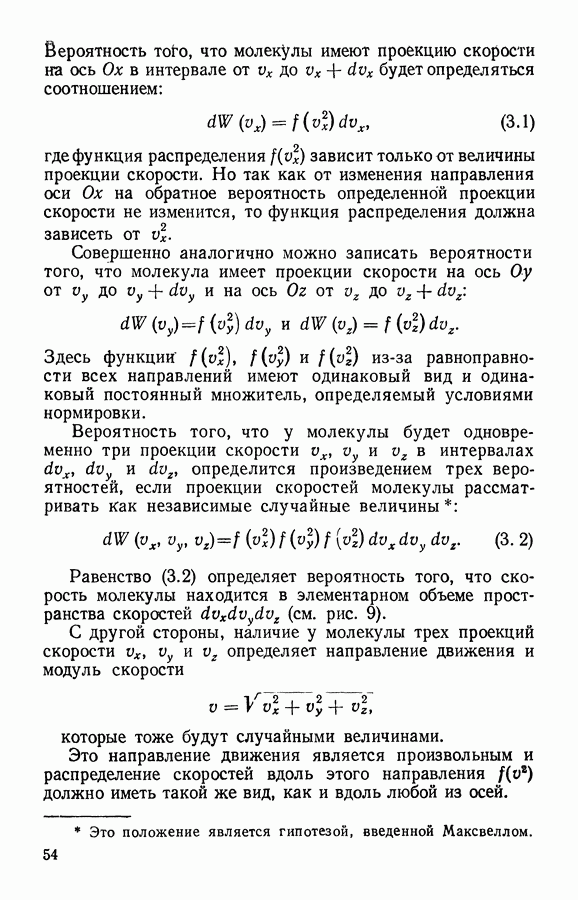 Равенство (3.2) определяет вероятность того, что скорость молекулы находится в элементарном объеме пространства скоростей  С другой стороны, наличие у молекулы трех проекций скорости
