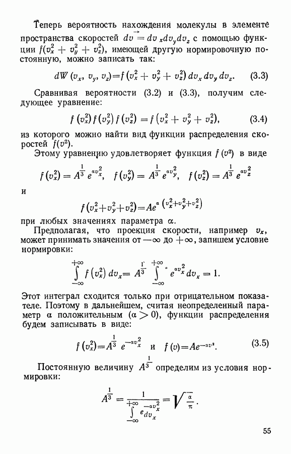 Здесь функции  Вероятность того, что у молекулы будет одновременно три проекции скорости
