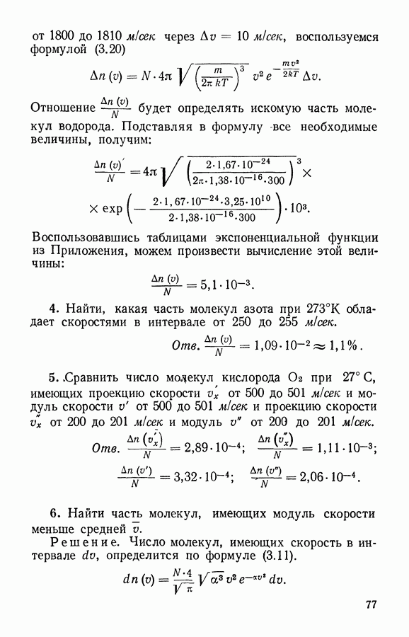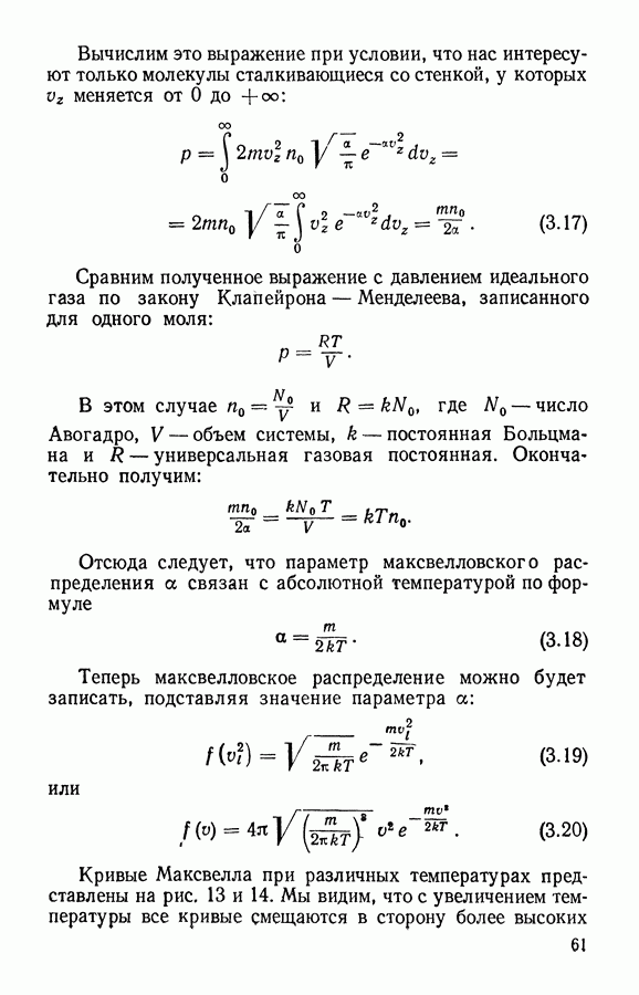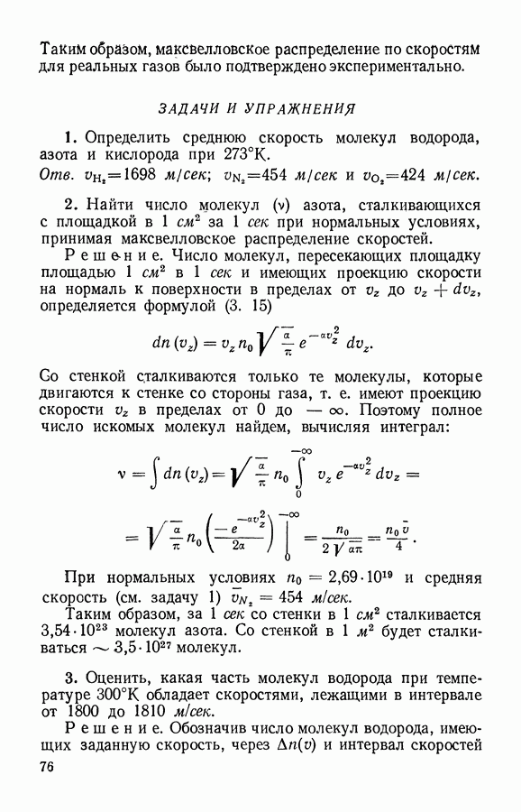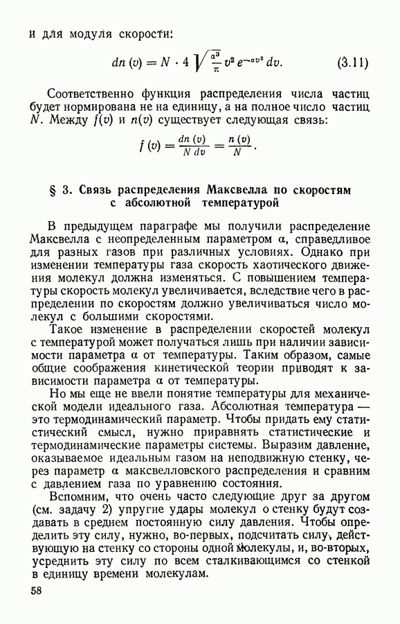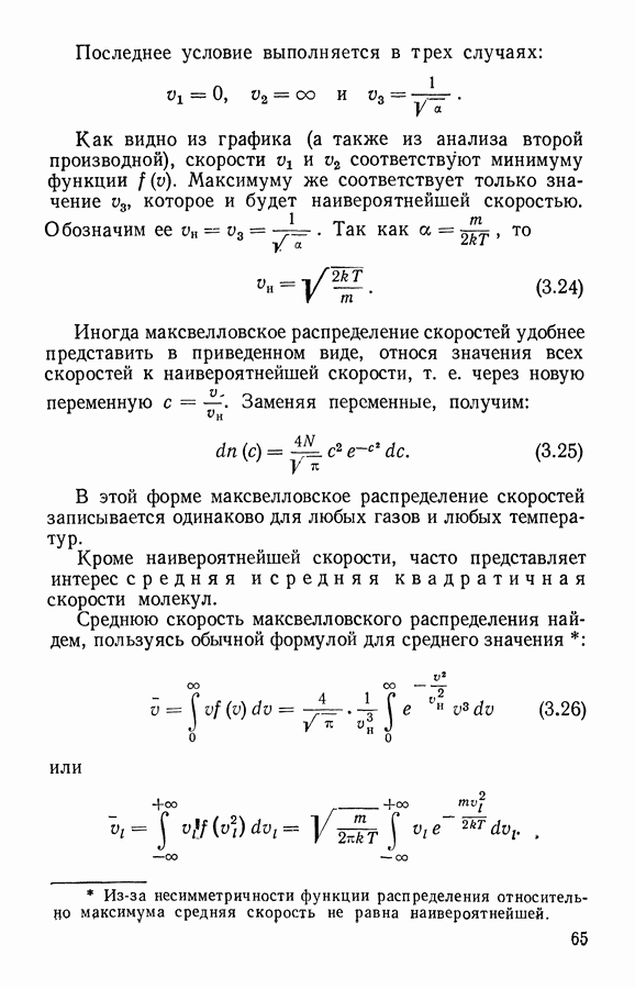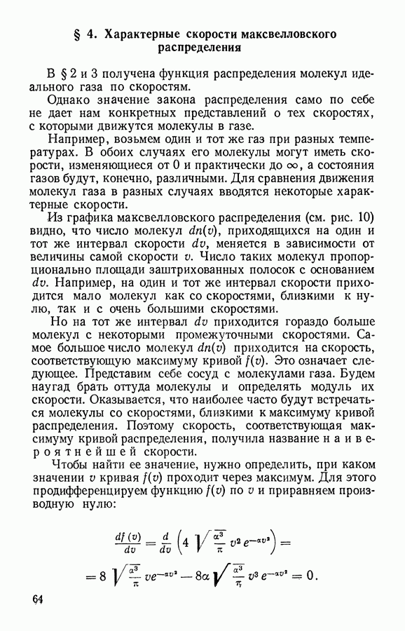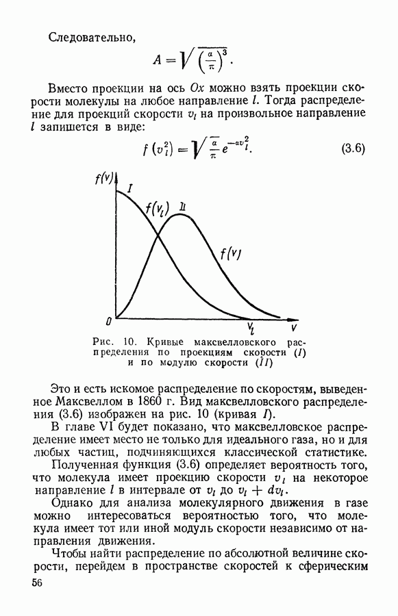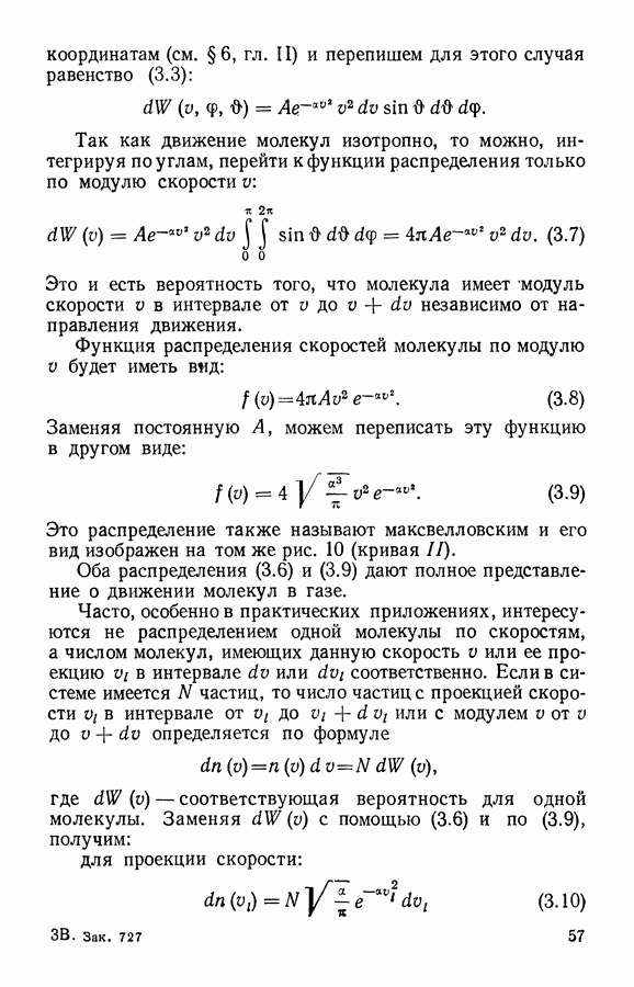 Это распределение также называют максвелловским и его вид изображен на том же рис. 10 (кривая II). Оба распределения (3.6) и (3.9) дают полное представление о движении молекул в газе. Часто, особенно в практических приложениях, интересуются не распределением одной молекулы по скоростям, а числом молекул, имеющих данную скорость