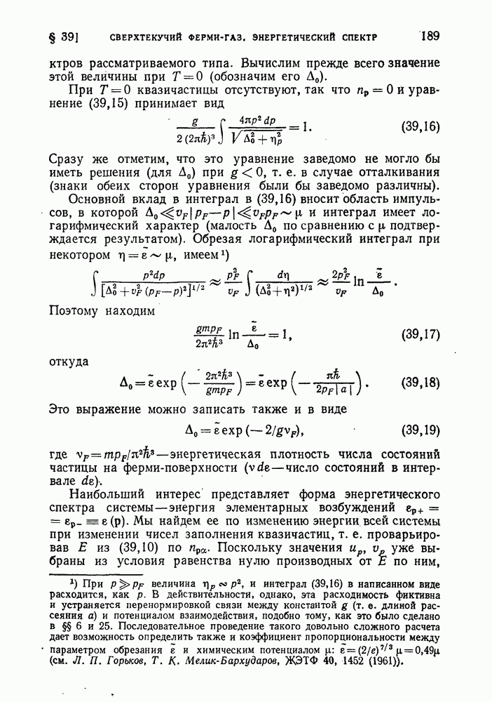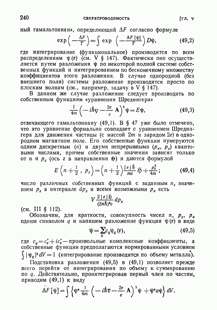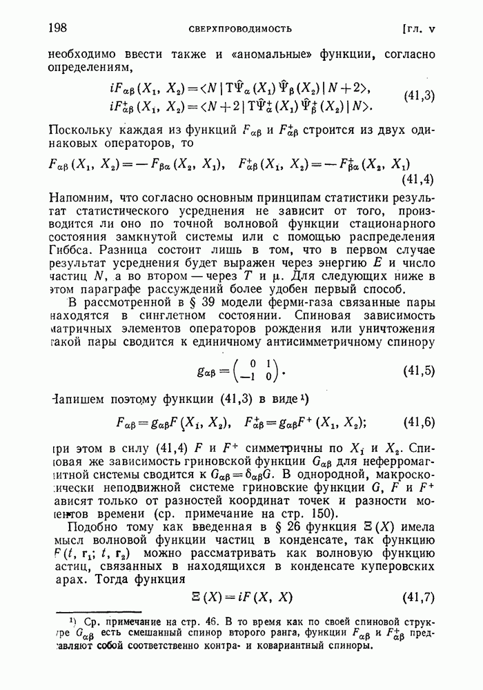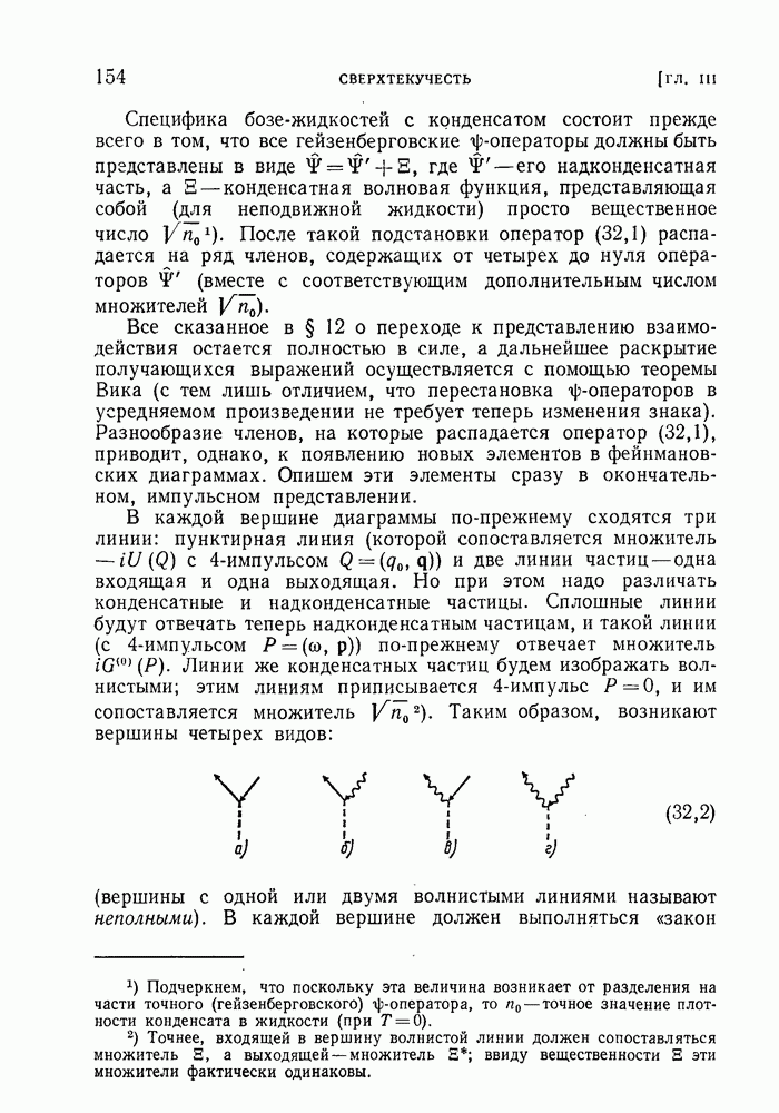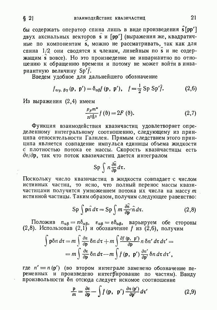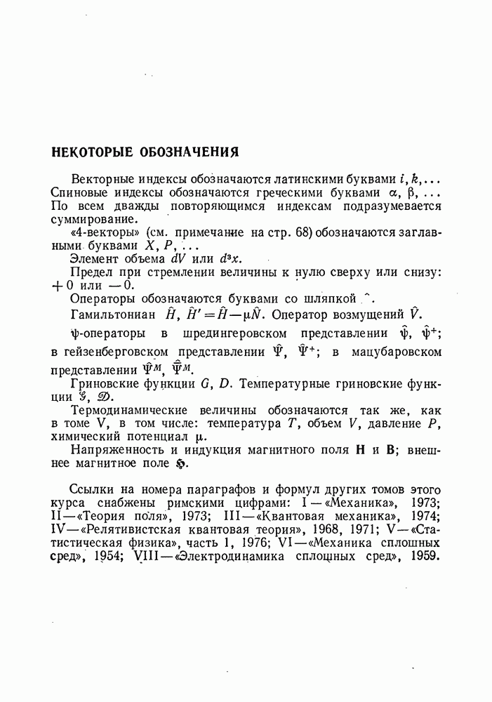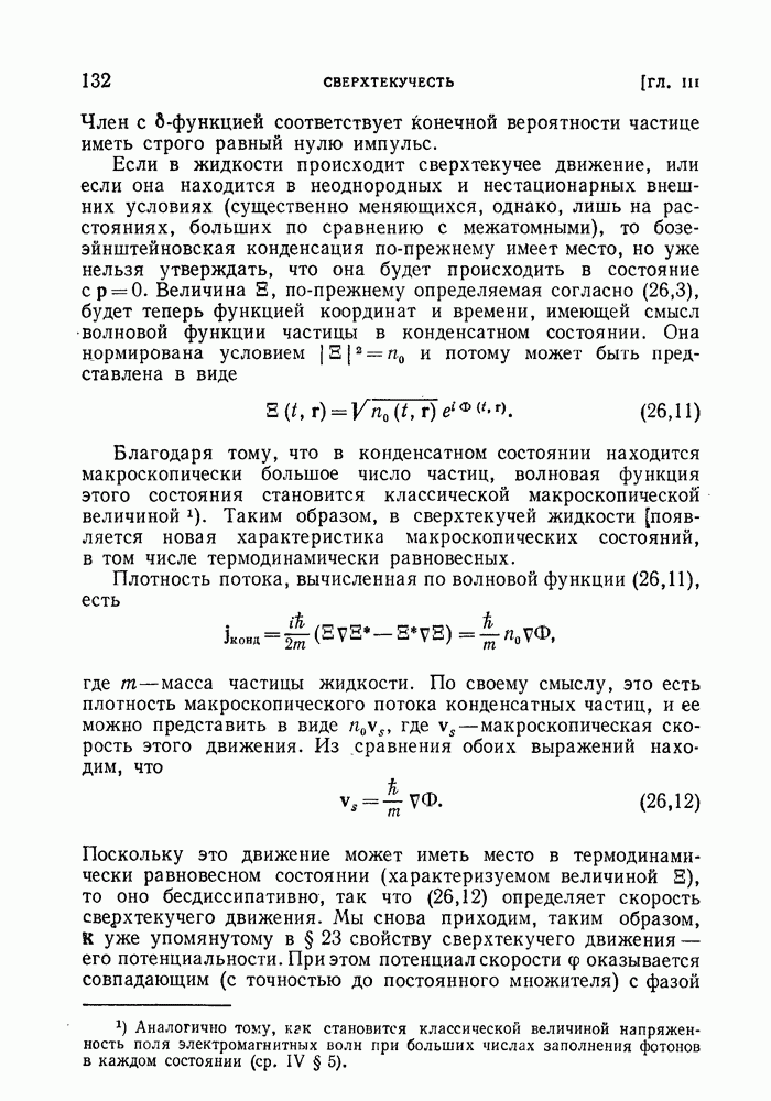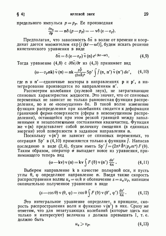 ГЛАВА III. СВЕРХТЕКУЧЕСТЬ§ 22. Элементарные возбуждения в квантовой бозе-жидкостиОбратимся теперь к изучению квантовых жидкостей с энергетическим спектром совершенно иного типа, который можно назвать бозевским. Этот спектр характеризуется тем, что элементарные возбуждения (отсутствующие в основном состоянии жидкости) могут появляться и исчезать поодиночке. Но момент импульса всякой квантовомеханической системы (в данном случае жидкости) может испытывать изменения лишь на целое число. Поэтому возникающие поодиночке элементарные возбуждения должны обладать целочисленным моментом и, следовательно, подчиняться статистике Бозе. Спектром такого типа должна во всяком случае обладать всякая квантовая жидкость, состоящая из частиц с целым спином (таков жидкий изотоп Напомним для сравнения, что в ферми-жидкости, при описании ее в терминах спектра элементарных возбуждений, отсутствующих в основном состоянии (см. конец § 1), эти возбуждения могут появляться или исчезать лишь парами. Именно с этим связана возможность элементарным возбуждениям в этом типе спектра иметь полуцелый спин. В квантовой бозе-жидкости элементарные возбуждения с малыми импульсами