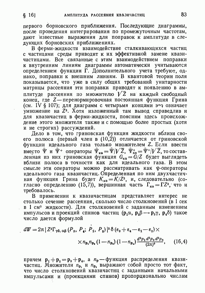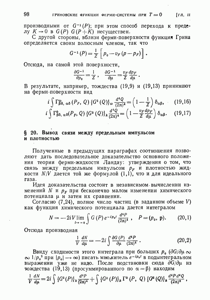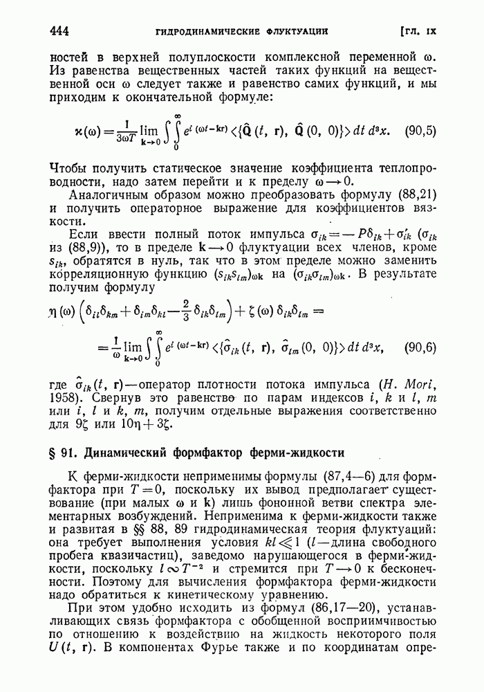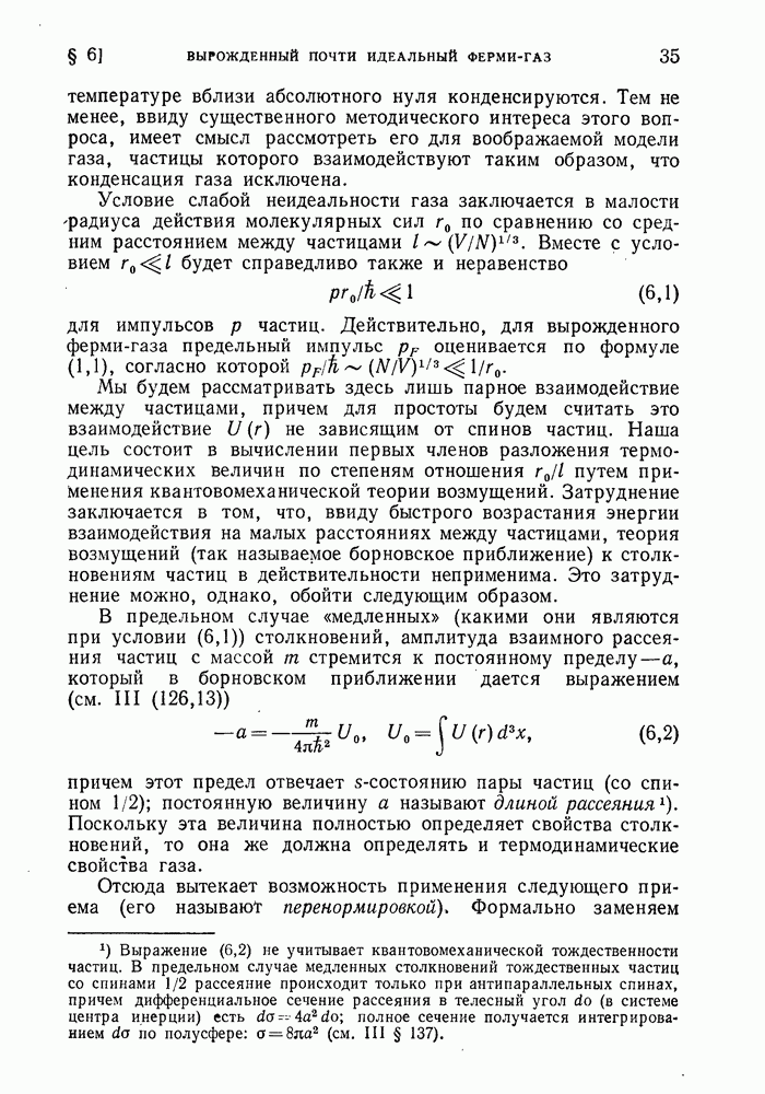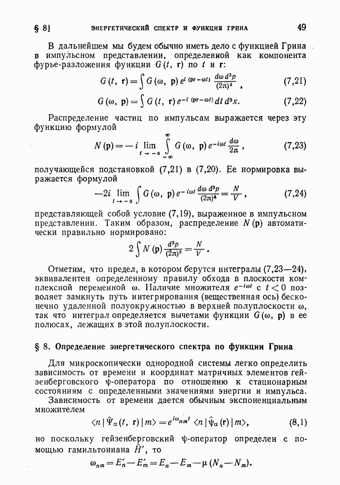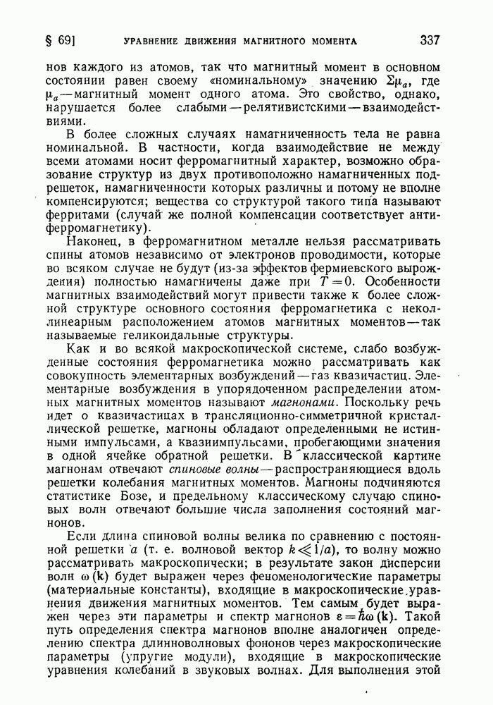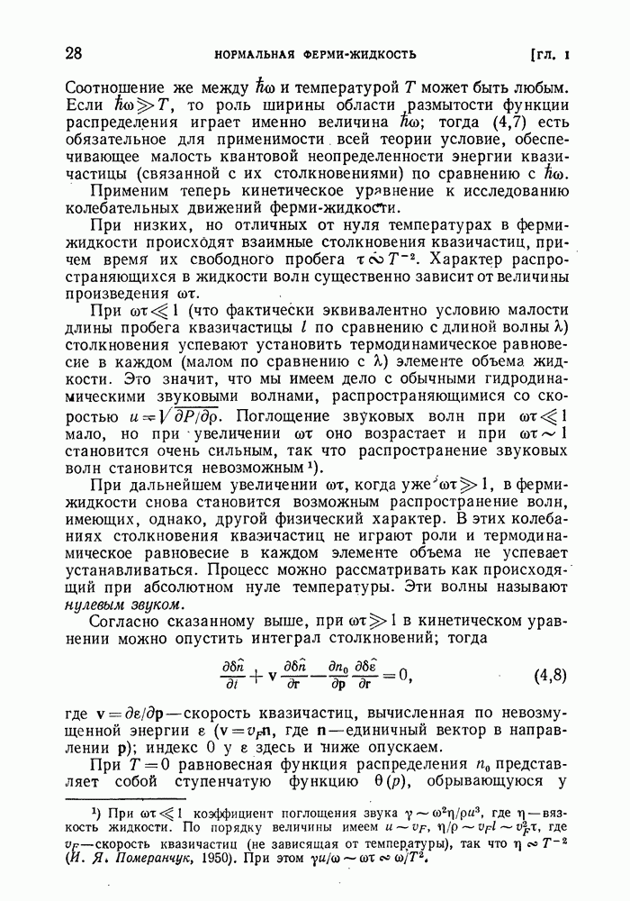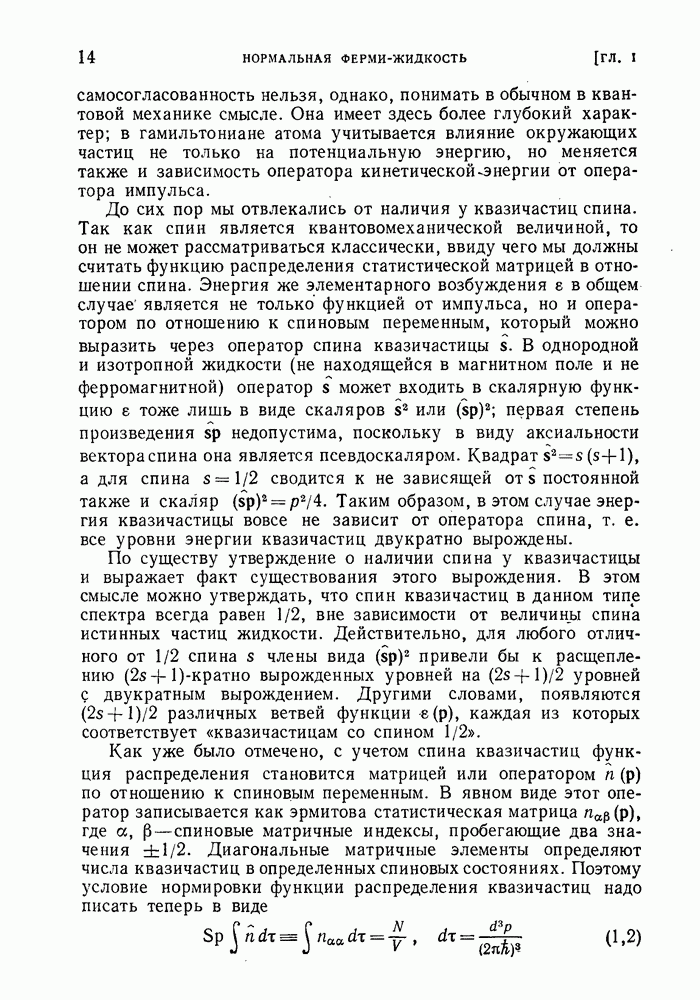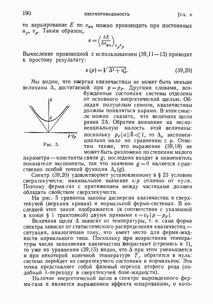 ГЛАВА III. СВЕРХТЕКУЧЕСТЬ§ 22. Элементарные возбуждения в квантовой бозе-жидкостиОбратимся теперь к изучению квантовых жидкостей с энергетическим спектром совершенно иного типа, который можно назвать бозевским. Этот спектр характеризуется тем, что элементарные возбуждения (отсутствующие в основном состоянии жидкости) могут появляться и исчезать поодиночке. Но момент импульса всякой квантовомеханической системы (в данном случае жидкости) может испытывать изменения лишь на целое число. Поэтому возникающие поодиночке элементарные возбуждения должны обладать целочисленным моментом и, следовательно, подчиняться статистике Бозе. Спектром такого типа должна во всяком случае обладать всякая квантовая жидкость, состоящая из частиц с целым спином (таков жидкий изотоп Напомним для сравнения, что в ферми-жидкости, при описании ее в терминах спектра элементарных возбуждений, отсутствующих в основном состоянии (см. конец § 1), эти возбуждения могут появляться или исчезать лишь парами. Именно с этим связана возможность элементарным возбуждениям в этом типе спектра иметь полуцелый спин. В квантовой бозе-жидкости элементарные возбуждения с малыми импульсами