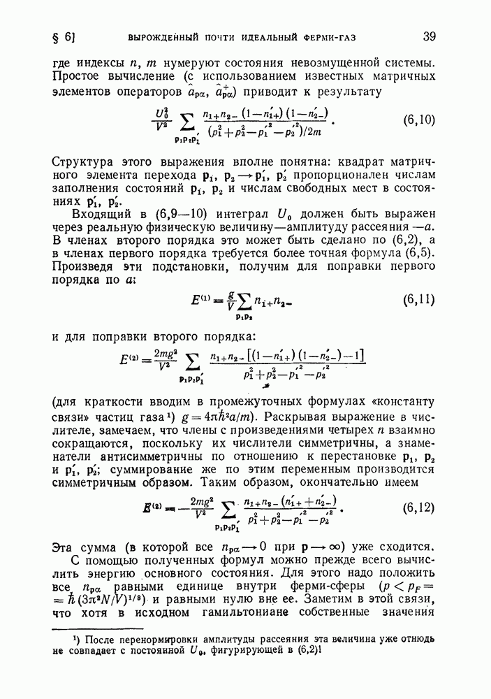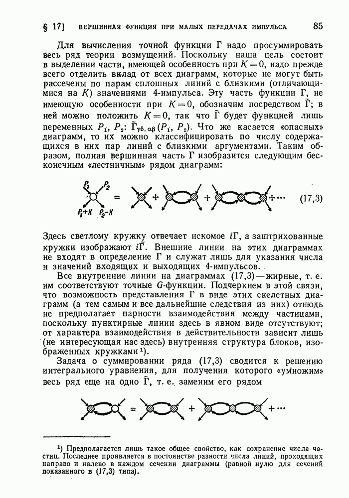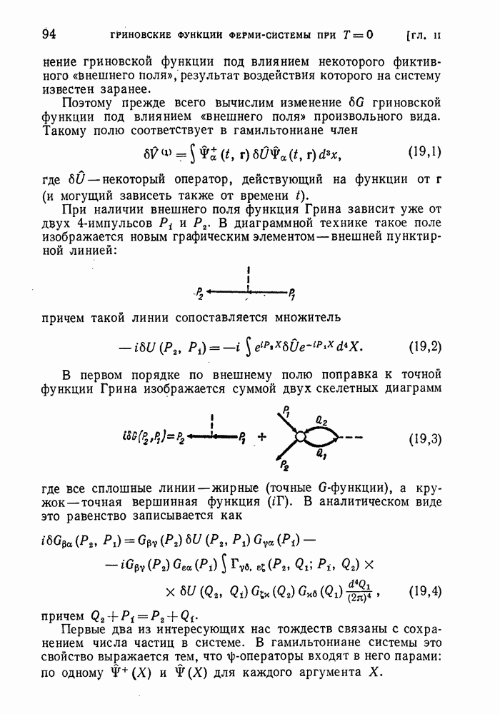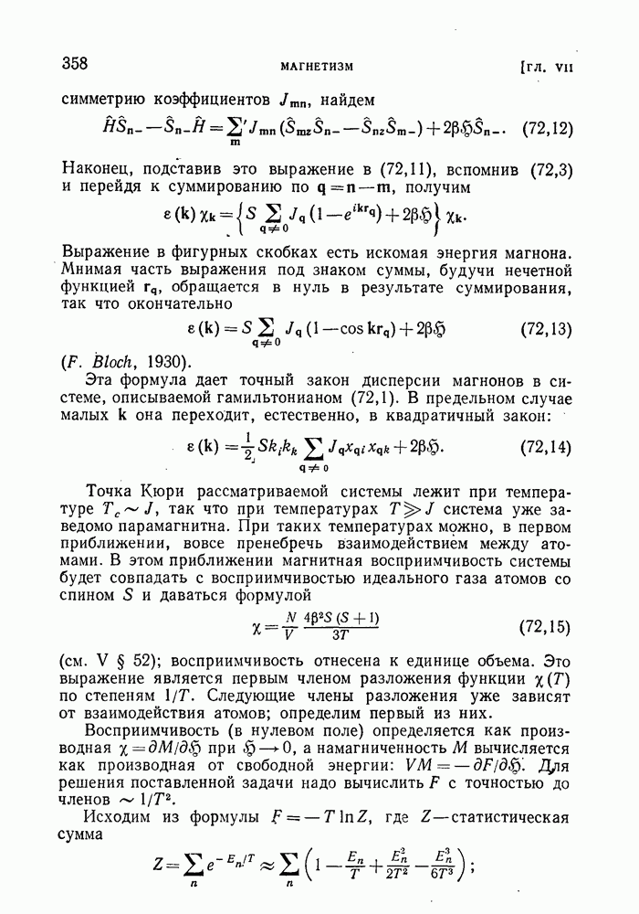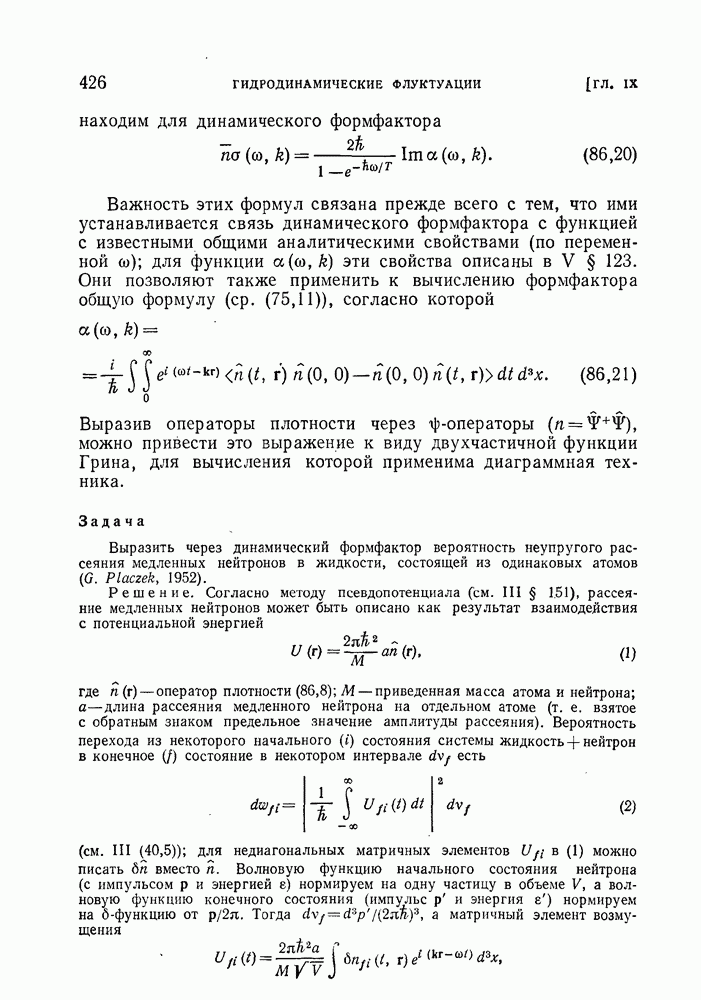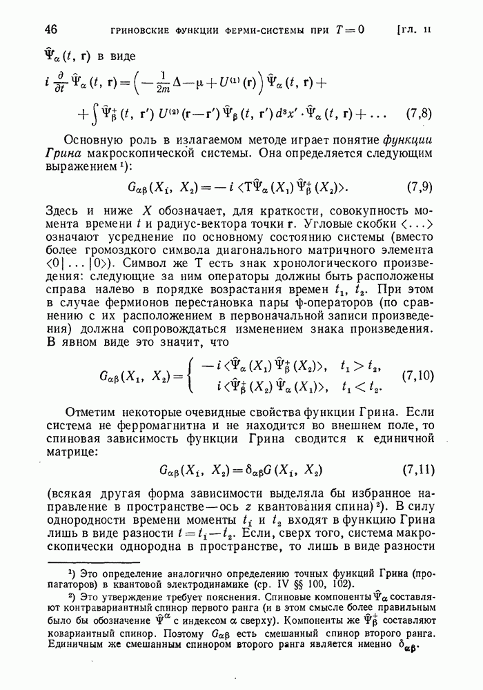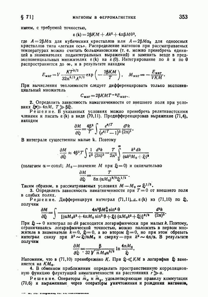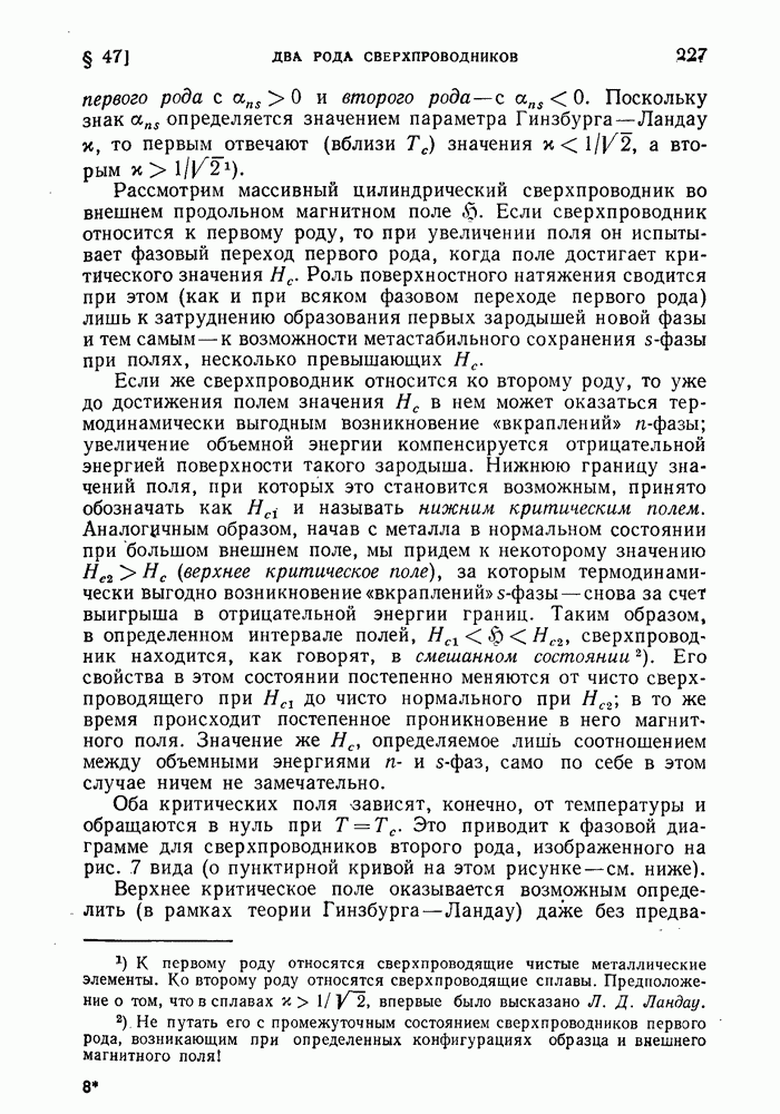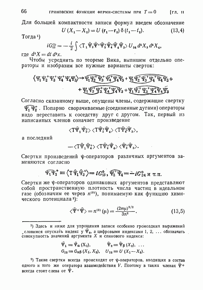ГЛАВА III. СВЕРХТЕКУЧЕСТЬ§ 22. Элементарные возбуждения в квантовой бозе-жидкостиОбратимся теперь к изучению квантовых жидкостей с энергетическим спектром совершенно иного типа, который можно назвать бозевским. Этот спектр характеризуется тем, что элементарные возбуждения (отсутствующие в основном состоянии жидкости) могут появляться и исчезать поодиночке. Но момент импульса всякой квантовомеханической системы (в данном случае жидкости) может испытывать изменения лишь на целое число. Поэтому возникающие поодиночке элементарные возбуждения должны обладать целочисленным моментом и, следовательно, подчиняться статистике Бозе. Спектром такого типа должна во всяком случае обладать всякая квантовая жидкость, состоящая из частиц с целым спином (таков жидкий изотоп Напомним для сравнения, что в ферми-жидкости, при описании ее в терминах спектра элементарных возбуждений, отсутствующих в основном состоянии (см. конец § 1), эти возбуждения могут появляться или исчезать лишь парами. Именно с этим связана возможность элементарным возбуждениям в этом типе спектра иметь полуцелый спин. В квантовой бозе-жидкости элементарные возбуждения с малыми импульсами