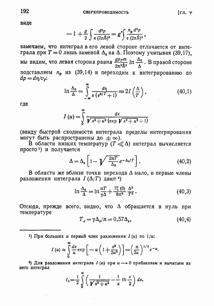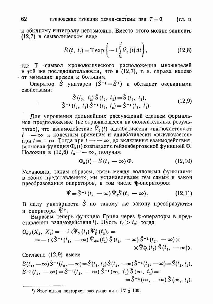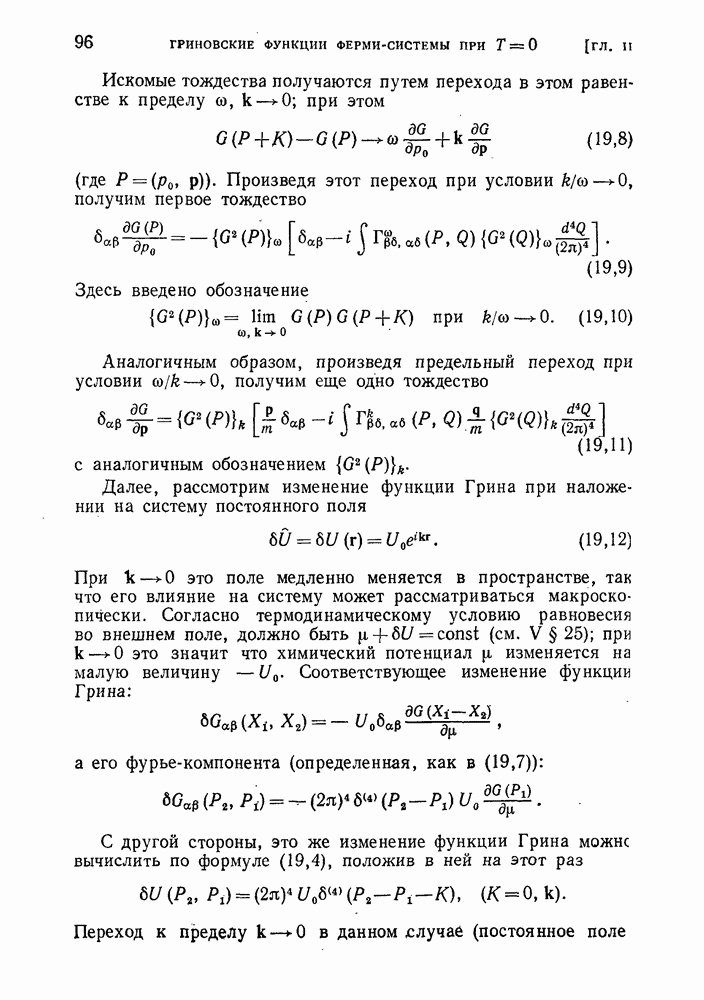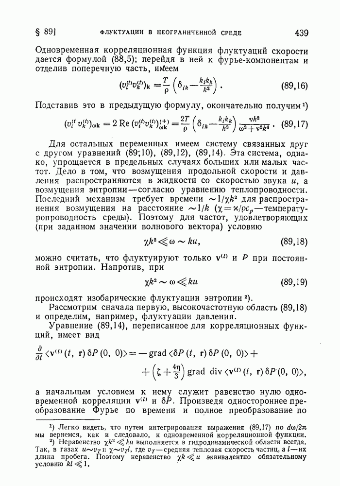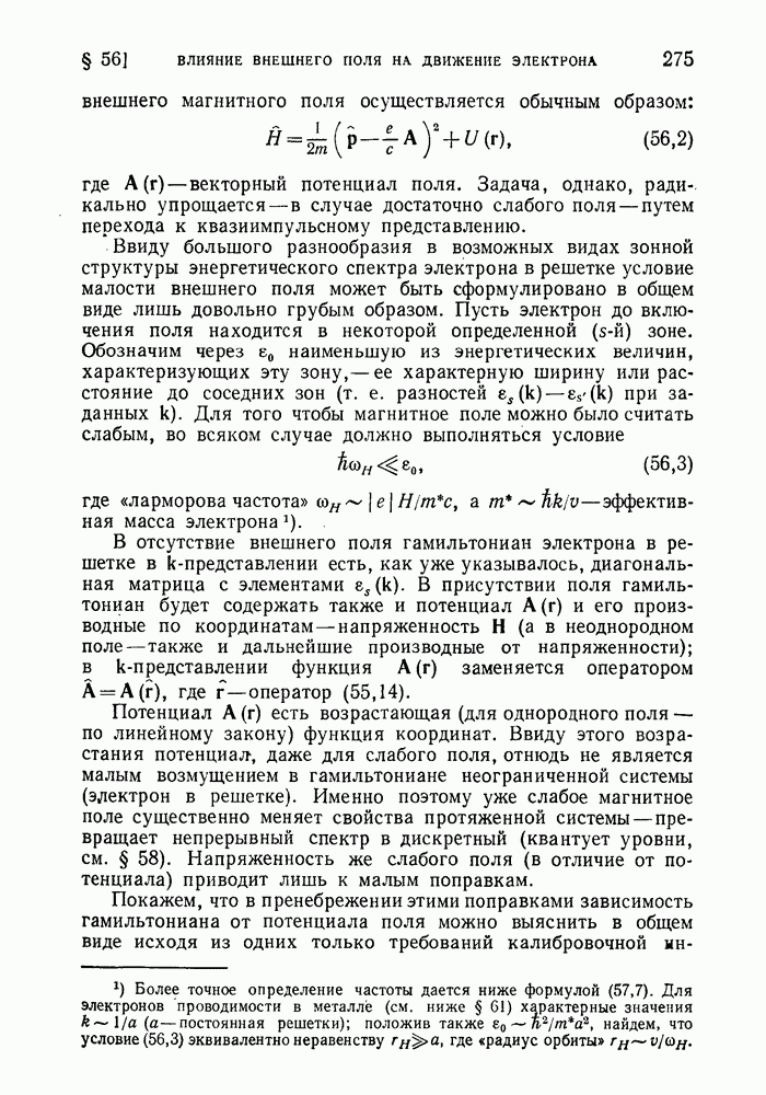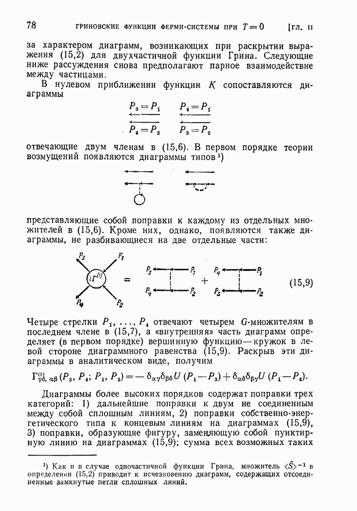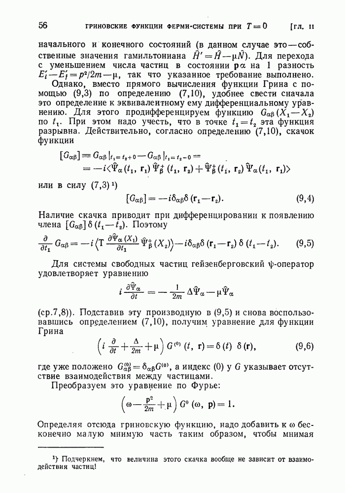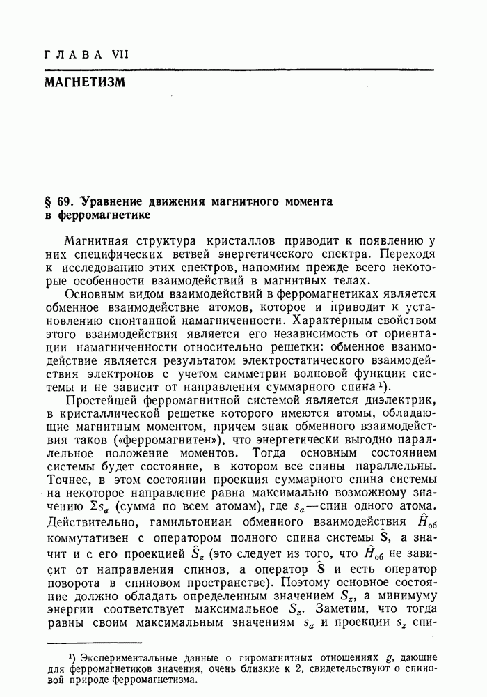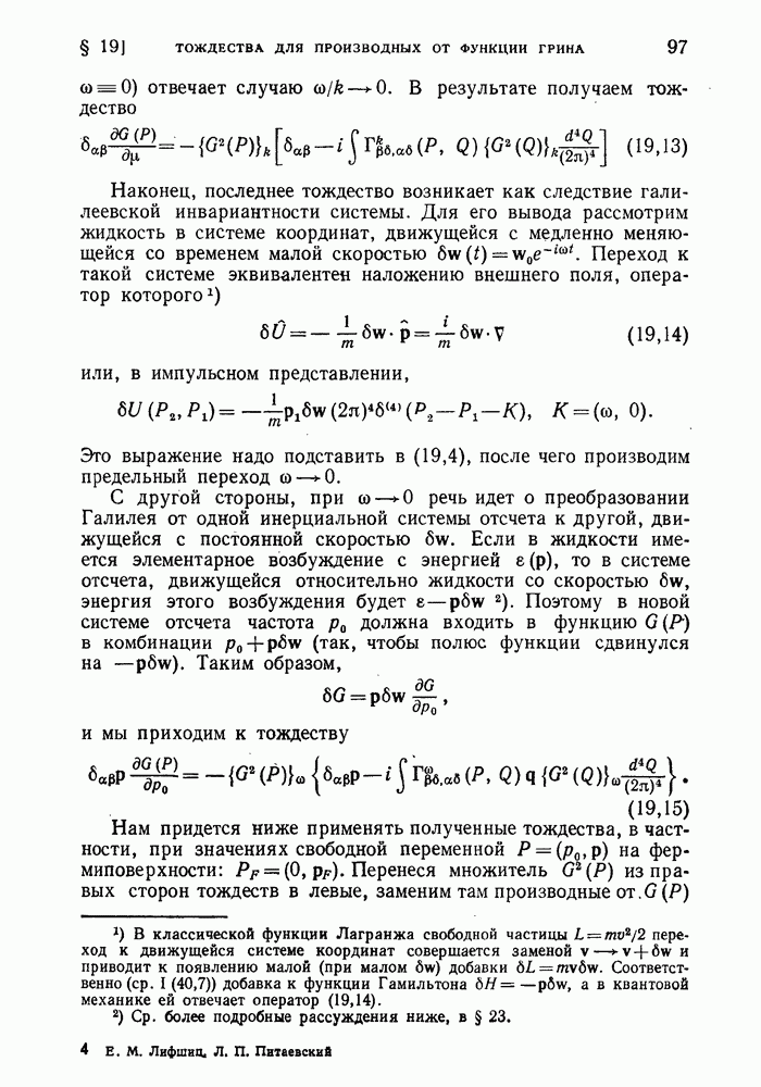 ГЛАВА III. СВЕРХТЕКУЧЕСТЬ§ 22. Элементарные возбуждения в квантовой бозе-жидкостиОбратимся теперь к изучению квантовых жидкостей с энергетическим спектром совершенно иного типа, который можно назвать бозевским. Этот спектр характеризуется тем, что элементарные возбуждения (отсутствующие в основном состоянии жидкости) могут появляться и исчезать поодиночке. Но момент импульса всякой квантовомеханической системы (в данном случае жидкости) может испытывать изменения лишь на целое число. Поэтому возникающие поодиночке элементарные возбуждения должны обладать целочисленным моментом и, следовательно, подчиняться статистике Бозе. Спектром такого типа должна во всяком случае обладать всякая квантовая жидкость, состоящая из частиц с целым спином (таков жидкий изотоп Напомним для сравнения, что в ферми-жидкости, при описании ее в терминах спектра элементарных возбуждений, отсутствующих в основном состоянии (см. конец § 1), эти возбуждения могут появляться или исчезать лишь парами. Именно с этим связана возможность элементарным возбуждениям в этом типе спектра иметь полуцелый спин. В квантовой бозе-жидкости элементарные возбуждения с малыми импульсами