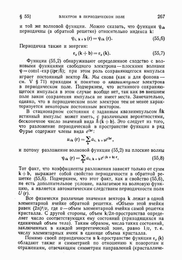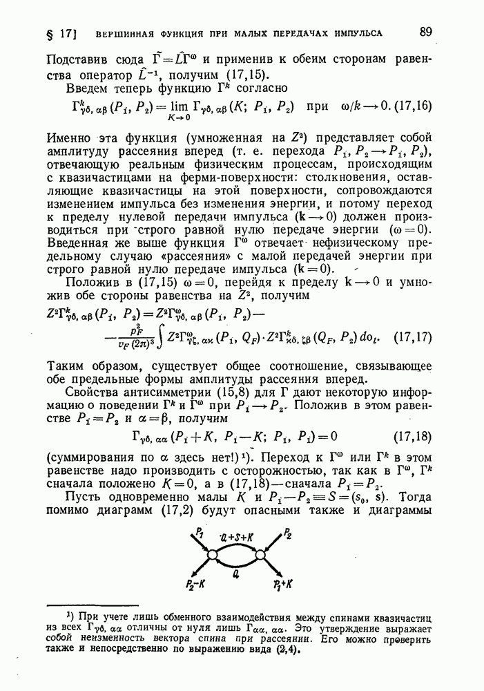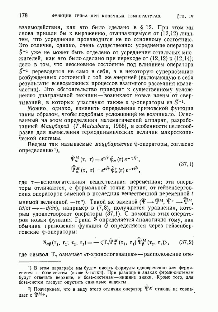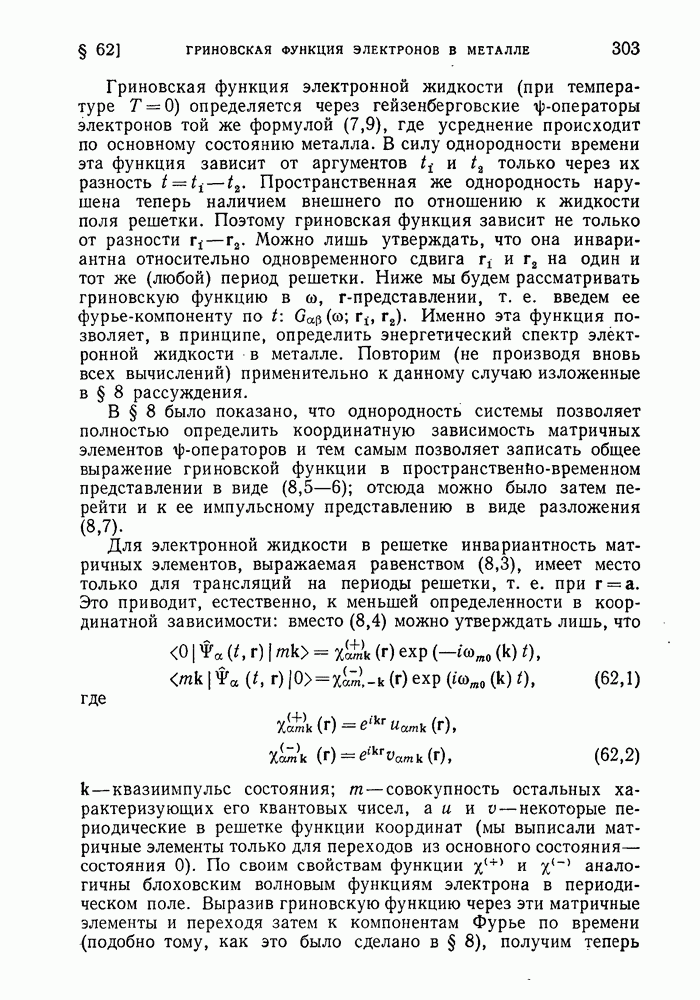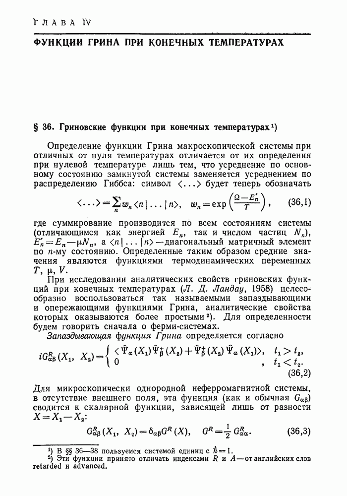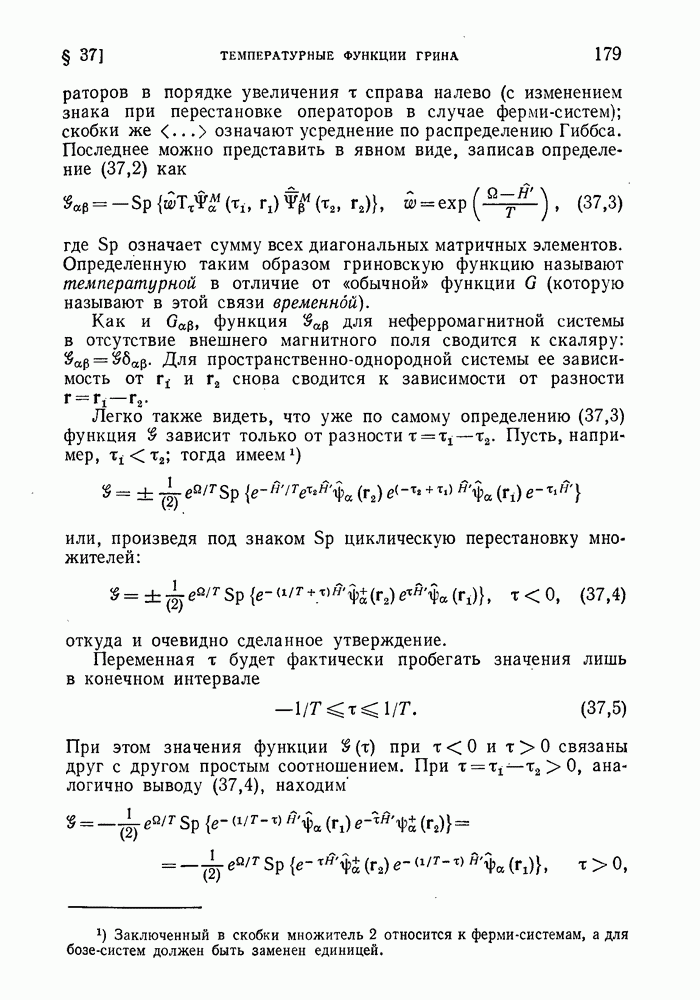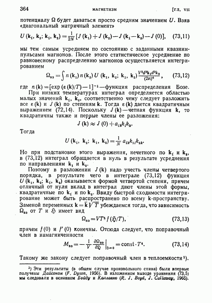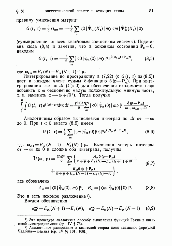 ГЛАВА III. СВЕРХТЕКУЧЕСТЬ§ 22. Элементарные возбуждения в квантовой бозе-жидкостиОбратимся теперь к изучению квантовых жидкостей с энергетическим спектром совершенно иного типа, который можно назвать бозевским. Этот спектр характеризуется тем, что элементарные возбуждения (отсутствующие в основном состоянии жидкости) могут появляться и исчезать поодиночке. Но момент импульса всякой квантовомеханической системы (в данном случае жидкости) может испытывать изменения лишь на целое число. Поэтому возникающие поодиночке элементарные возбуждения должны обладать целочисленным моментом и, следовательно, подчиняться статистике Бозе. Спектром такого типа должна во всяком случае обладать всякая квантовая жидкость, состоящая из частиц с целым спином (таков жидкий изотоп Напомним для сравнения, что в ферми-жидкости, при описании ее в терминах спектра элементарных возбуждений, отсутствующих в основном состоянии (см. конец § 1), эти возбуждения могут появляться или исчезать лишь парами. Именно с этим связана возможность элементарным возбуждениям в этом типе спектра иметь полуцелый спин. В квантовой бозе-жидкости элементарные возбуждения с малыми импульсами