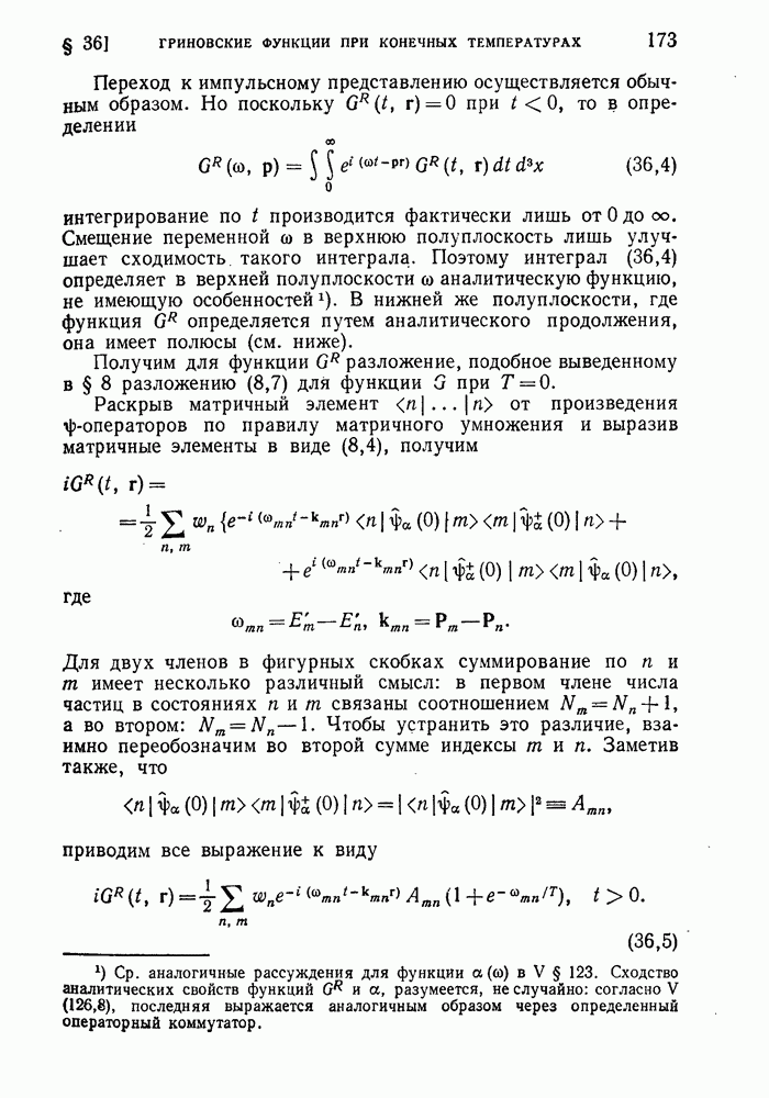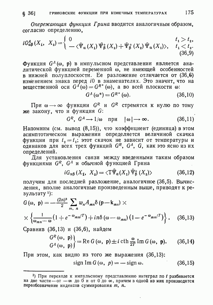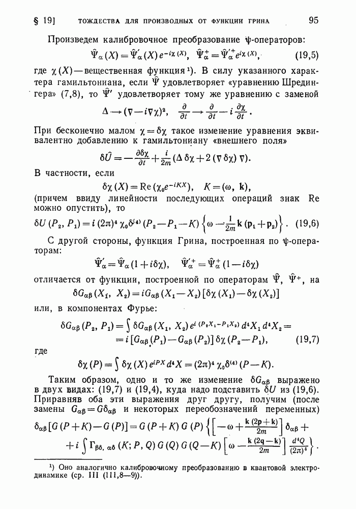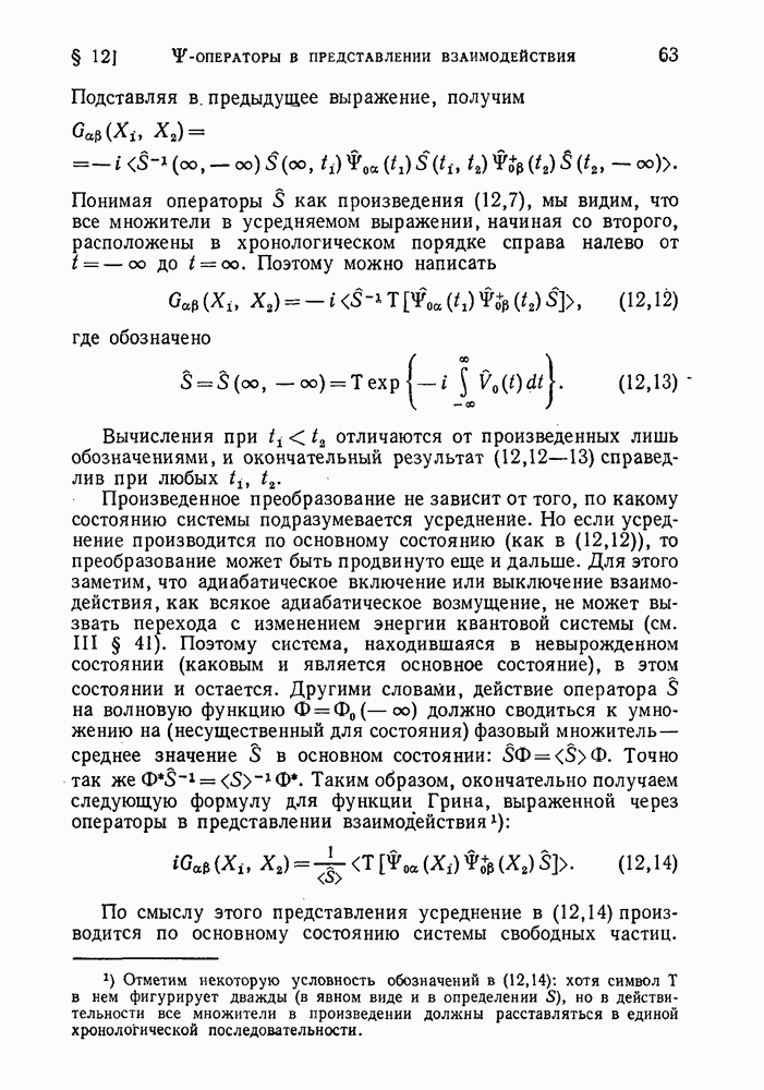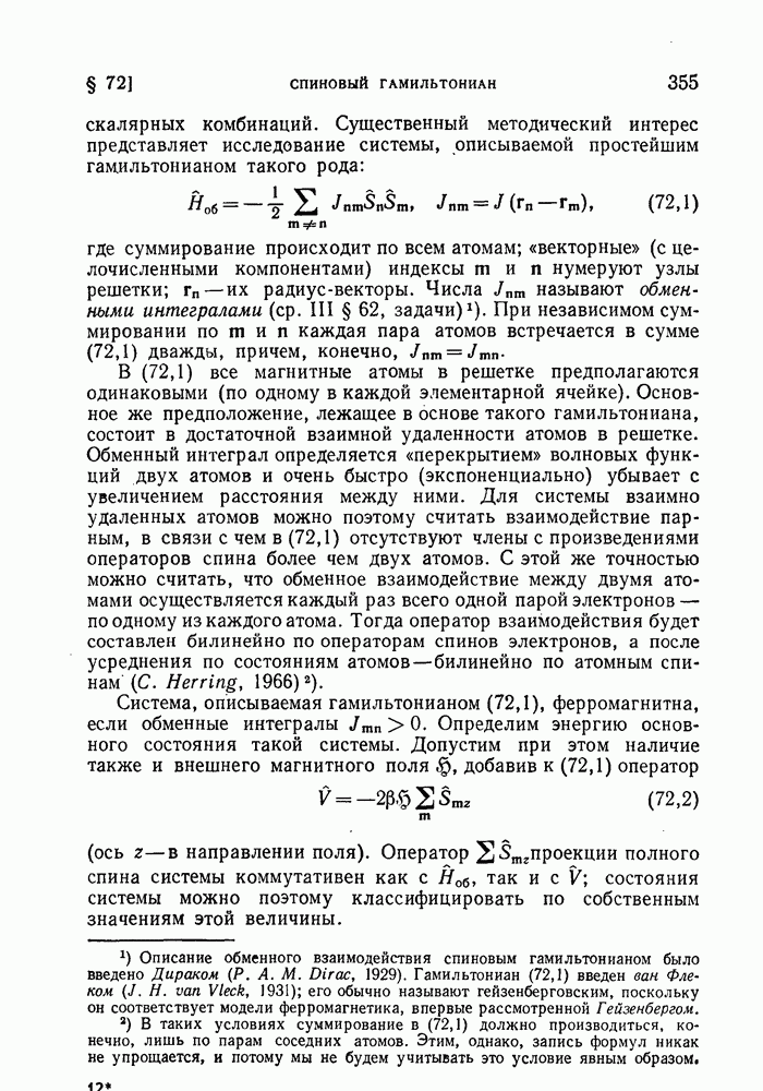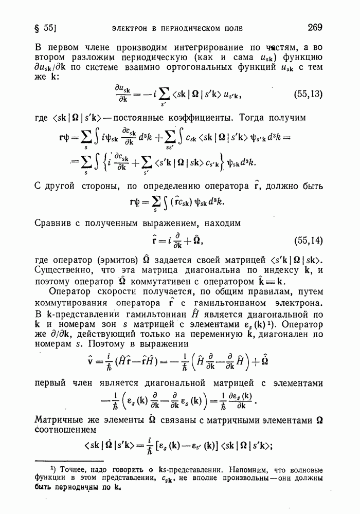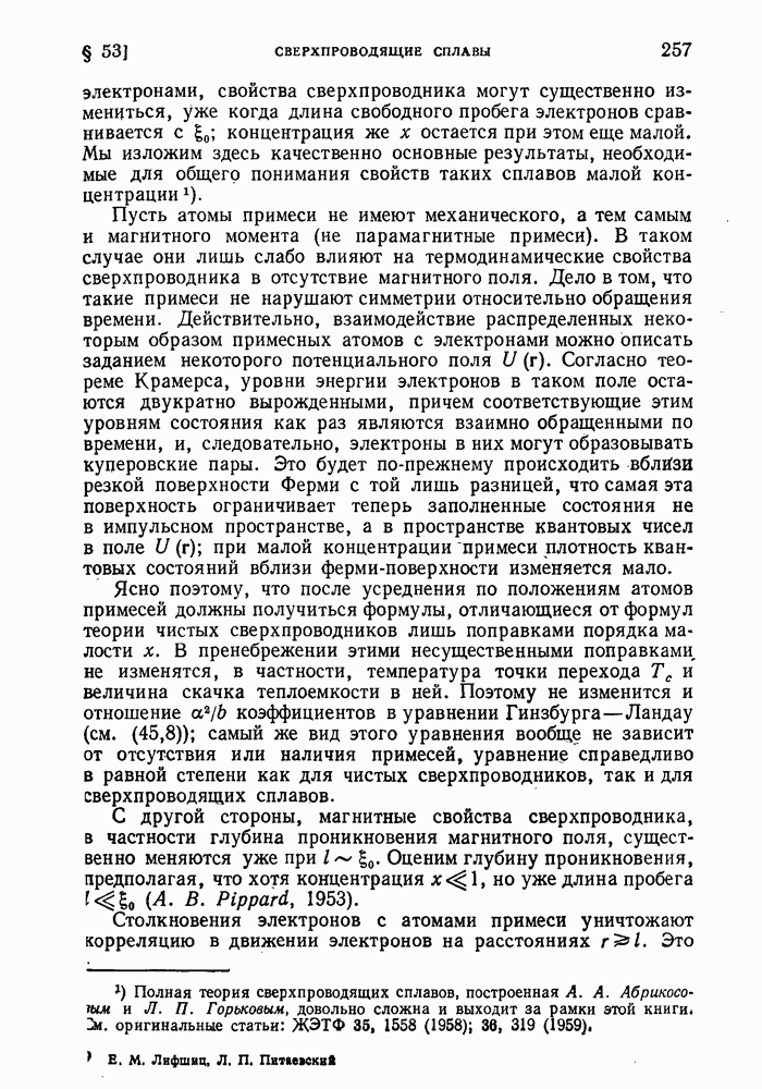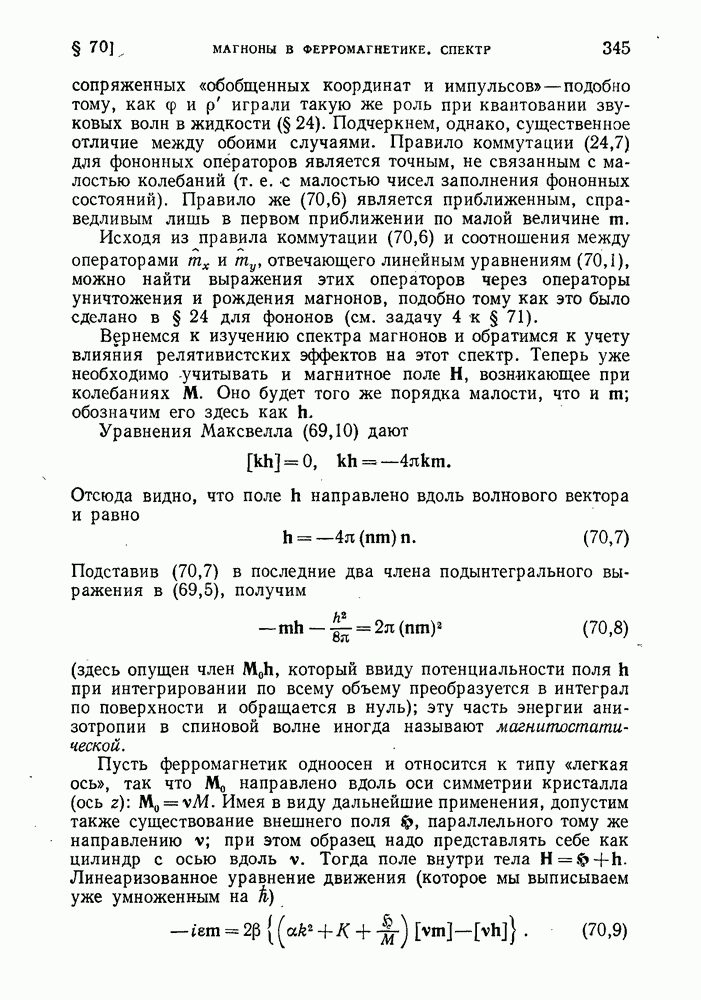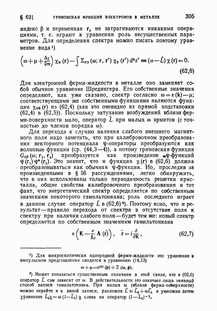 ГЛАВА III. СВЕРХТЕКУЧЕСТЬ§ 22. Элементарные возбуждения в квантовой бозе-жидкостиОбратимся теперь к изучению квантовых жидкостей с энергетическим спектром совершенно иного типа, который можно назвать бозевским. Этот спектр характеризуется тем, что элементарные возбуждения (отсутствующие в основном состоянии жидкости) могут появляться и исчезать поодиночке. Но момент импульса всякой квантовомеханической системы (в данном случае жидкости) может испытывать изменения лишь на целое число. Поэтому возникающие поодиночке элементарные возбуждения должны обладать целочисленным моментом и, следовательно, подчиняться статистике Бозе. Спектром такого типа должна во всяком случае обладать всякая квантовая жидкость, состоящая из частиц с целым спином (таков жидкий изотоп Напомним для сравнения, что в ферми-жидкости, при описании ее в терминах спектра элементарных возбуждений, отсутствующих в основном состоянии (см. конец § 1), эти возбуждения могут появляться или исчезать лишь парами. Именно с этим связана возможность элементарным возбуждениям в этом типе спектра иметь полуцелый спин. В квантовой бозе-жидкости элементарные возбуждения с малыми импульсами